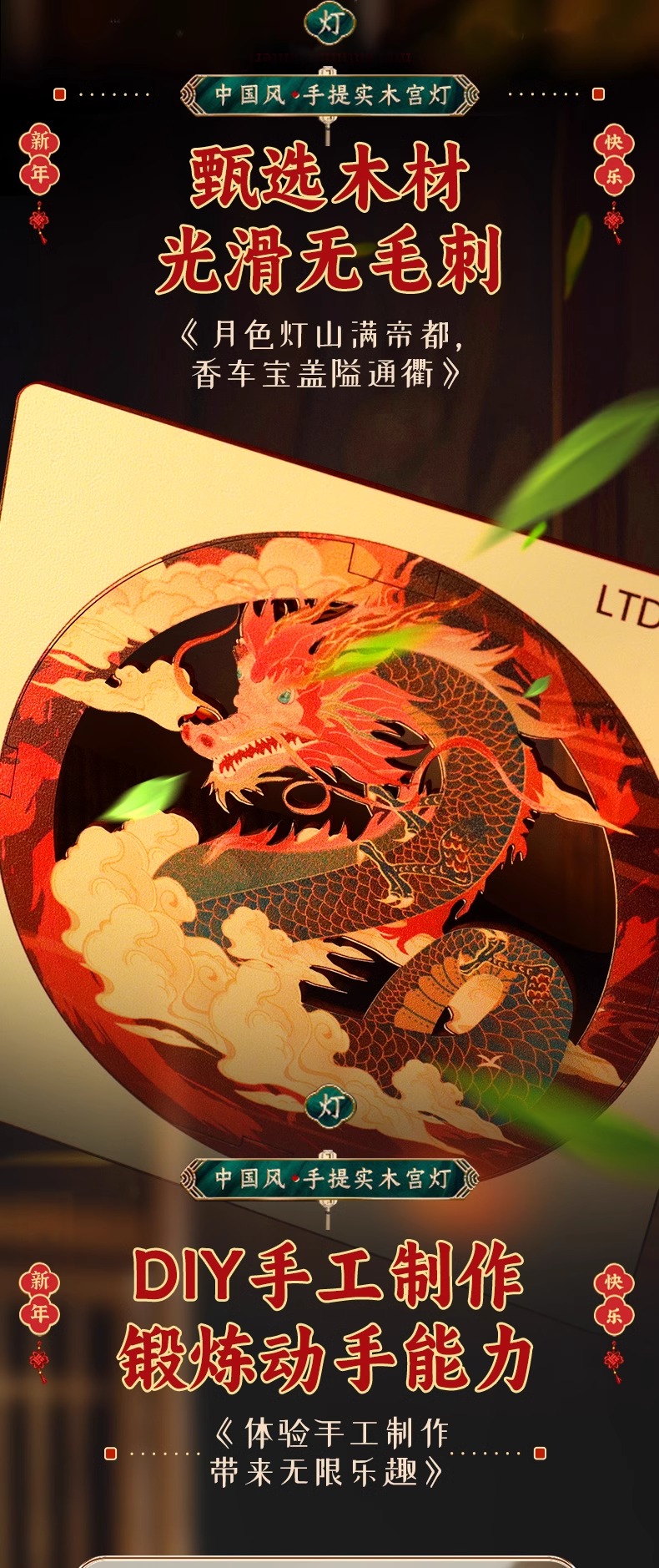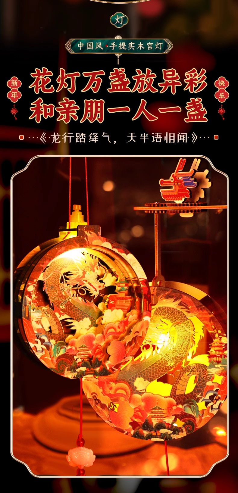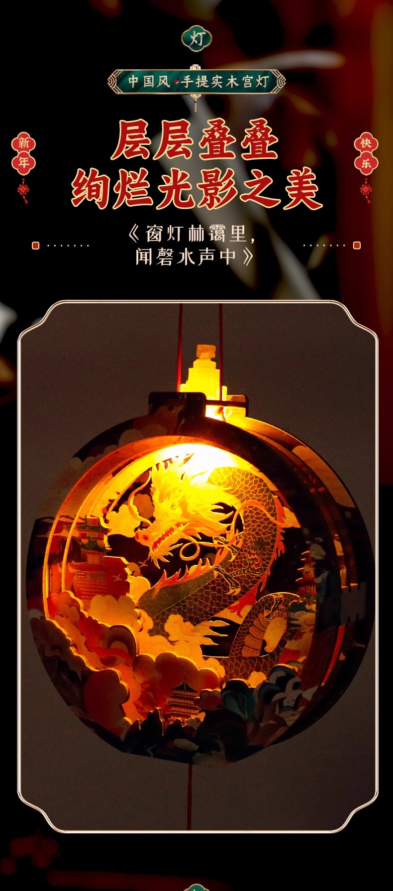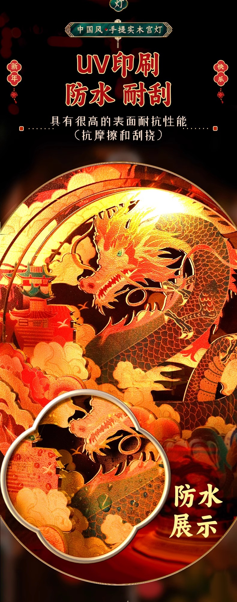 春节不打烊【龙行大运木质投影灯笼】新年元宵节儿童手提发光灯笼手工diy旋转龙灯电子灯芯春节