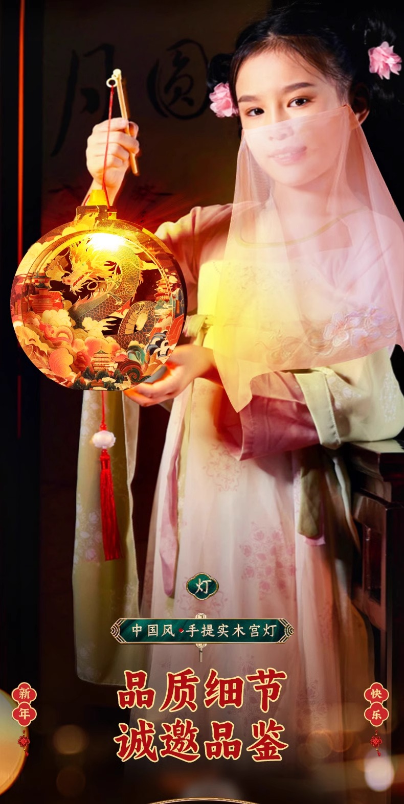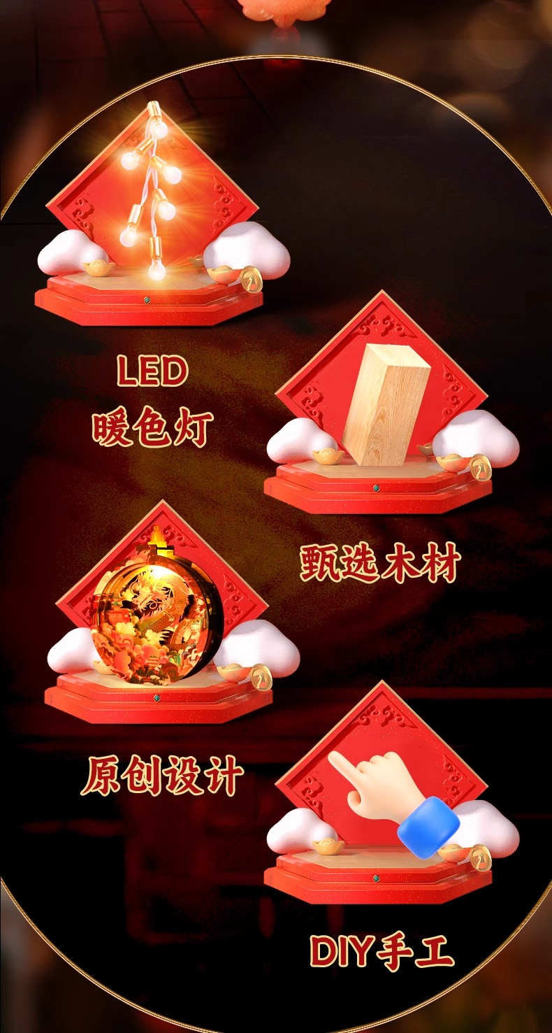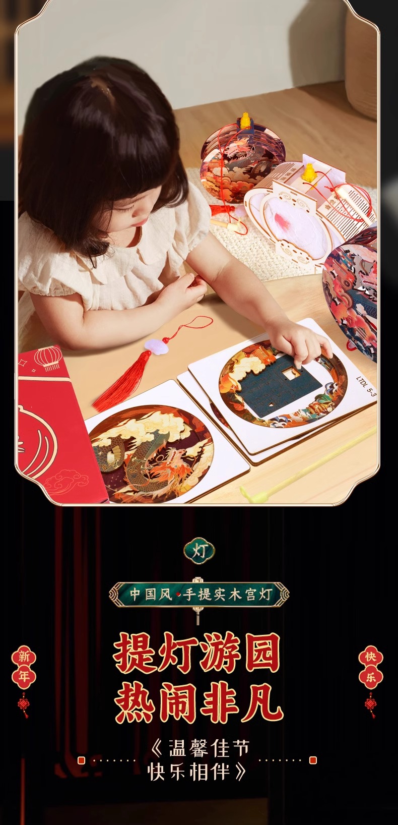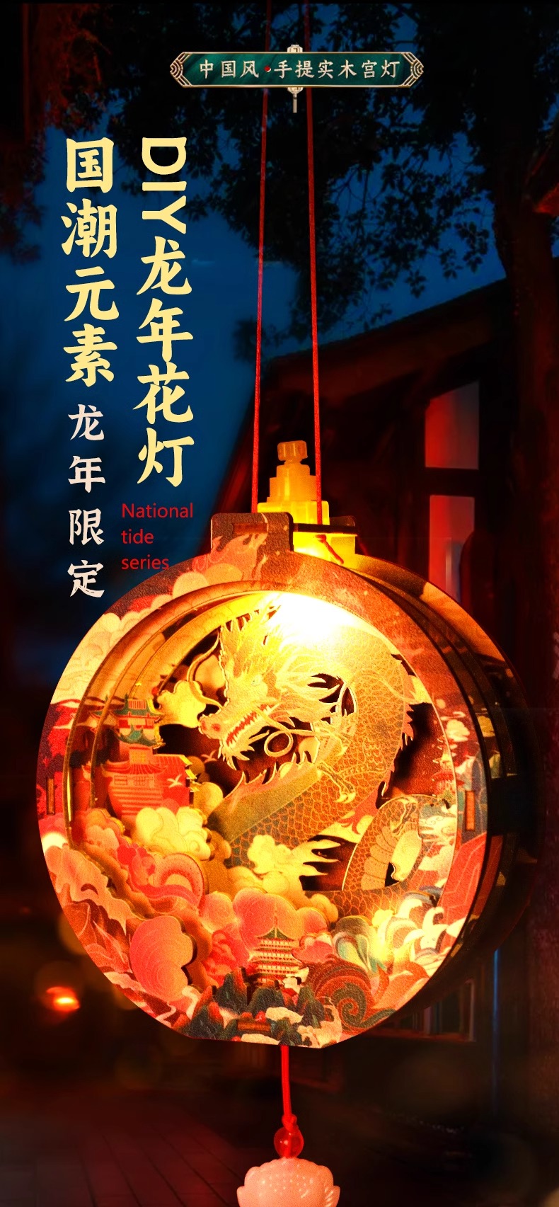 春节不打烊【龙行大运木质投影灯笼】新年元宵节儿童手提发光灯笼手工diy旋转龙灯电子灯芯春节