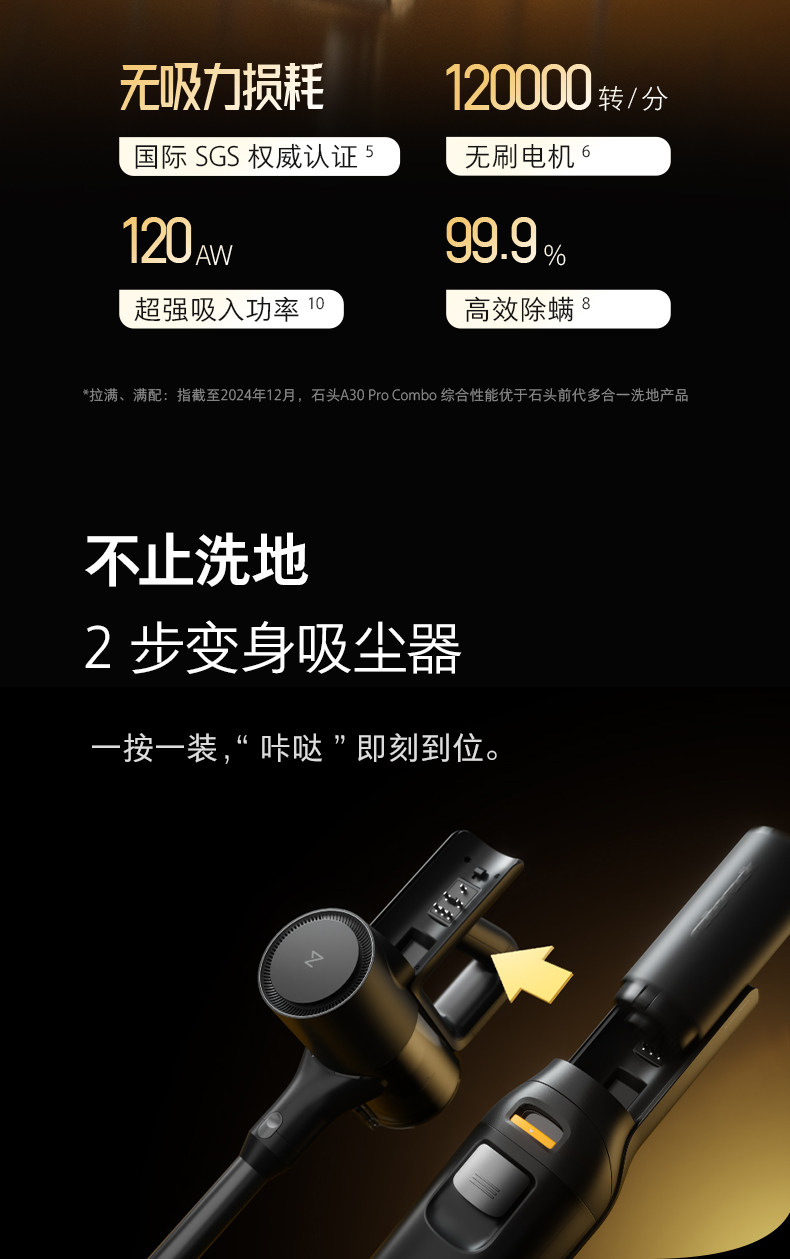 石头【A30 Pro Combo】5合1洗地机