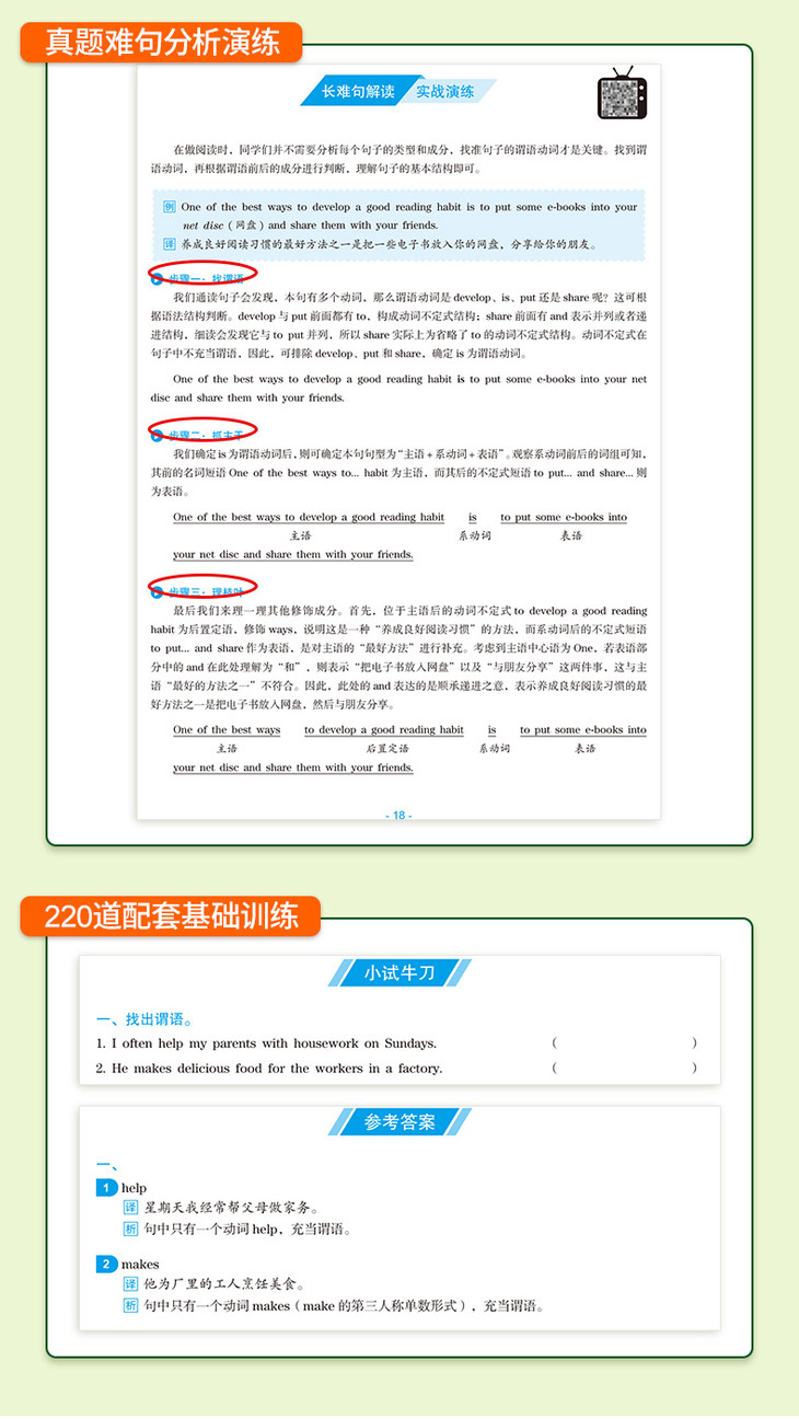3. 语法10讲,分类讲解英语长难句类型,220句配套语法基础训练,及时巩固;