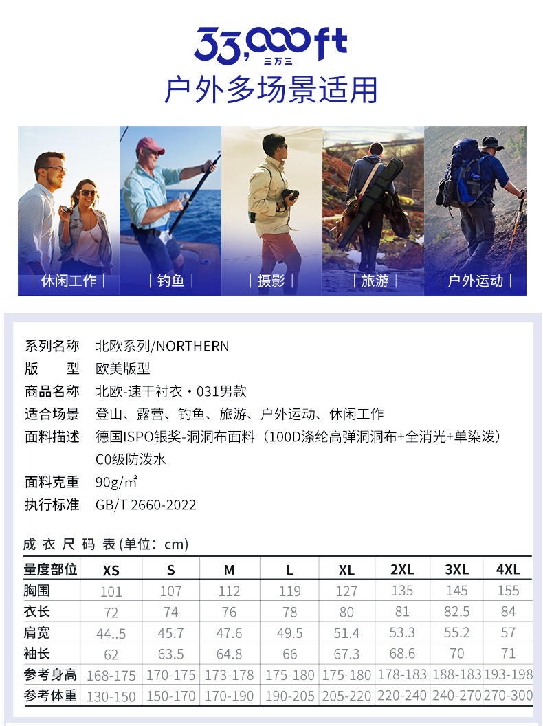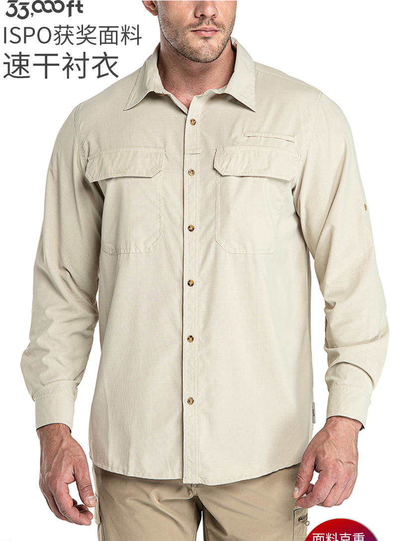 【ISPO获奖】33000ft北欧速干衬衫男户外衬衣轻透气防水防晒宽松夏季长袖钓鱼