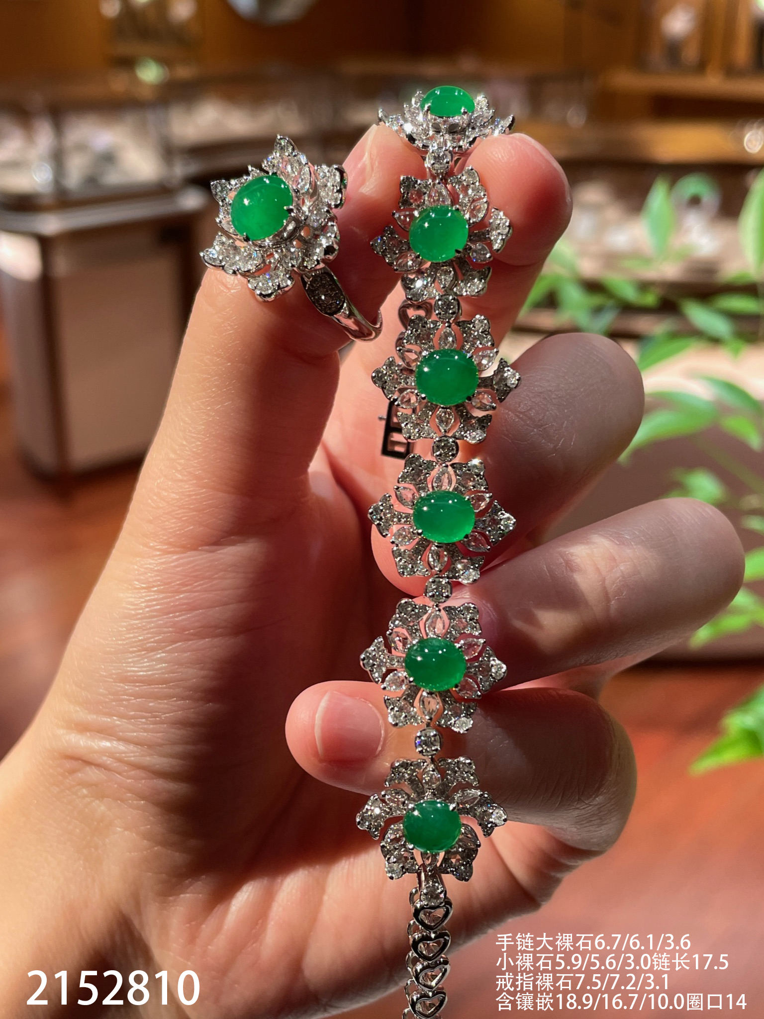 2152810,老坑冰艳绿蛋面套装。具体价格微信咨询