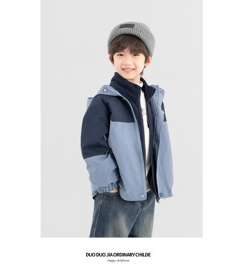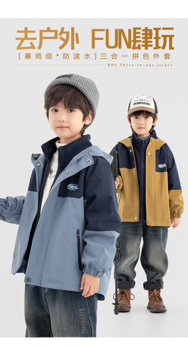 【件件底价,童装双倍积分】多多家男童外套三合一防泼水秋冬款2025新款儿童中大童冬装拼色潮11072
