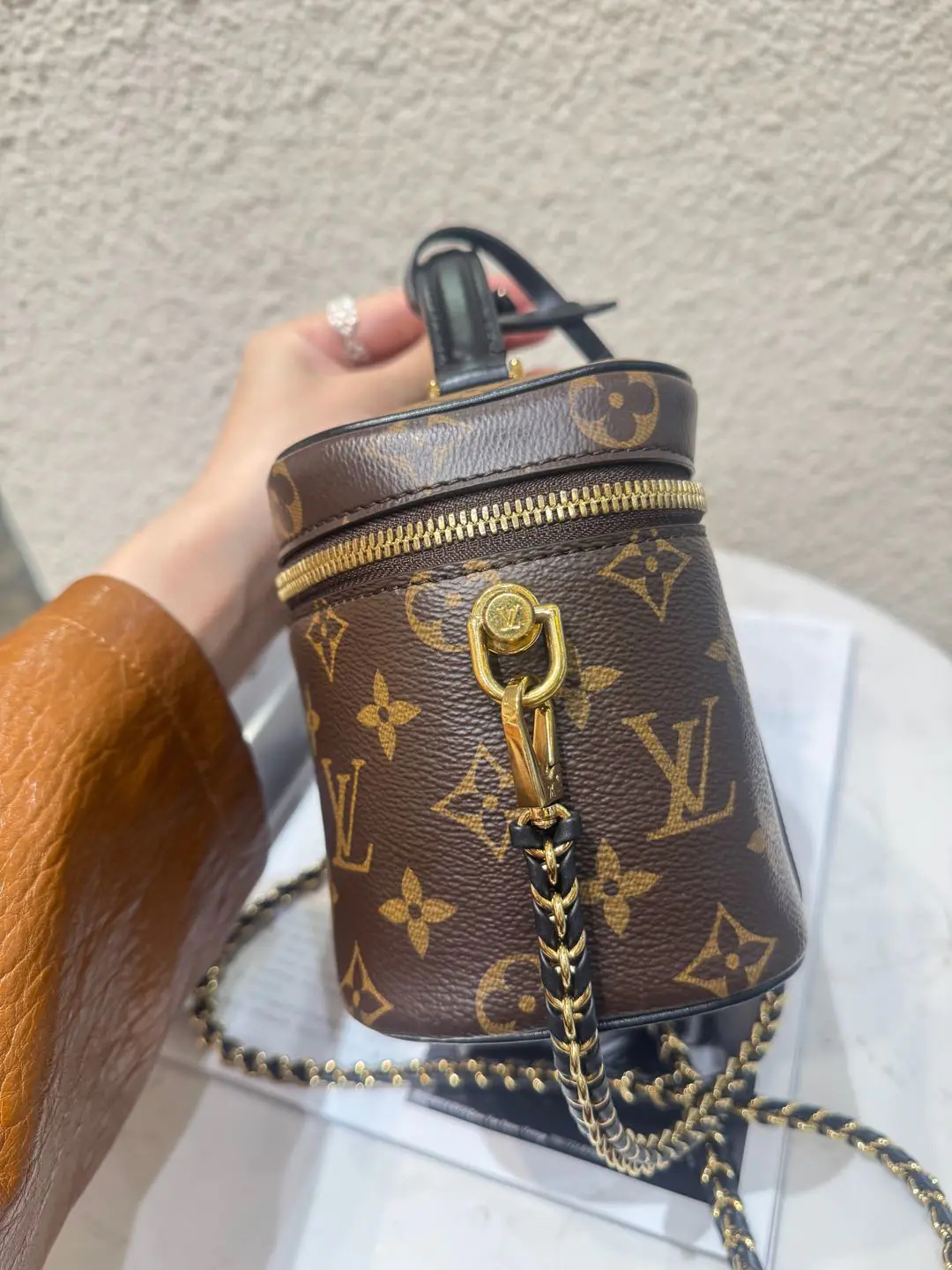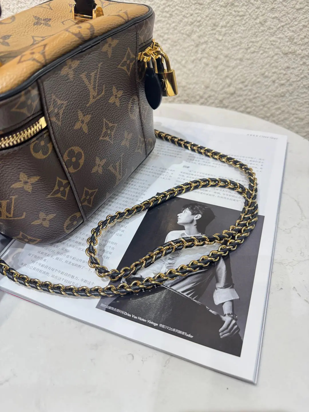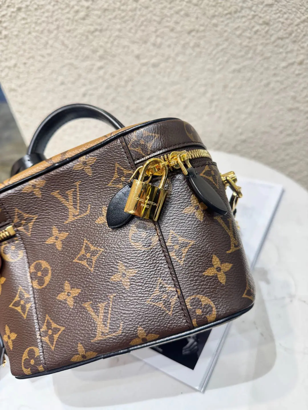 【商品详情】正品二手 LV vanity 旧款 宽版 拼色老花 化妆包🍟95新 19*12 配件:钥匙挂件 锁 链条。金属正常使用感。百搭又好看