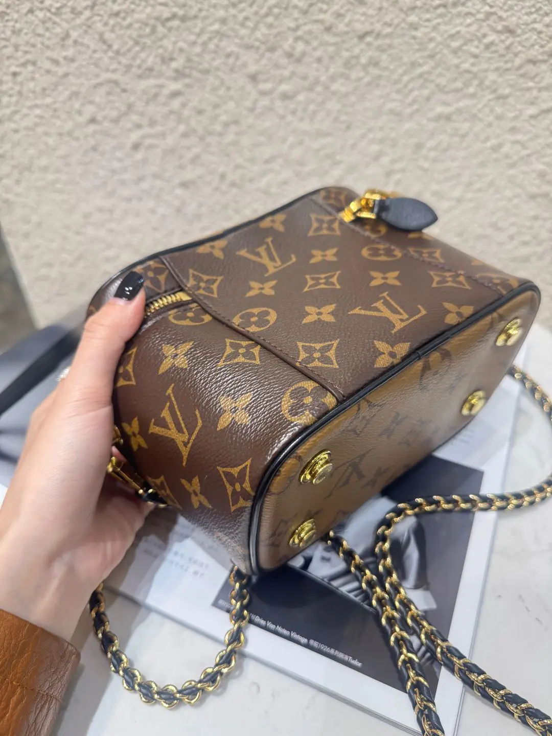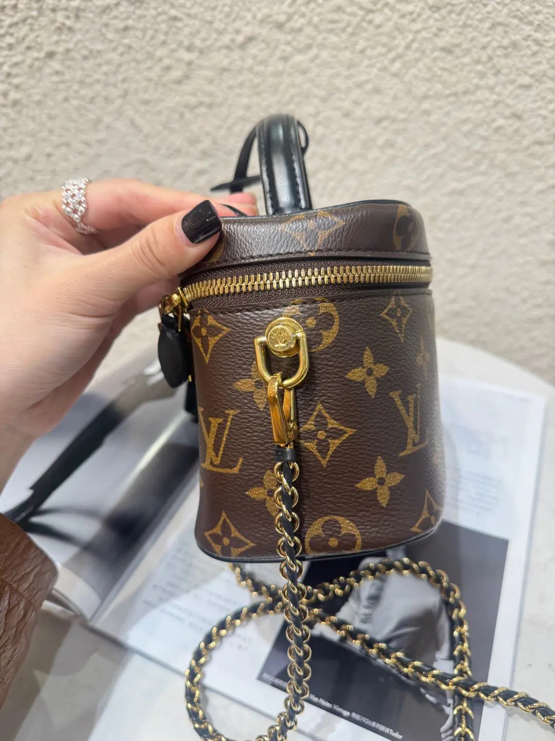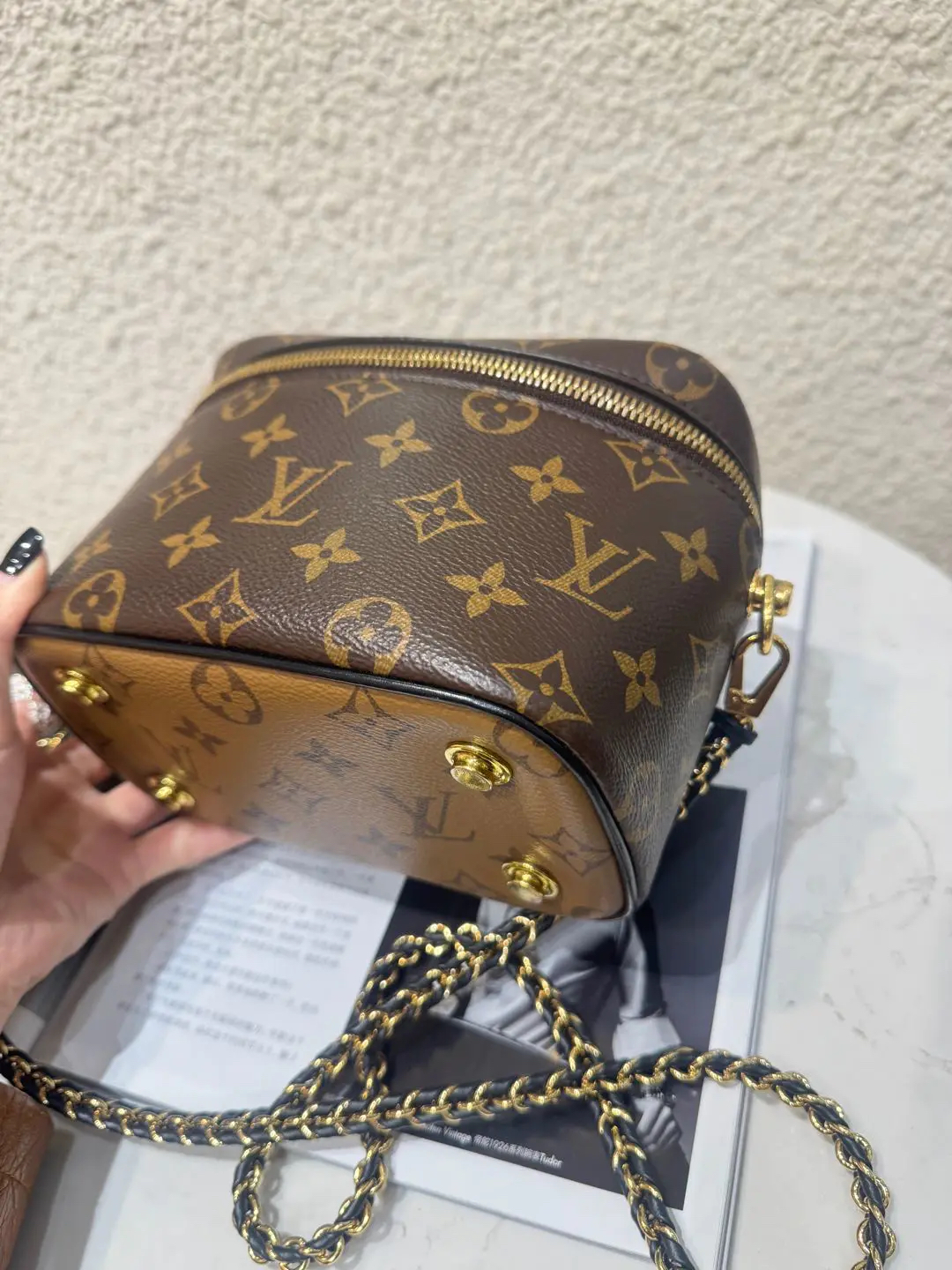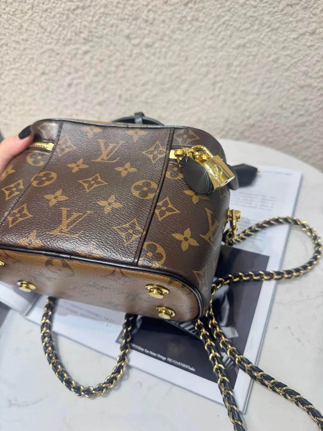 【商品详情】正品二手 LV vanity 旧款 宽版 拼色老花 化妆包🍟95新 19*12 配件:钥匙挂件 锁 链条。金属正常使用感。百搭又好看