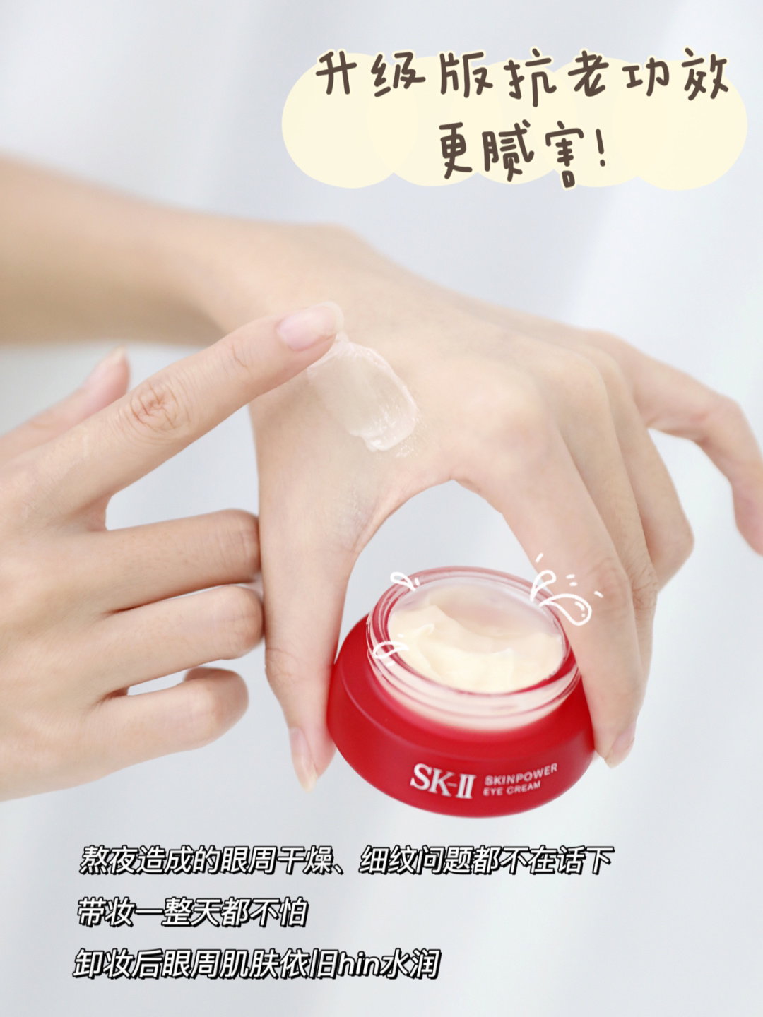 源自SK2获奖最多的抗老科技,精研出创新的眼部产品,柔润,细滑,老化迹象,紧实提拉,减少皱纹,令肌肤紧致弹性,双眼变大变明亮~