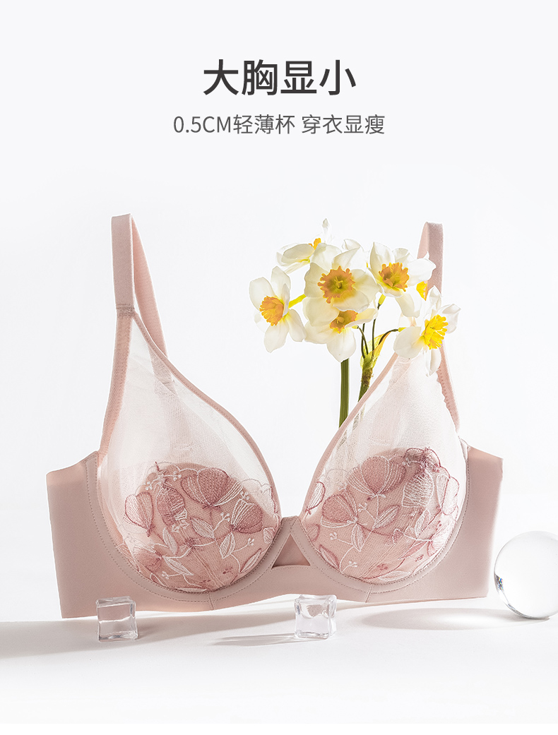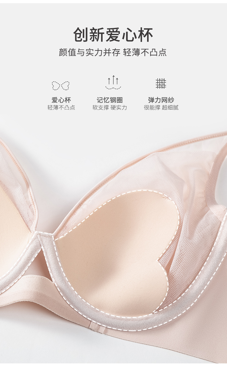 【大胸显小BC杯】熳洁儿 创新爱心杯性感蕾丝文胸舒适无痕轻薄透气收副乳23261539