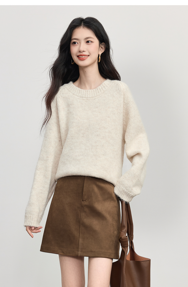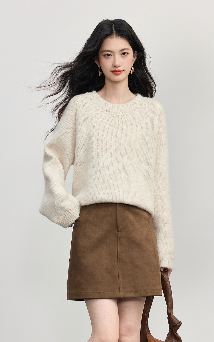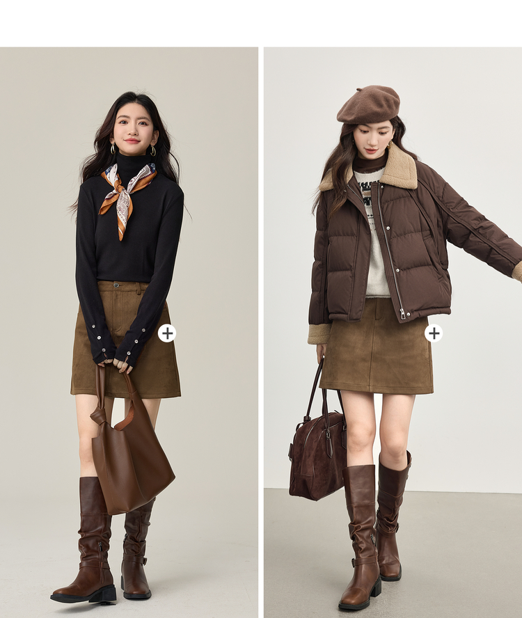 【10/1新品】熙世界复古咖色仿生麂皮绒半身裙女2025秋冬新款高腰显瘦a字短裙