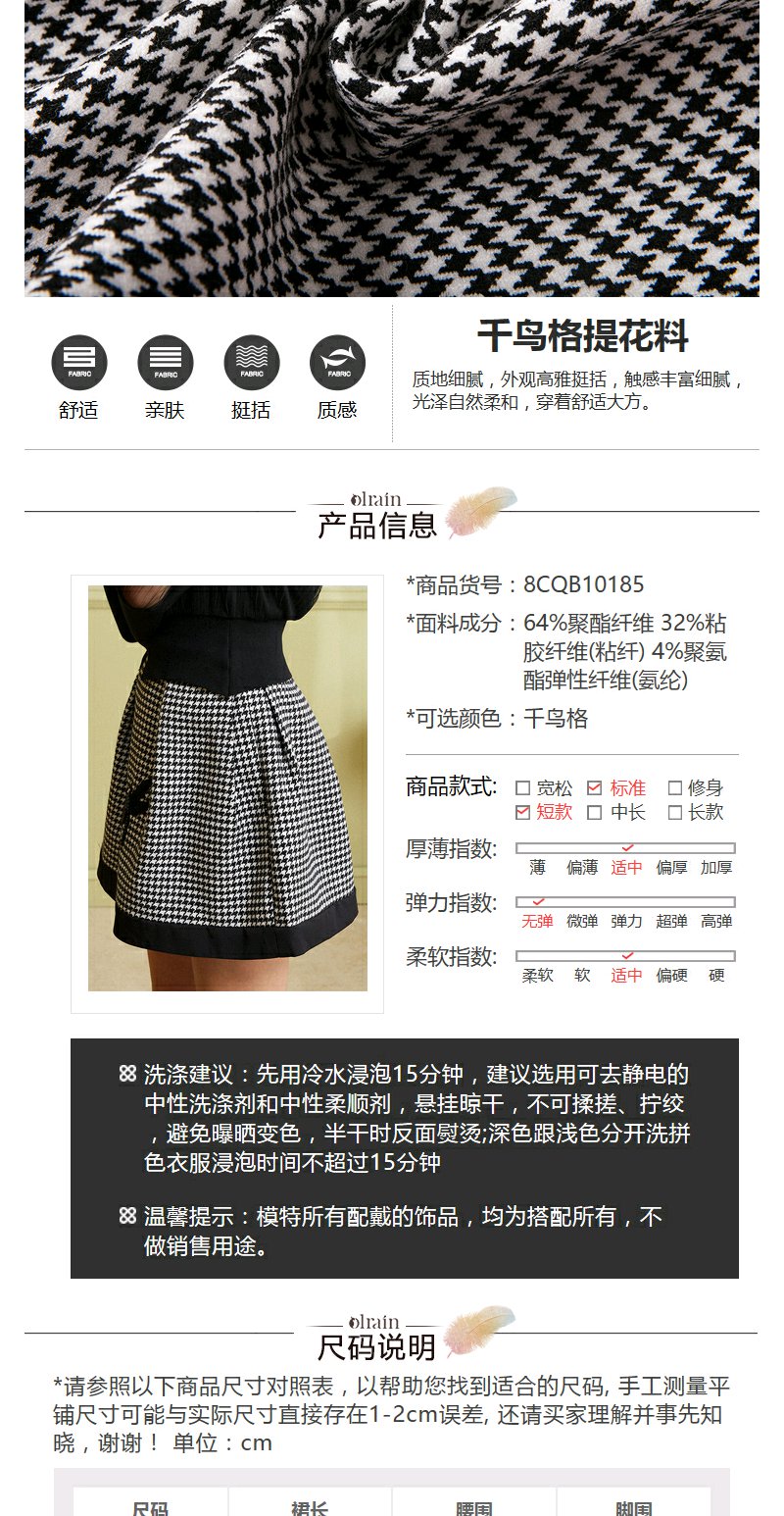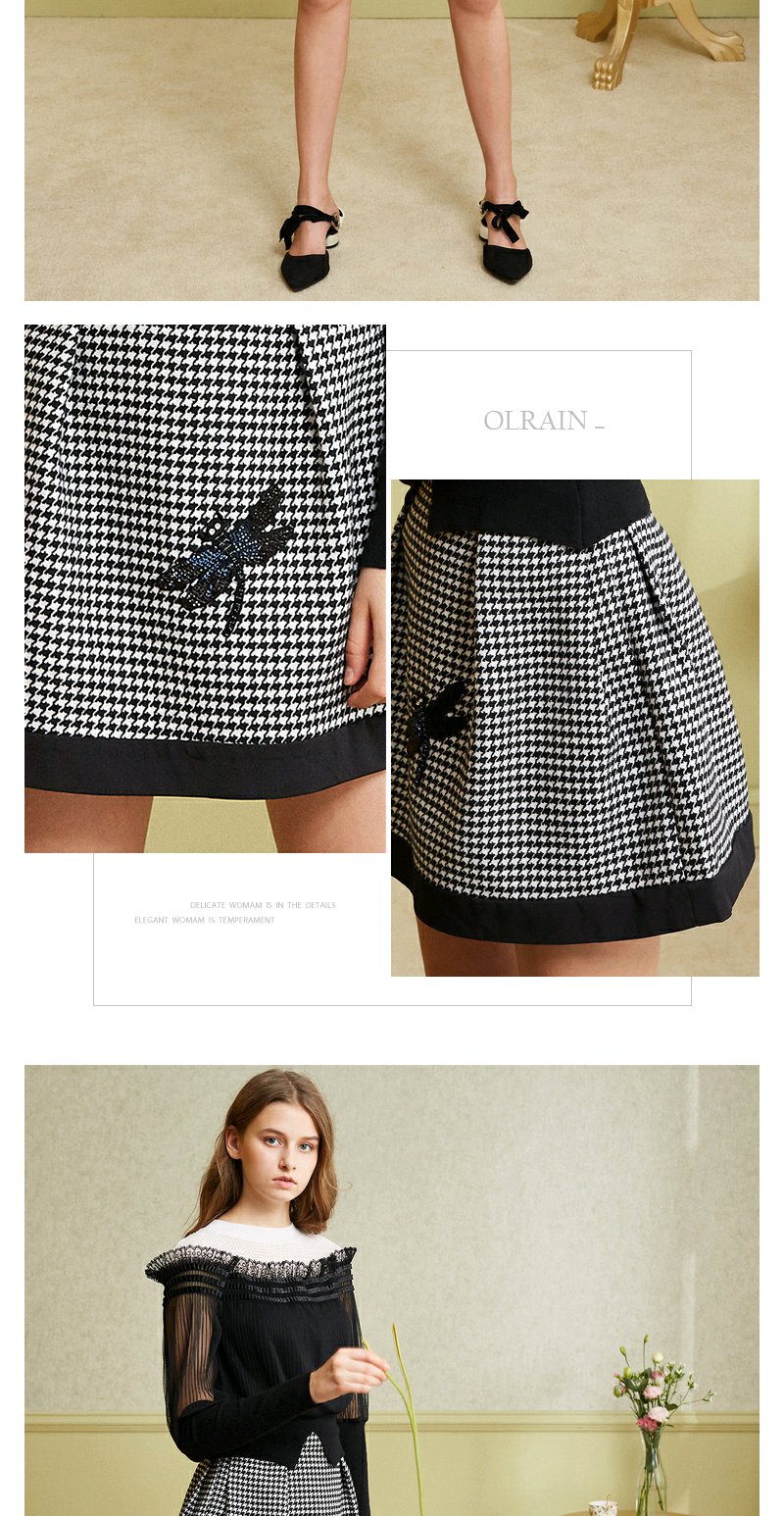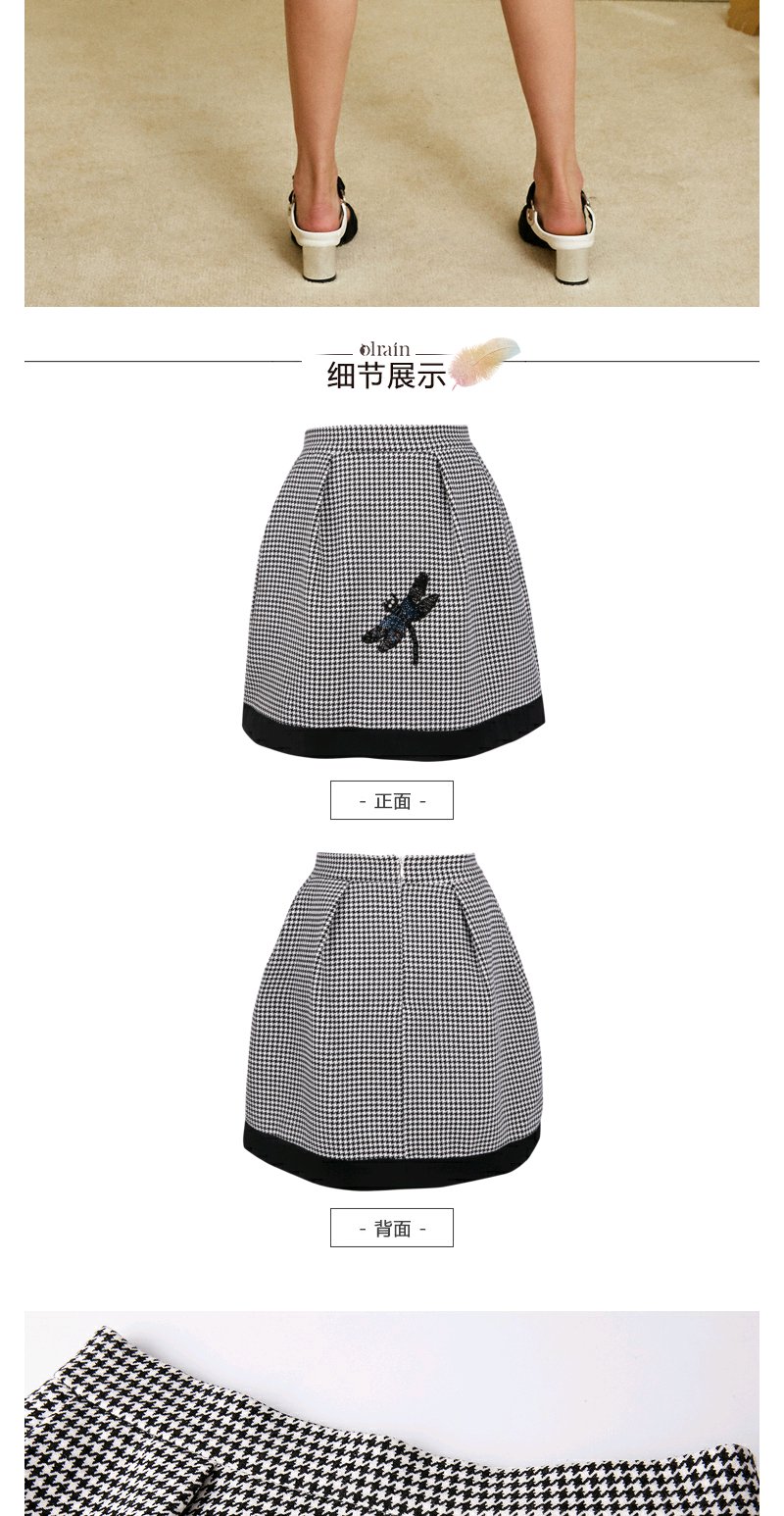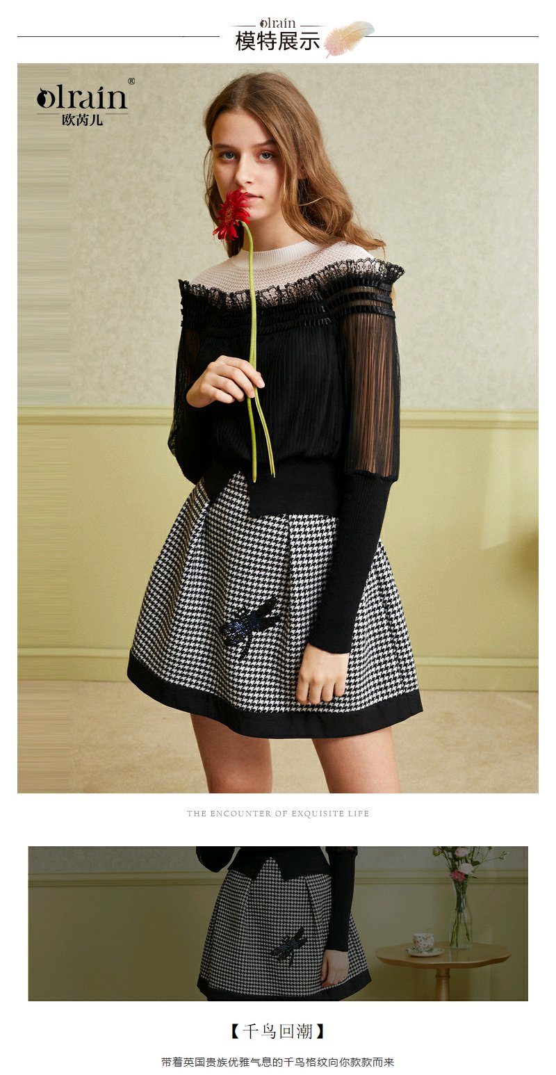 欧芮儿女 复古英伦风格子条纹刺绣a字半身裙女短裙