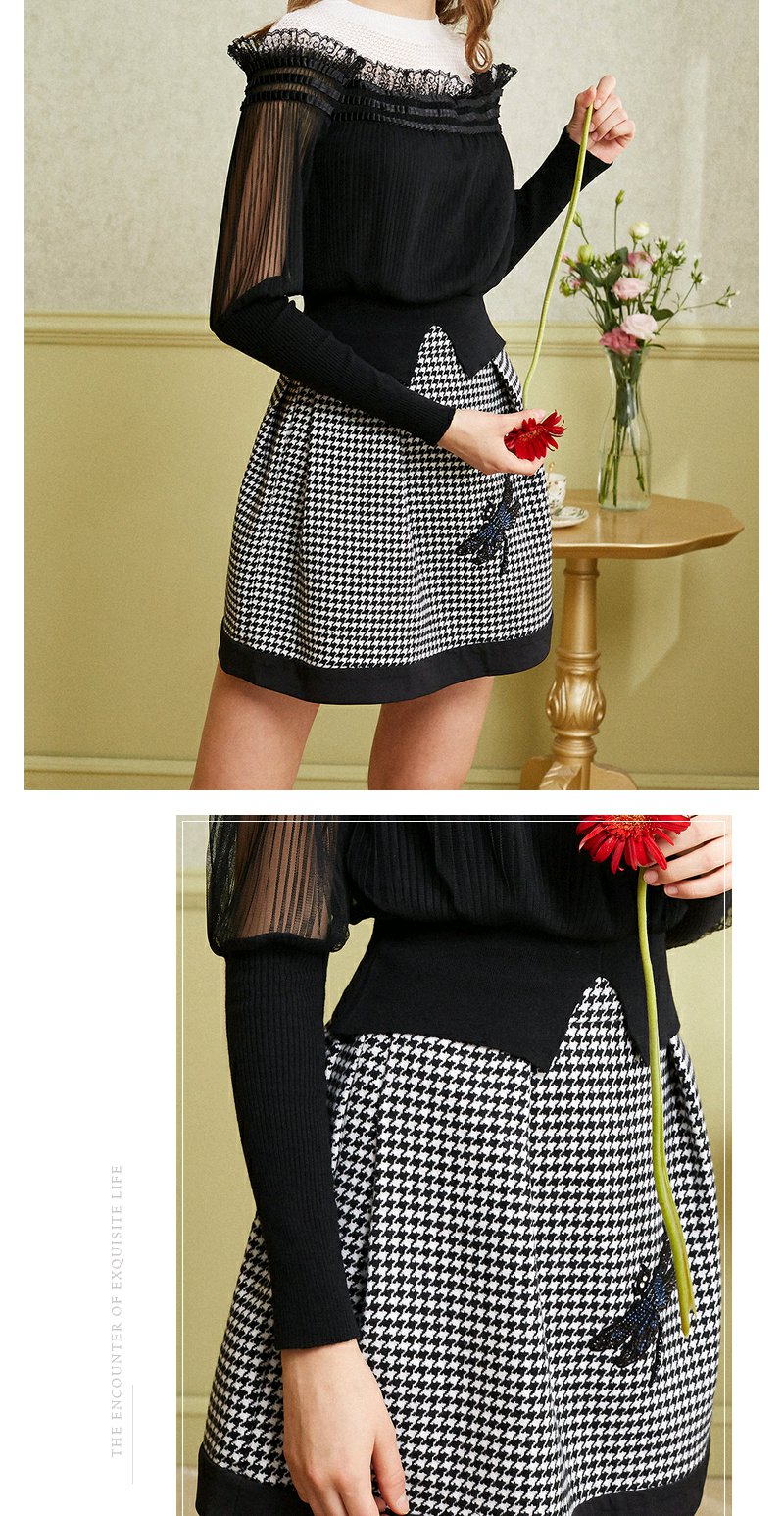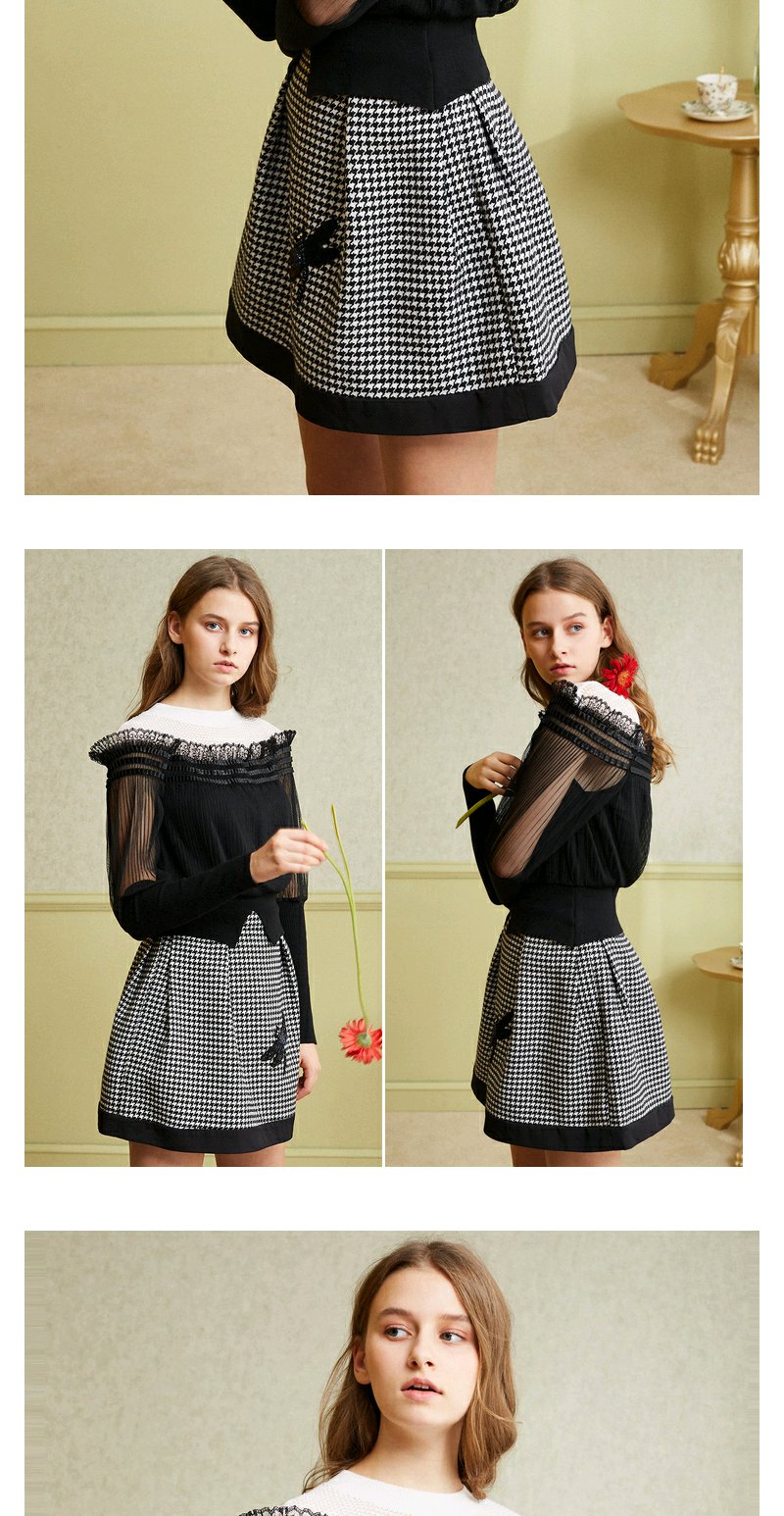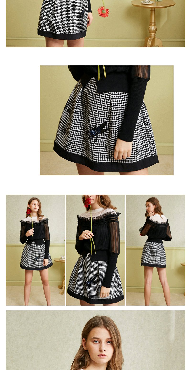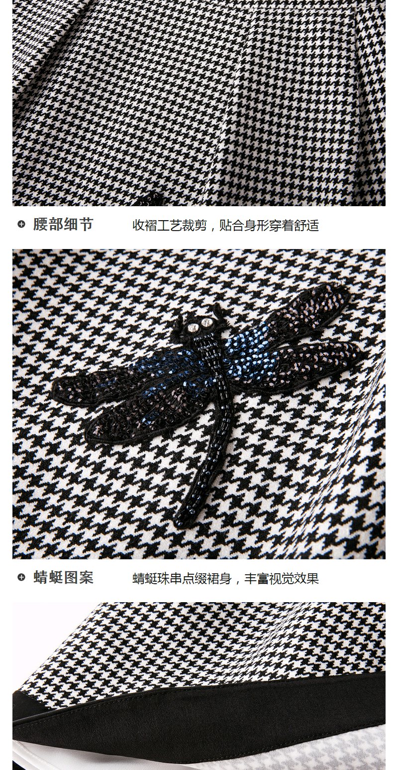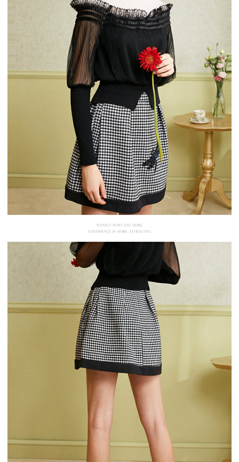 欧芮儿女 复古英伦风格子条纹刺绣a字半身裙女短裙