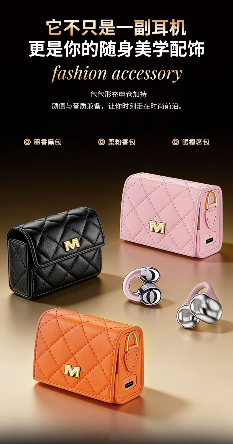 【魔声包包款夹耳式蓝牙耳机】蓝牙6.0芯片稳连不断,定向传音不漏音!既有颜值吸睛又佩戴舒适音质清晰!机仓包包设计,彰显品味!【魔声-X】