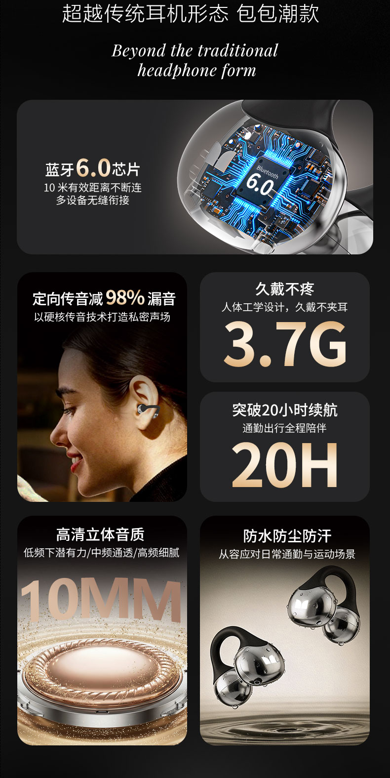 人体工学设计,久戴不夹耳,不痛耳