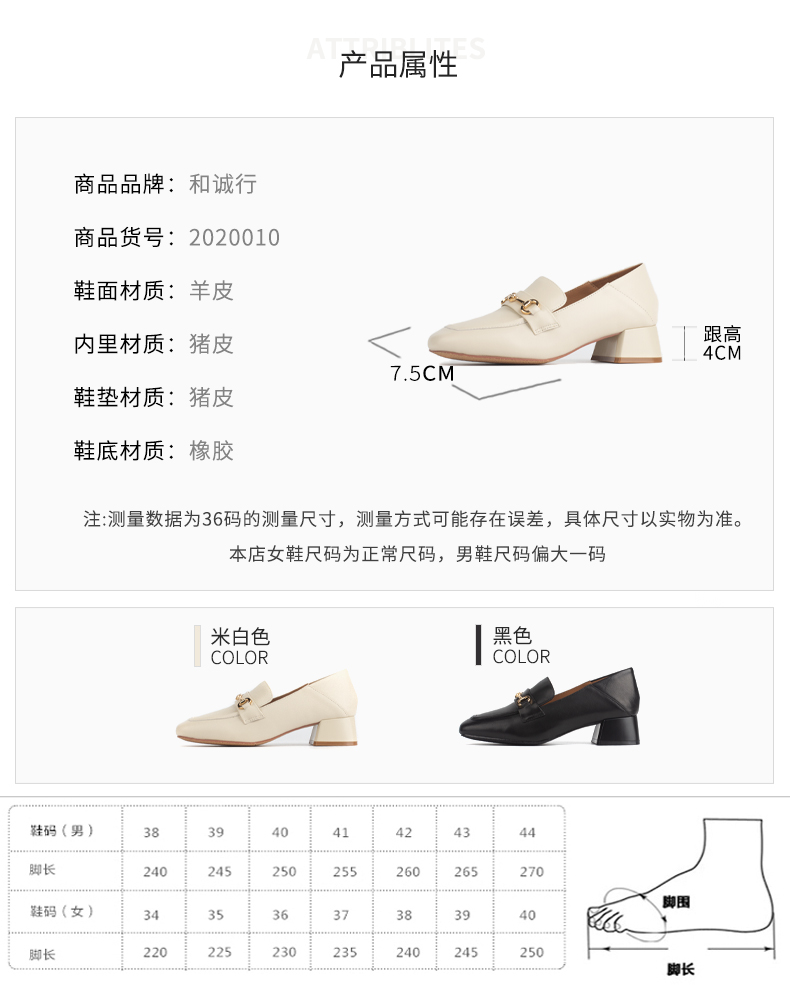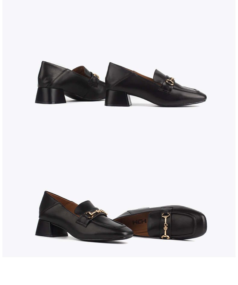 和诚行 2024秋冬新款时尚简约乐福鞋女鞋舒适真皮中跟单鞋2020010