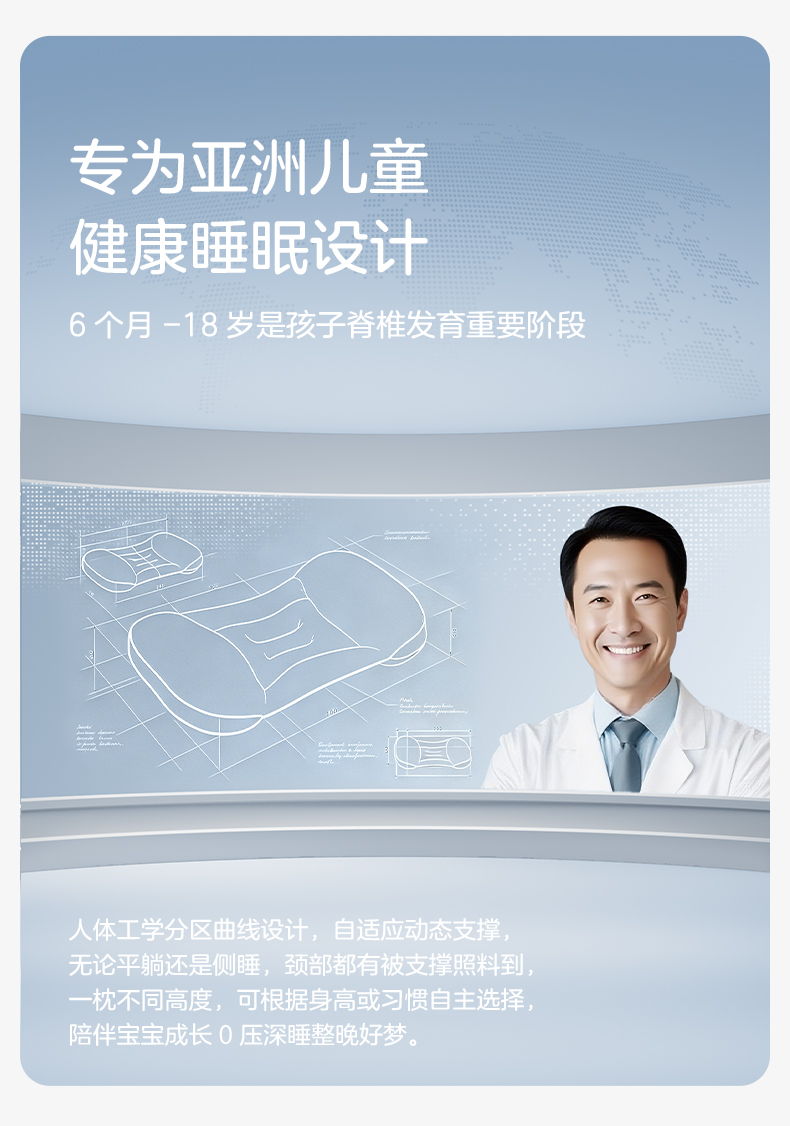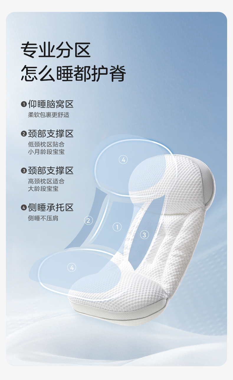 儿童分区枕护颈专用婴幼宝宝枕头4D科学护脊双面1-3-6岁