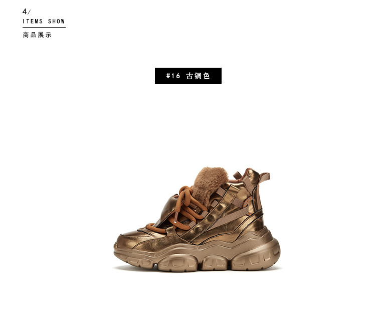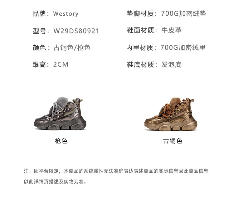 westory商场专柜同款冬款加绒保暖系带休闲鞋老爹鞋厚底运动鞋女W29DS80921