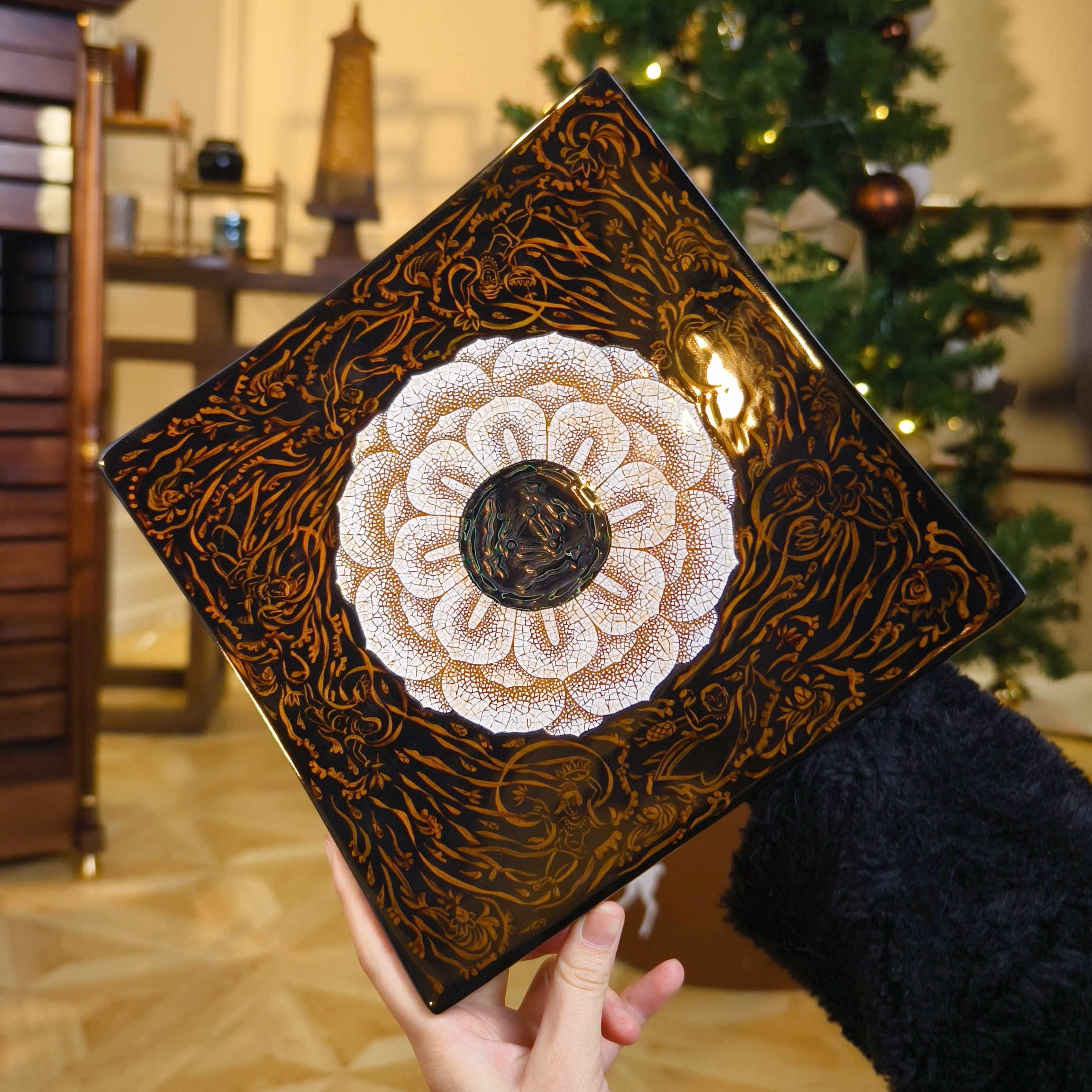 工艺:蛋壳、螺钿镶嵌+手绘大漆