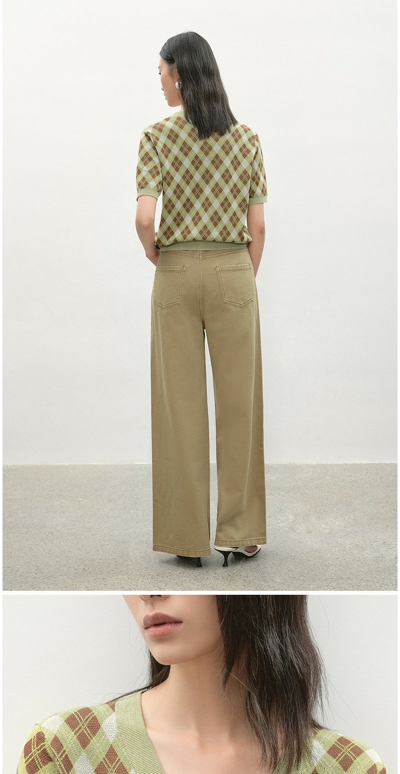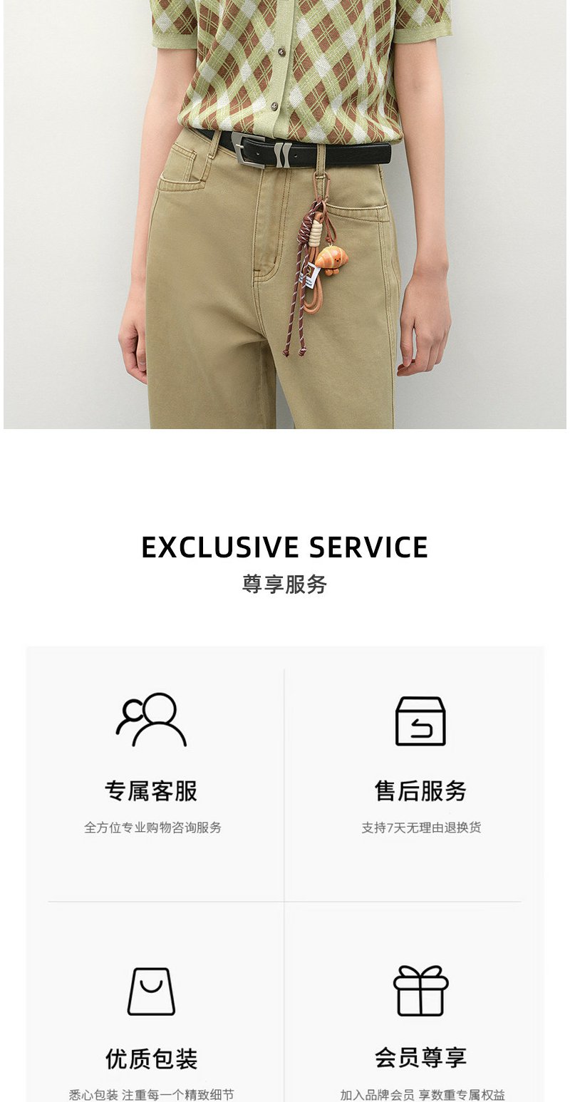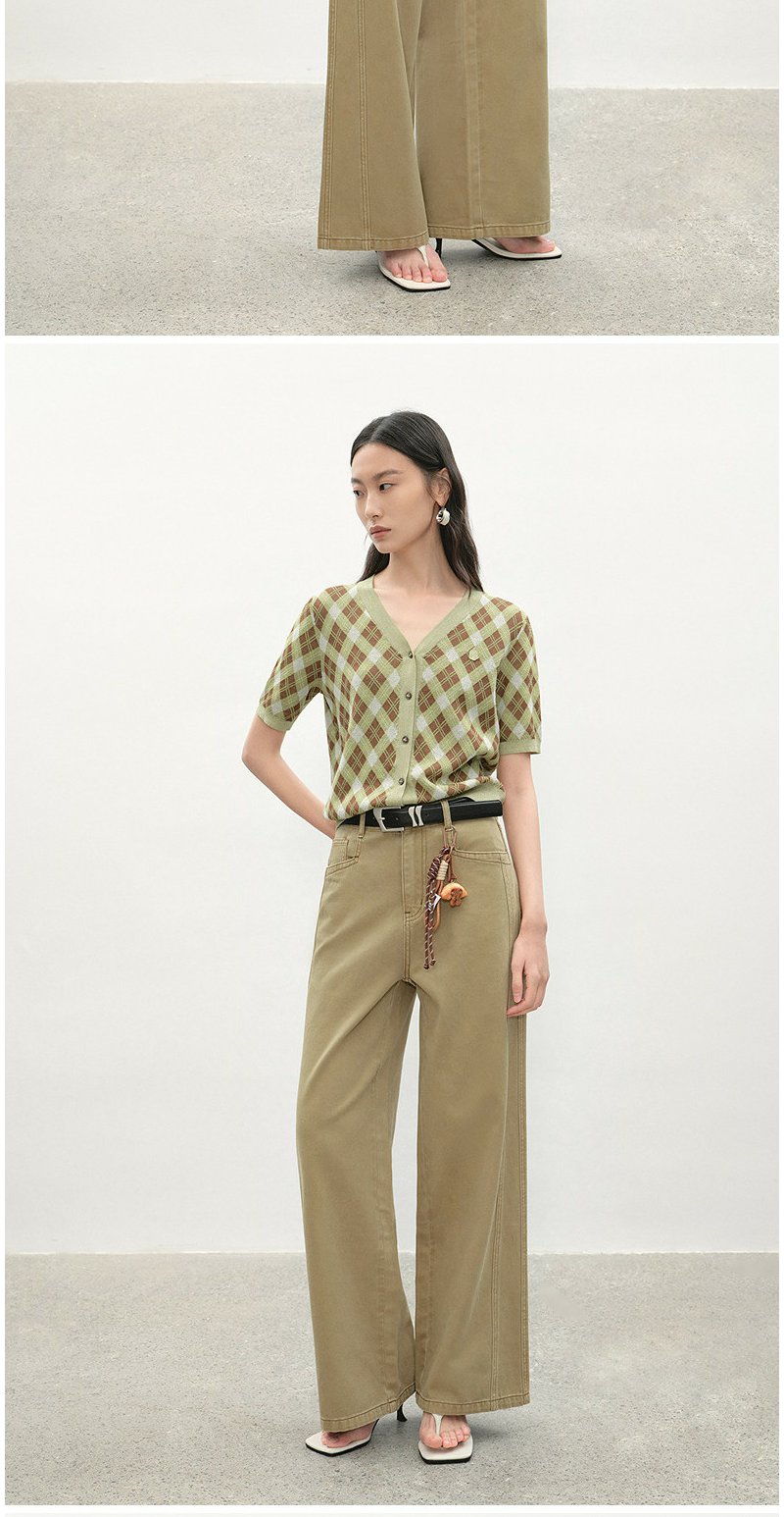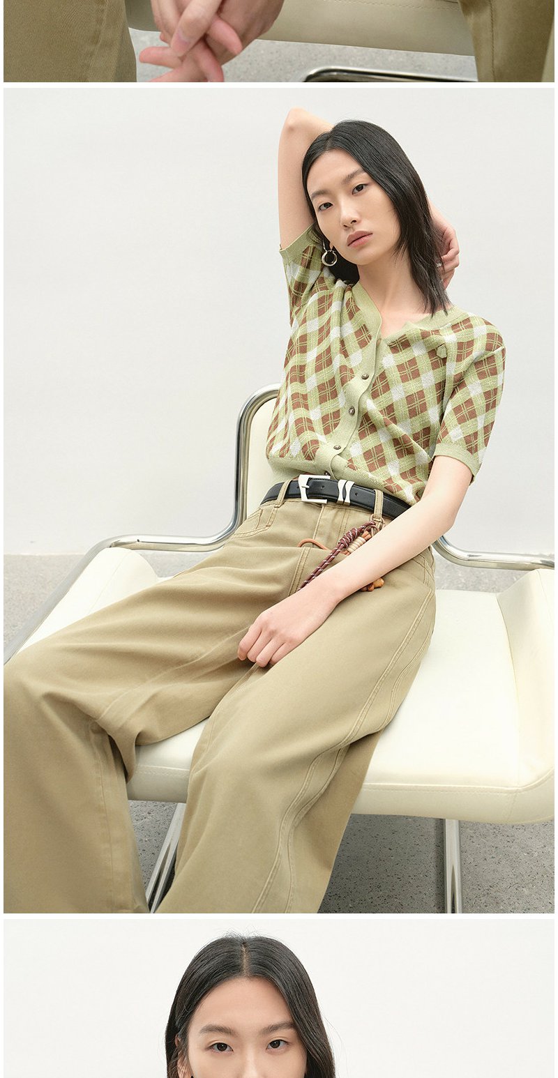 NEELLY纳俪商场同款夏新款V领格纹设计感针织开衫女撞色显白毛衣N26044A04513