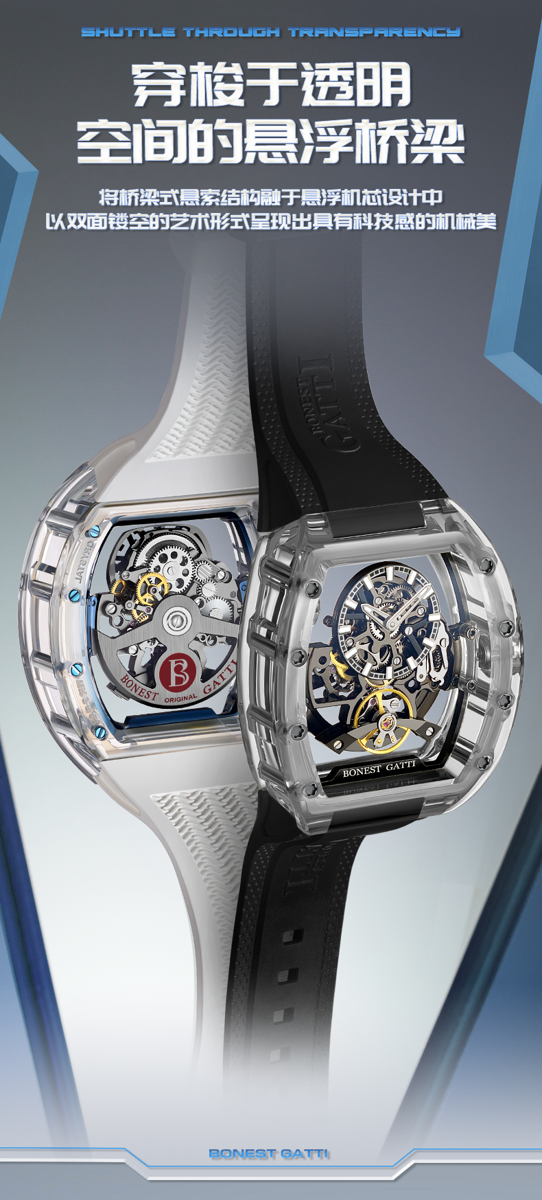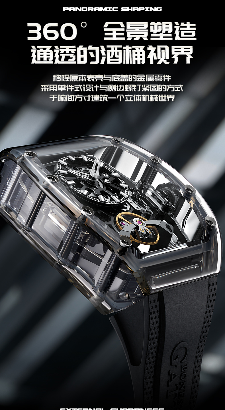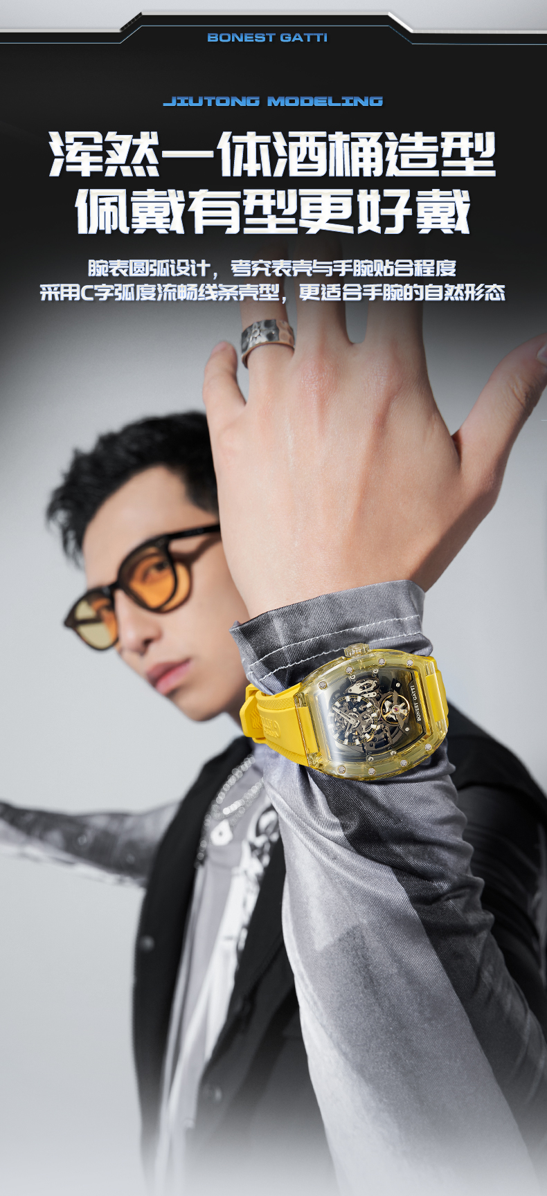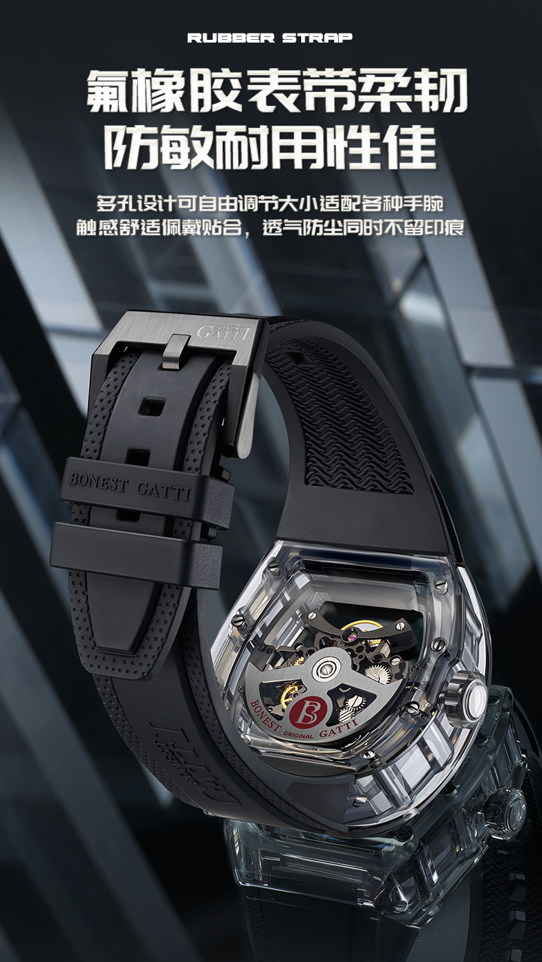 BONEST GATTI/布加迪夏季新款时尚透明壳酒桶全自动机械表BG9960 JCZ