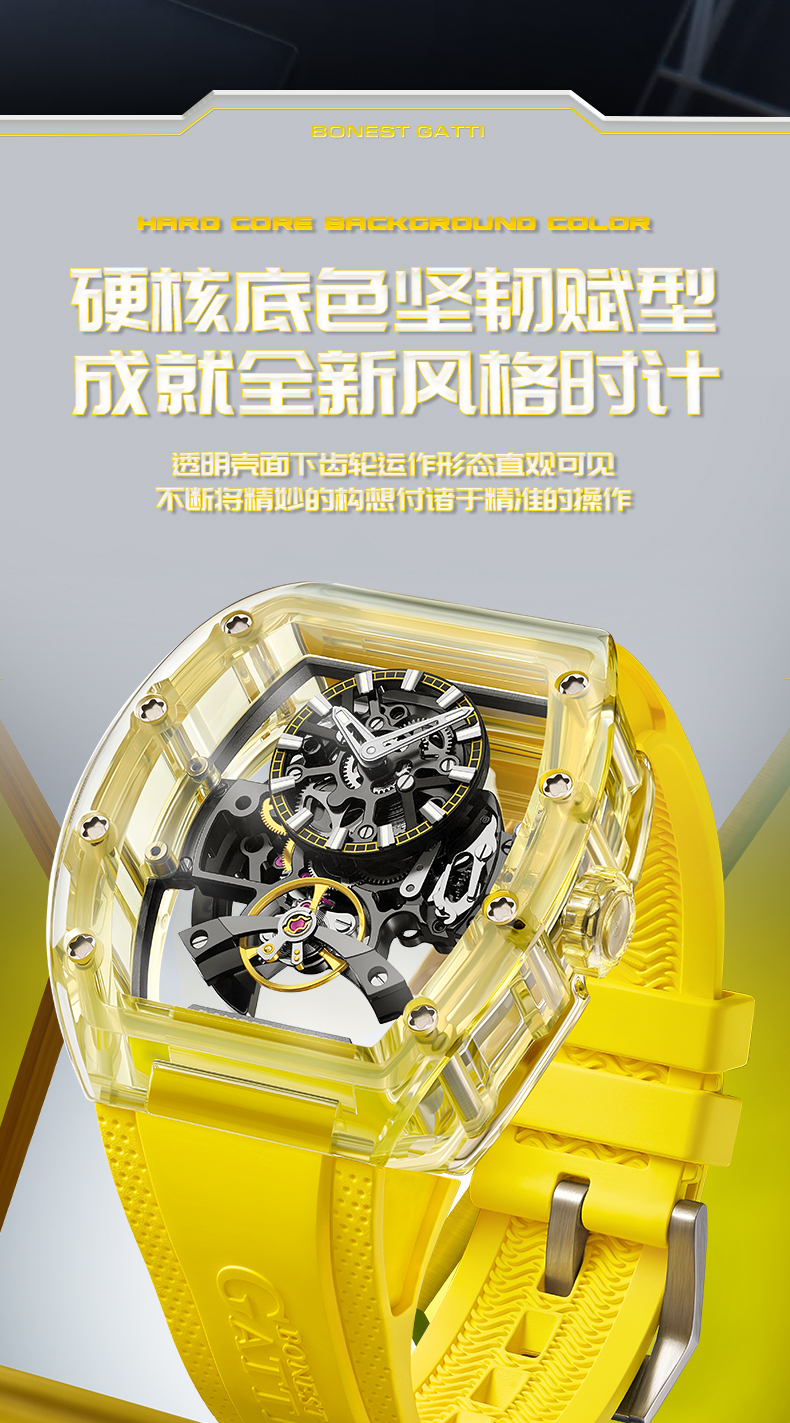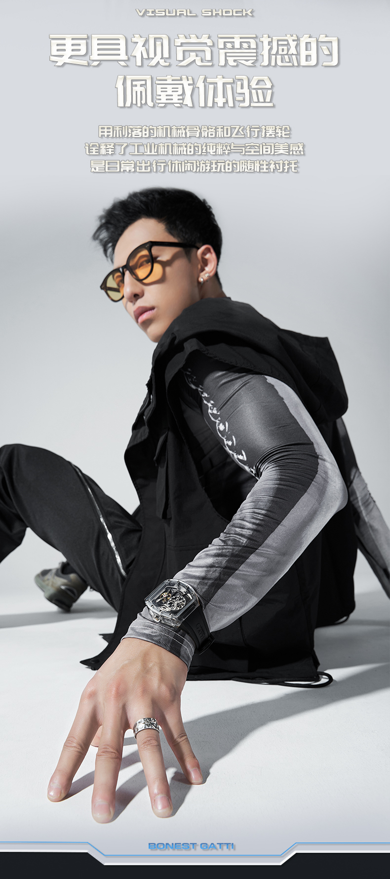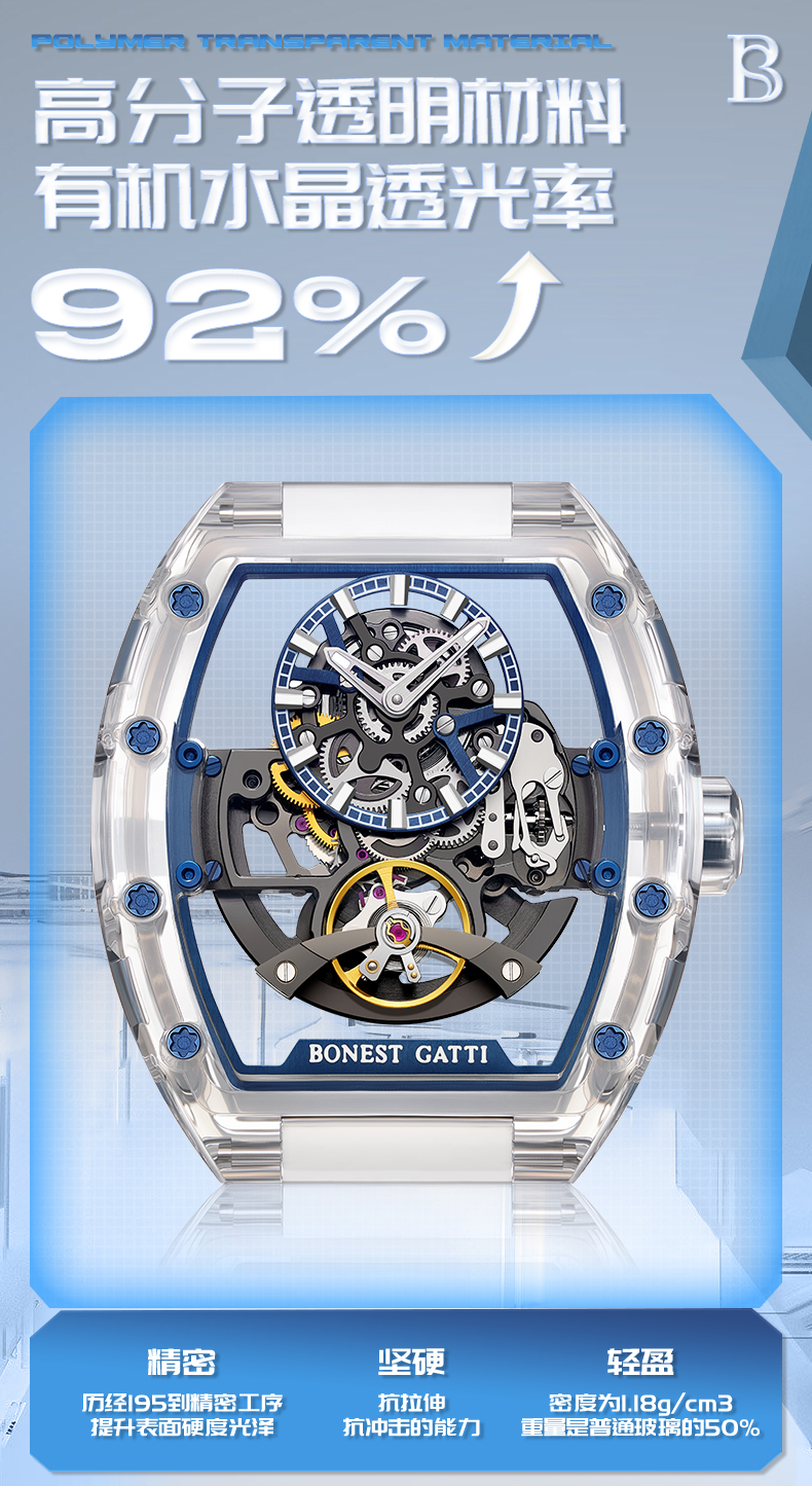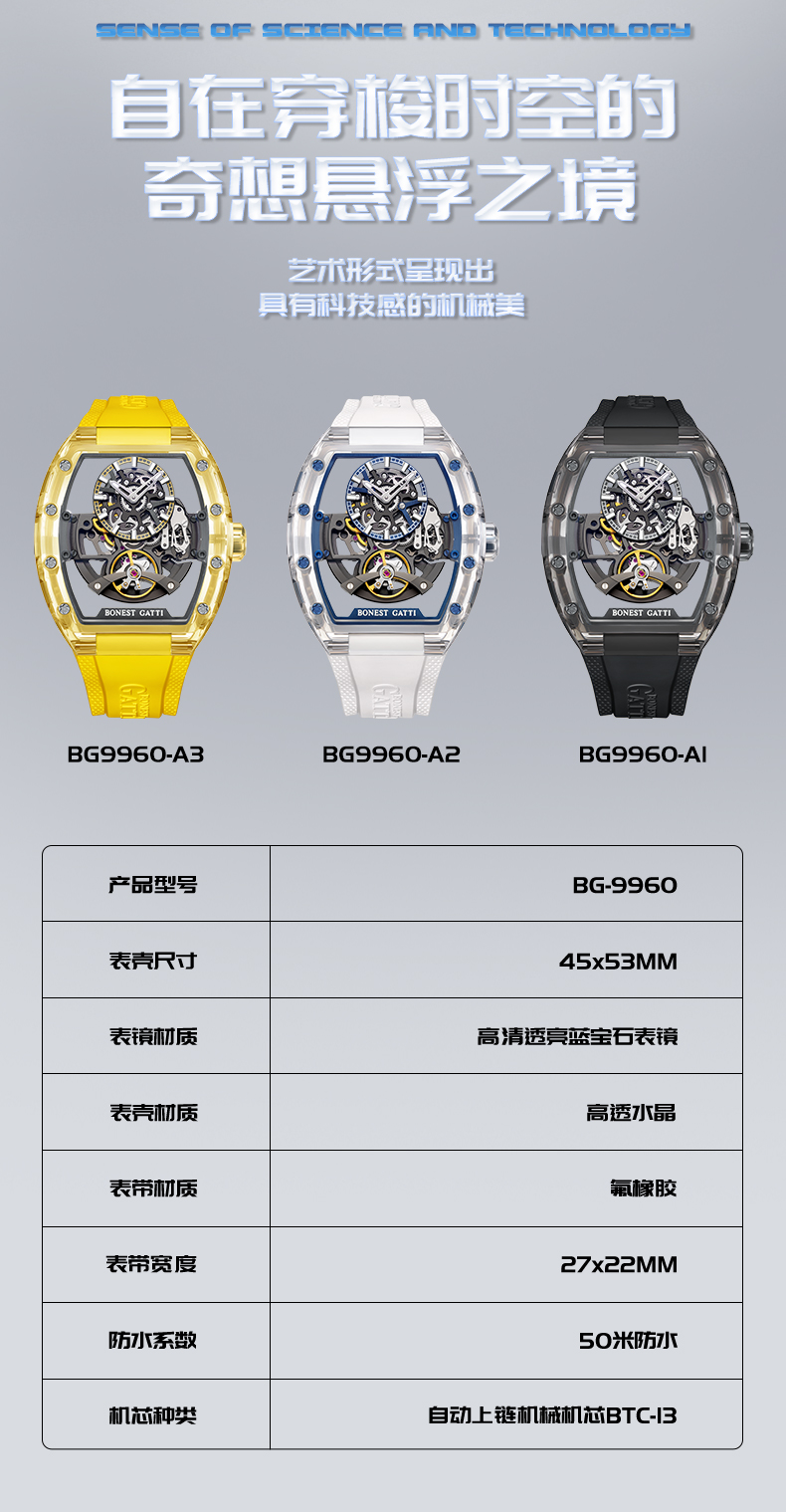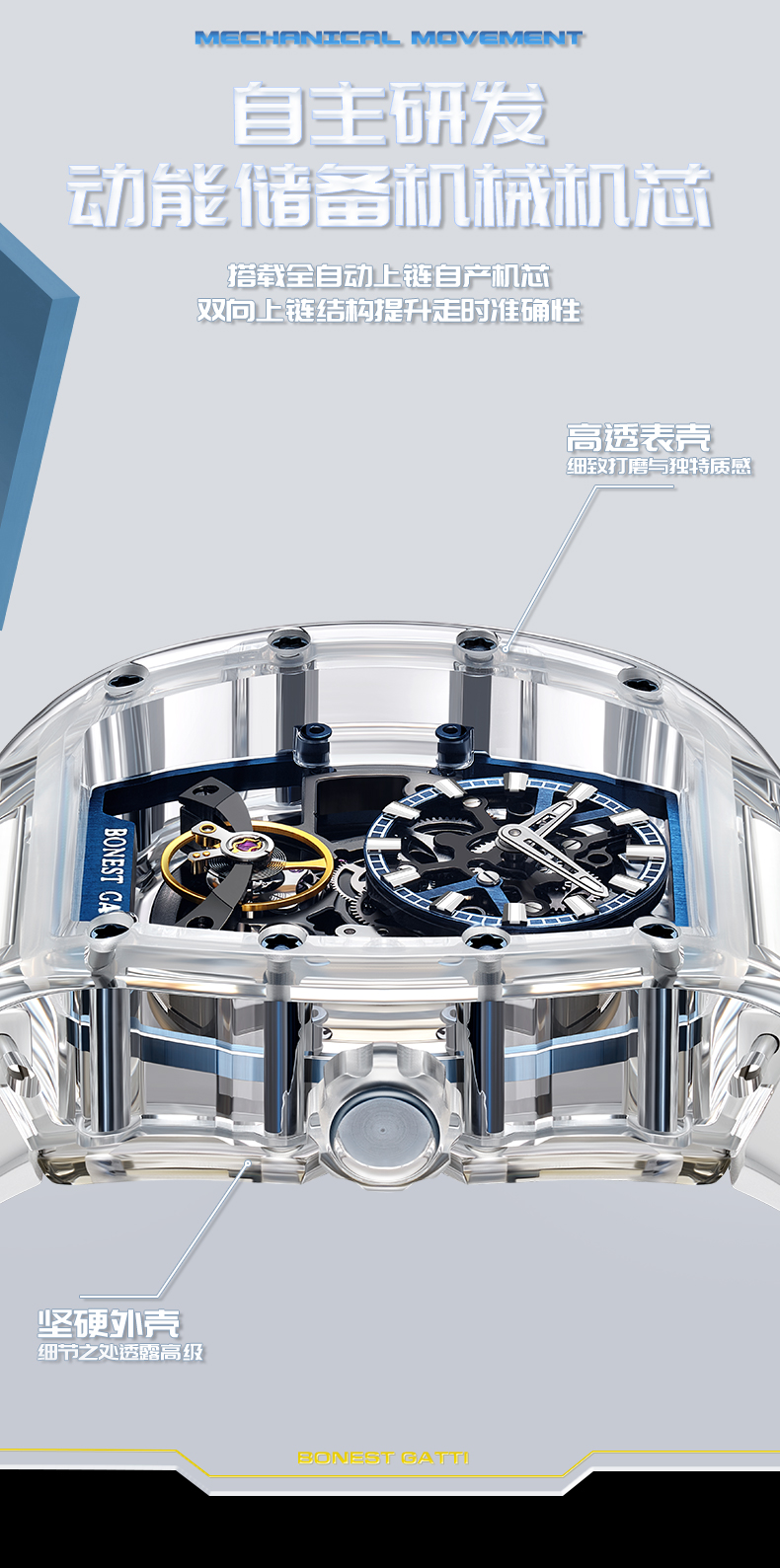 BONEST GATTI/布加迪夏季新款时尚透明壳酒桶全自动机械表BG9960 JCZ