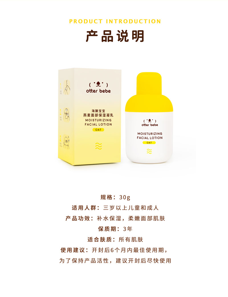 海獭宝宝小黄瓶燕麦保湿凝乳乳液 滋润保湿成人孕妇儿童通用30g