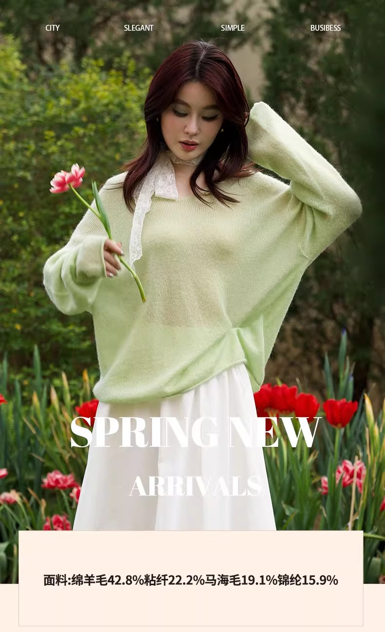 【门店同款】ENJOY春季绮梦繁花V领亮色针织衫 161900190