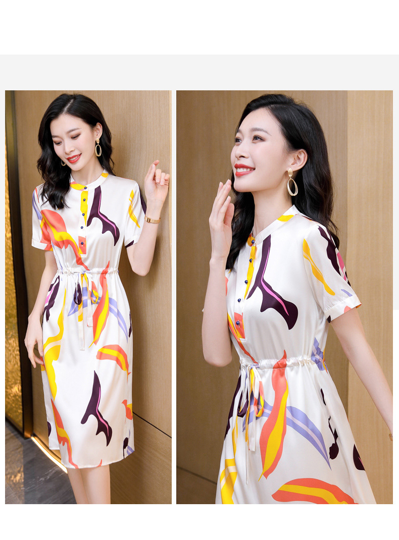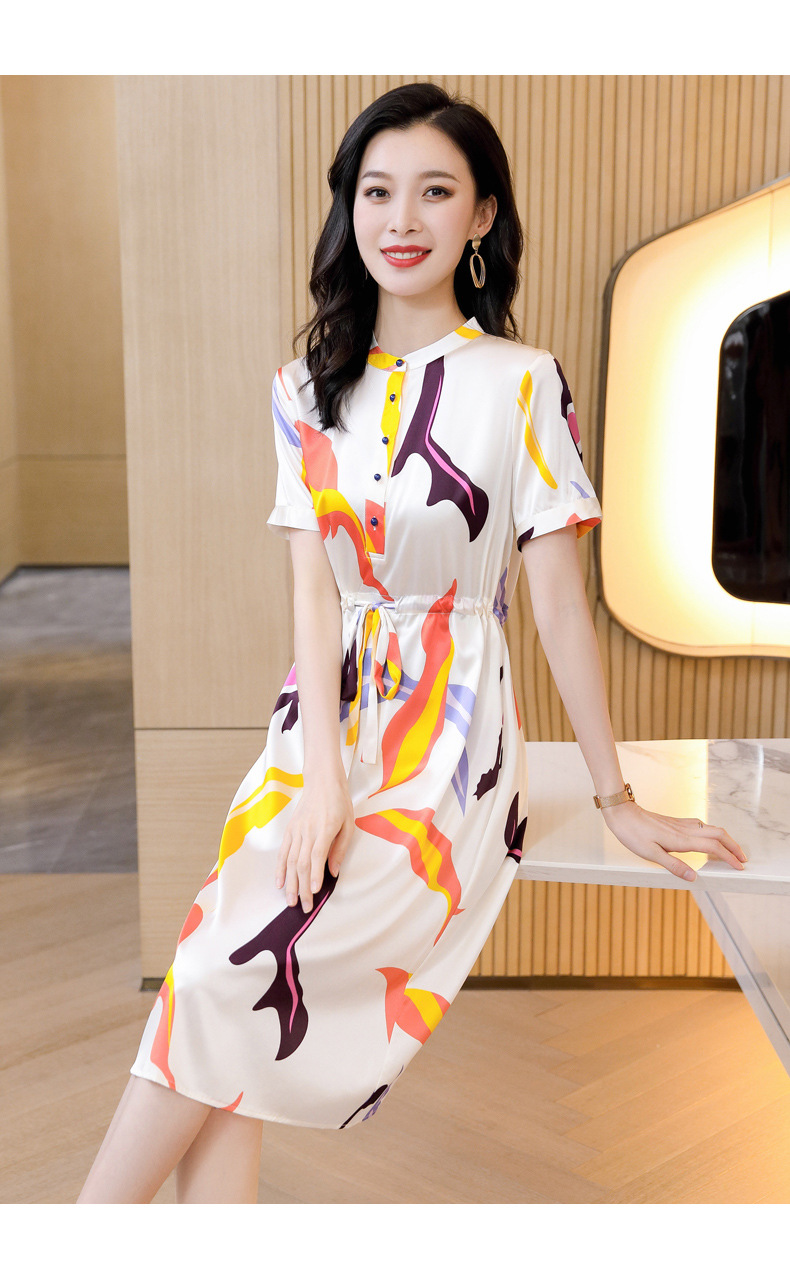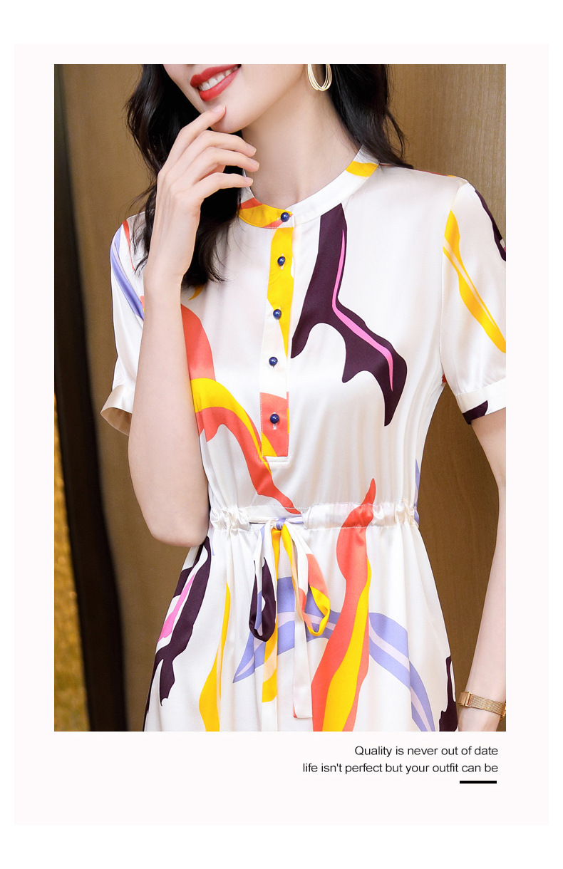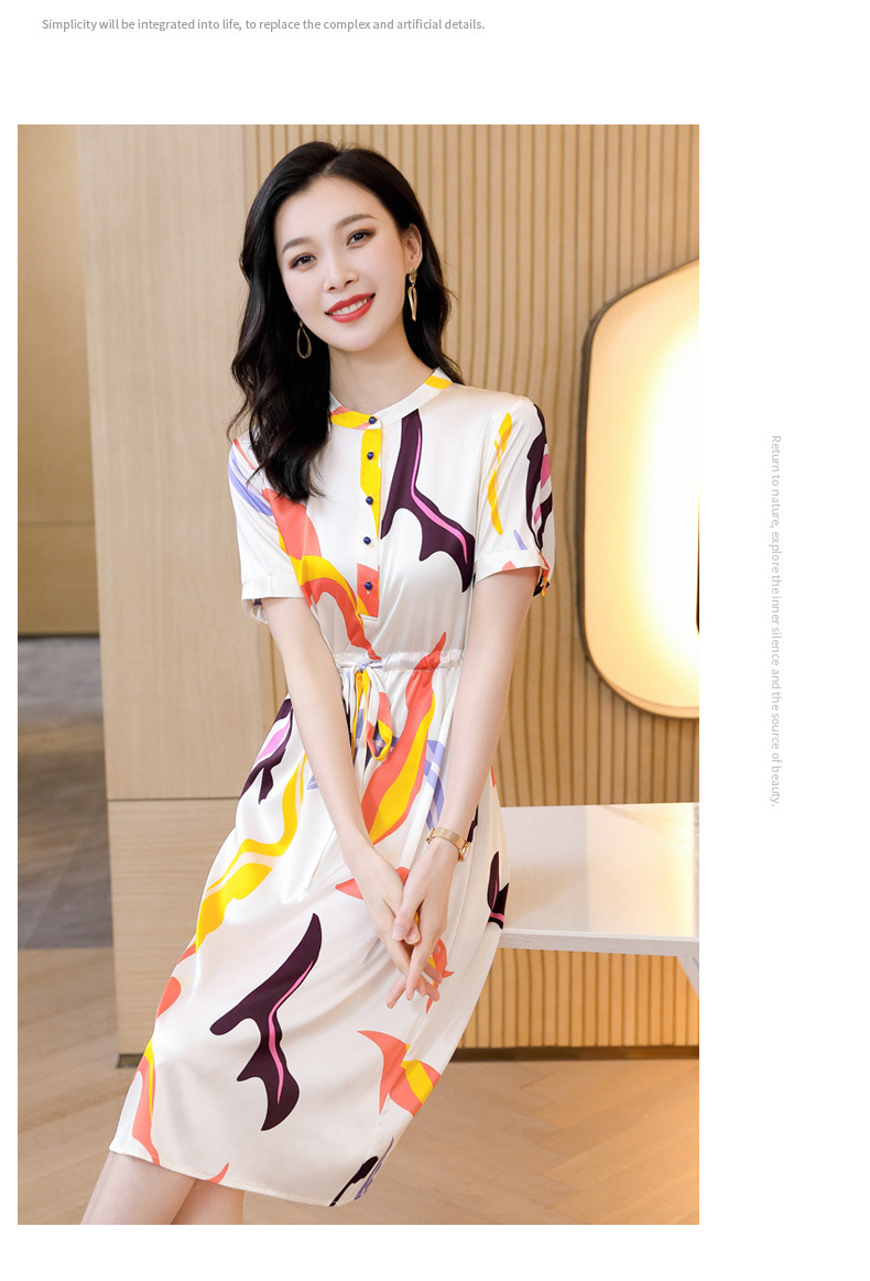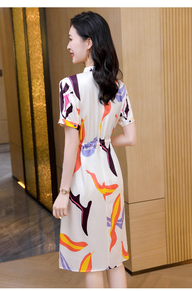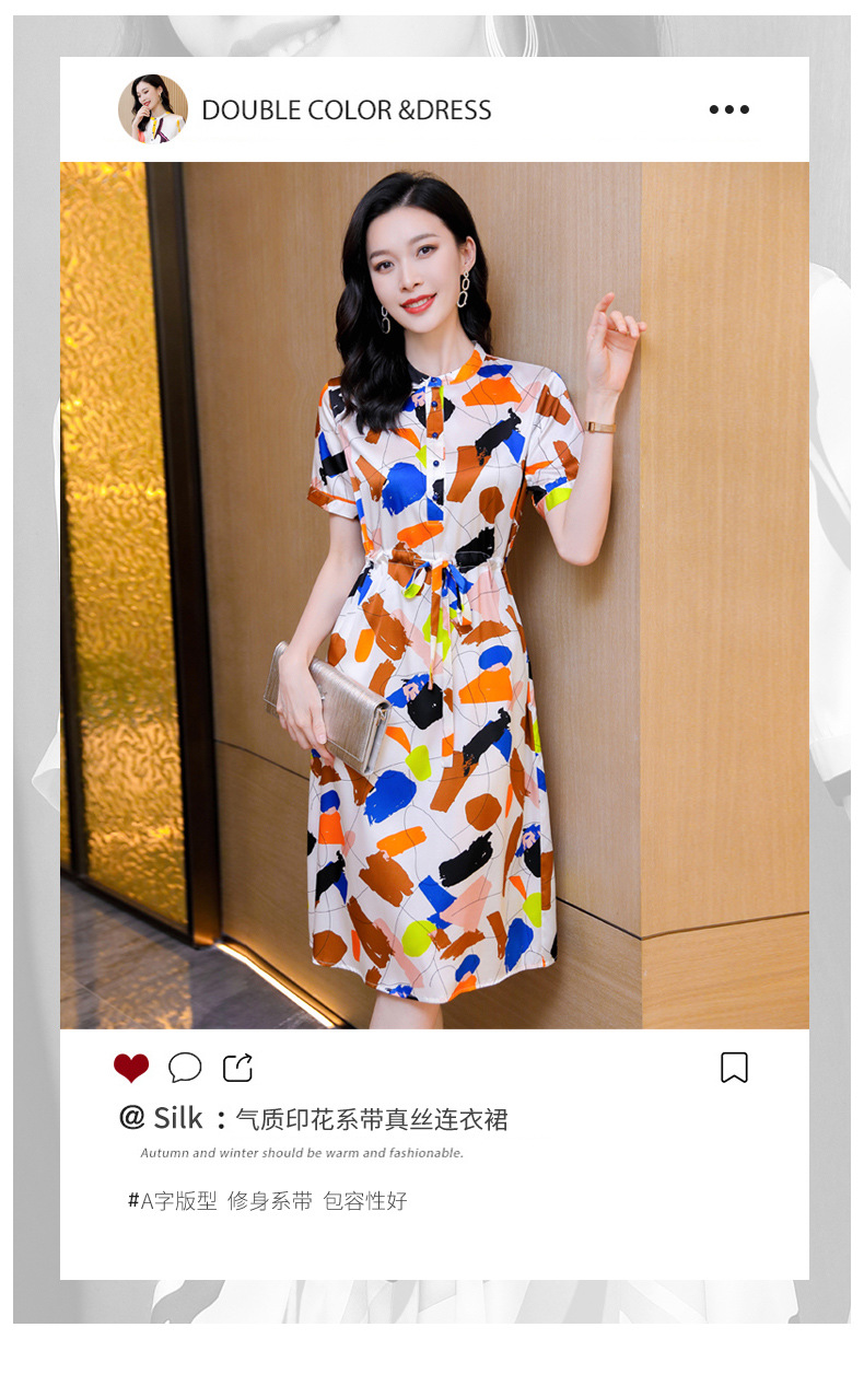 时尚百塔,真丝印花气质女式连衣裙ASE-9319