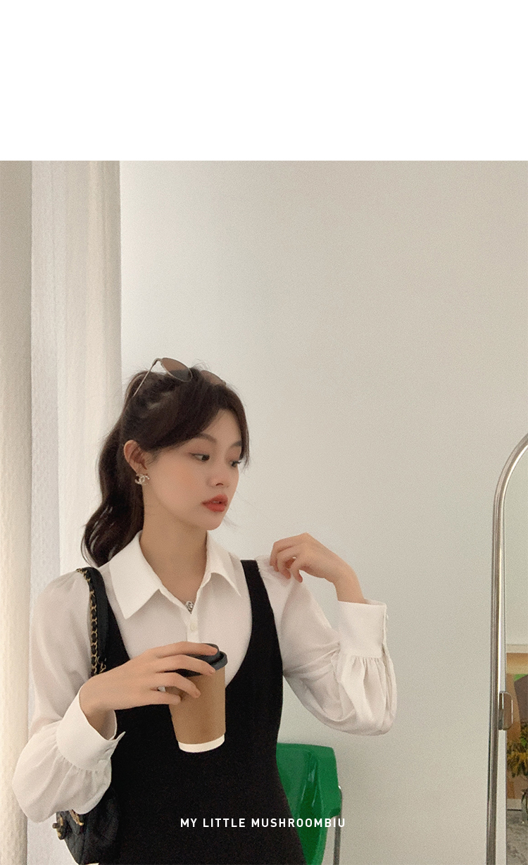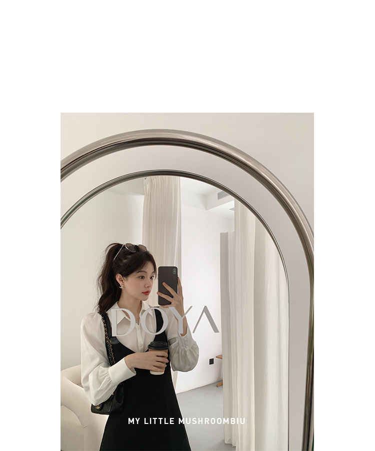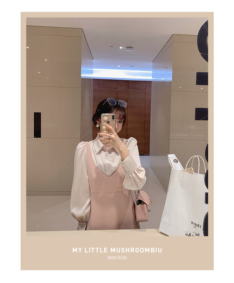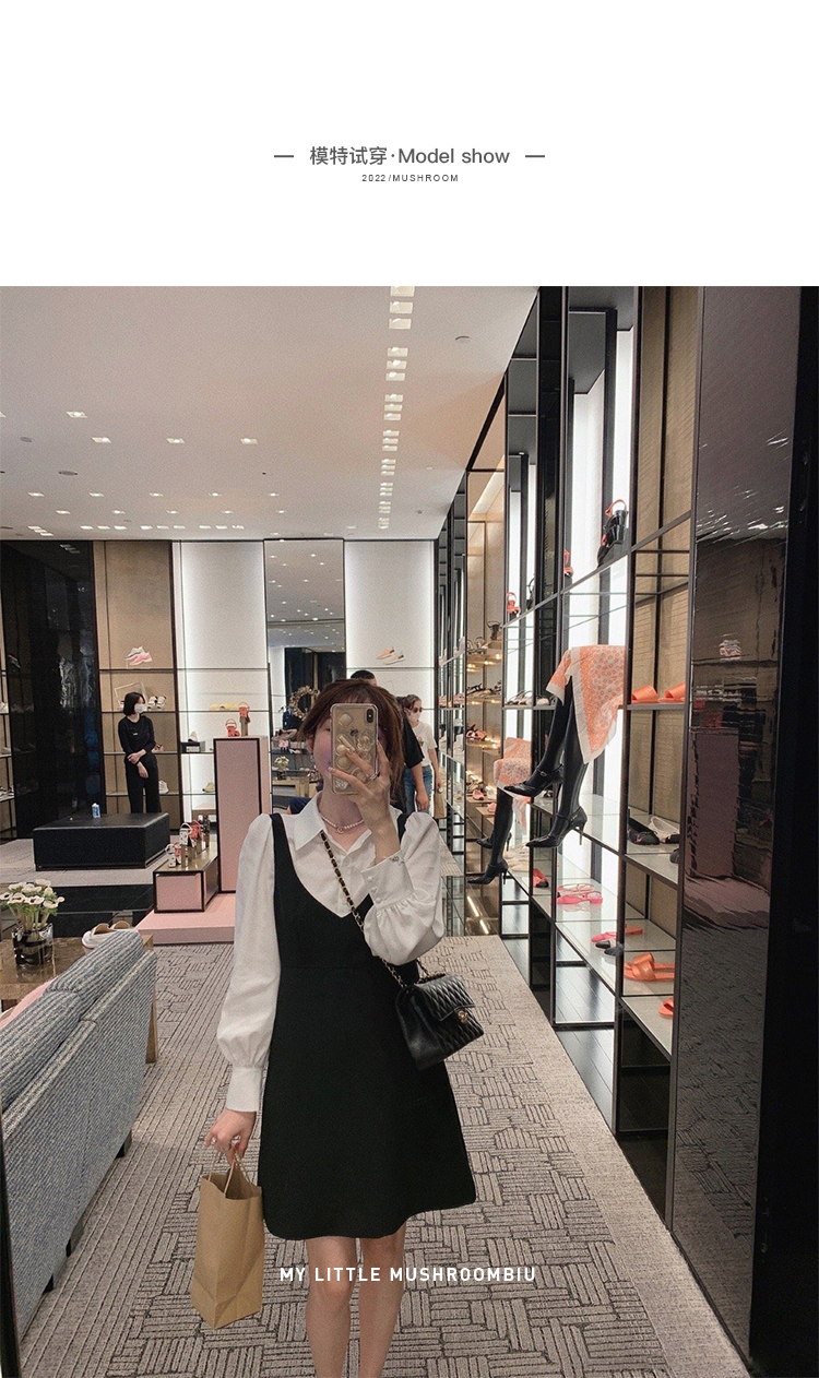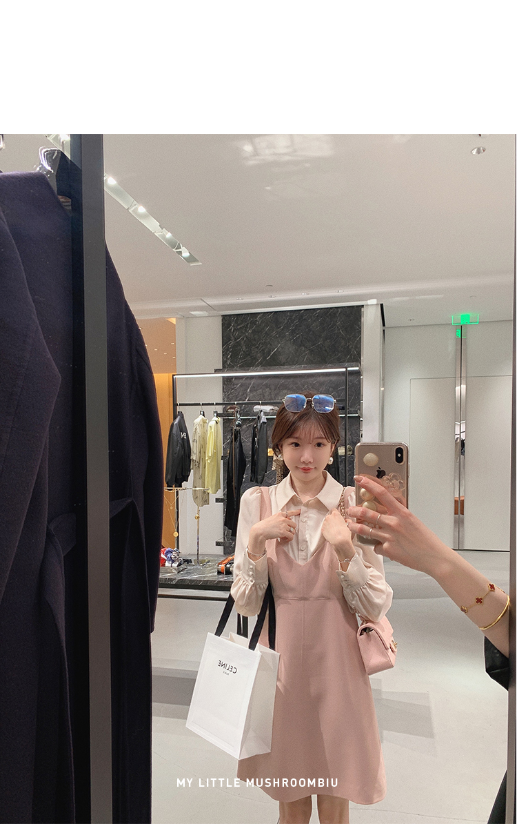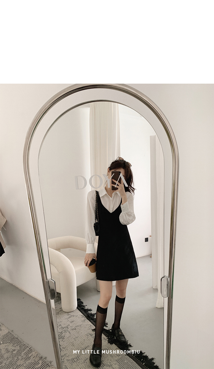 XS 码 高級黑白 /香槟裸粉 金蘑菇菇【甜甜圈 乖甜密码】轻薄凉快假两件衬衫连衣裙气质裙子