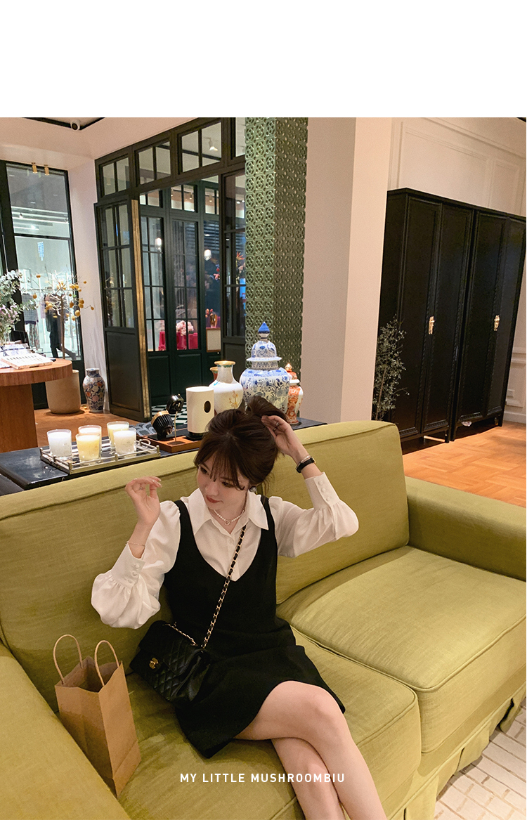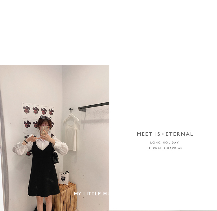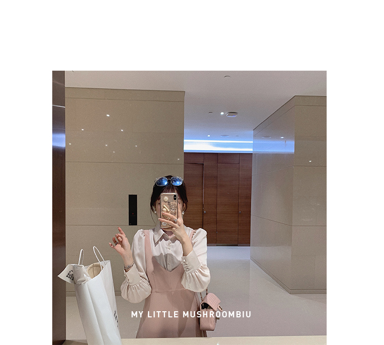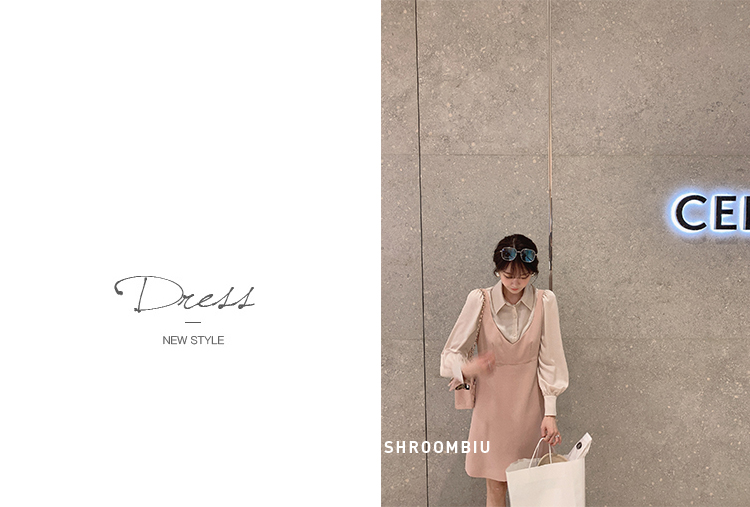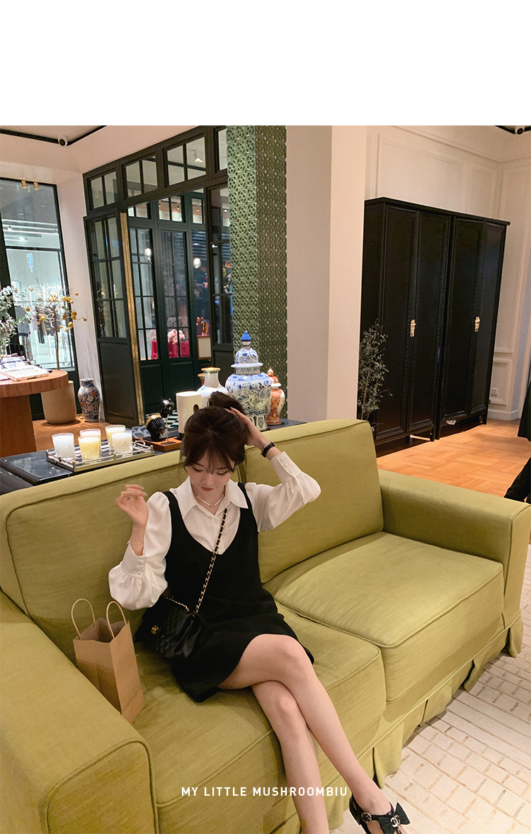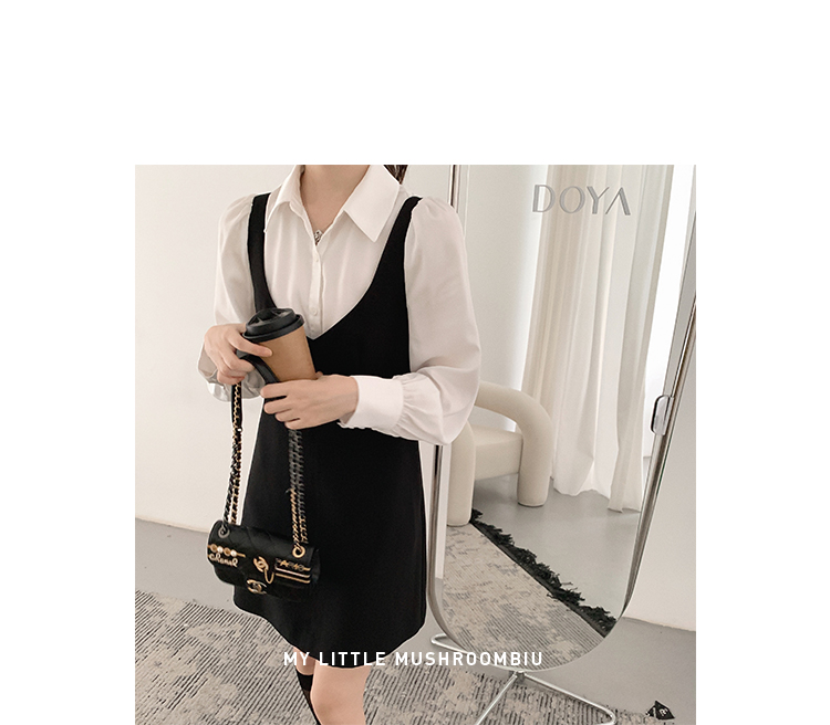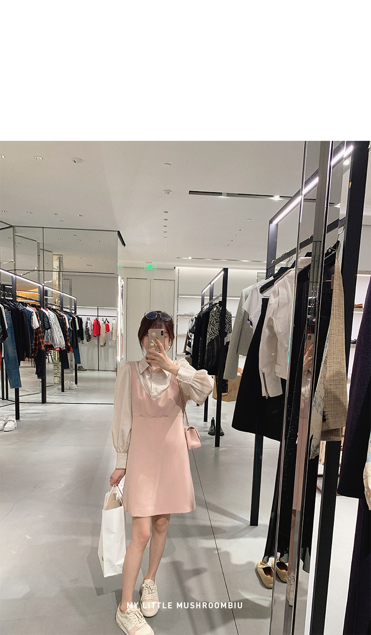 XS 码 高級黑白 /香槟裸粉 金蘑菇菇【甜甜圈 乖甜密码】轻薄凉快假两件衬衫连衣裙气质裙子