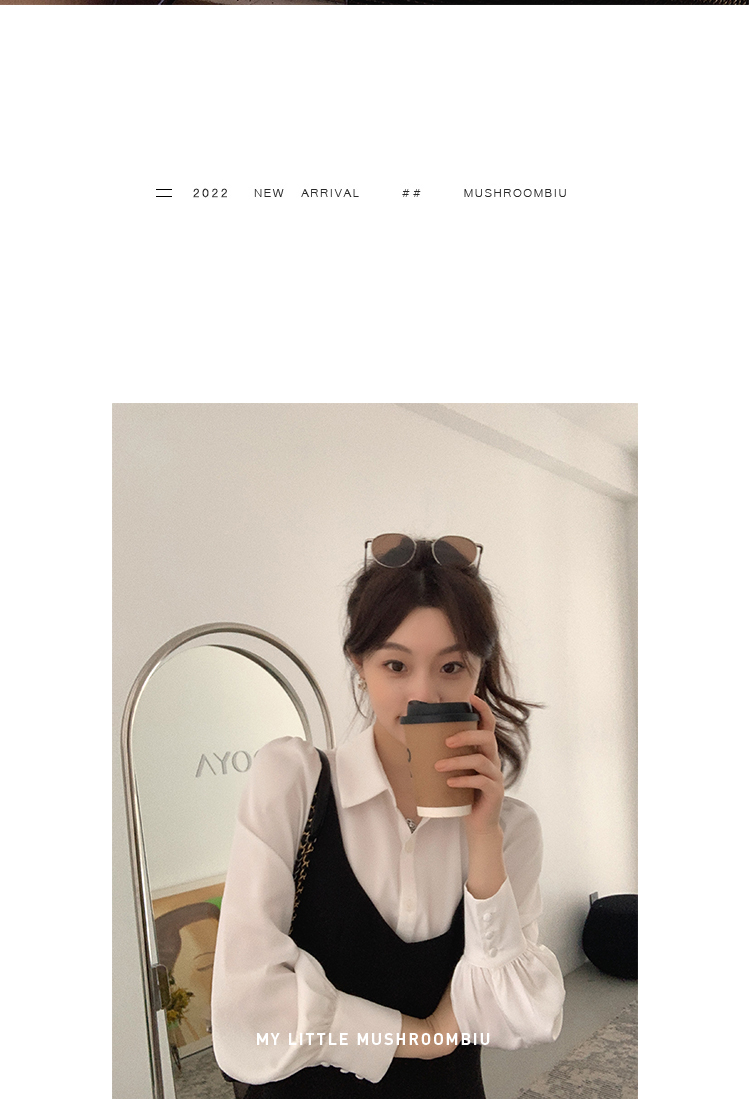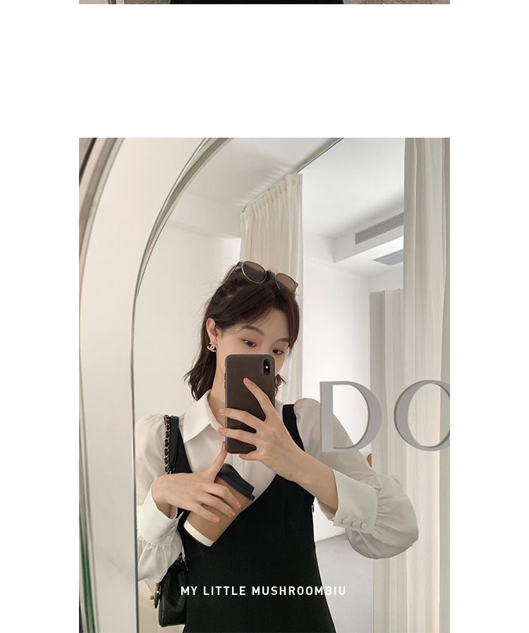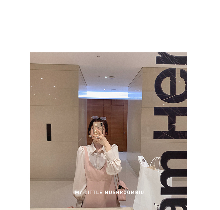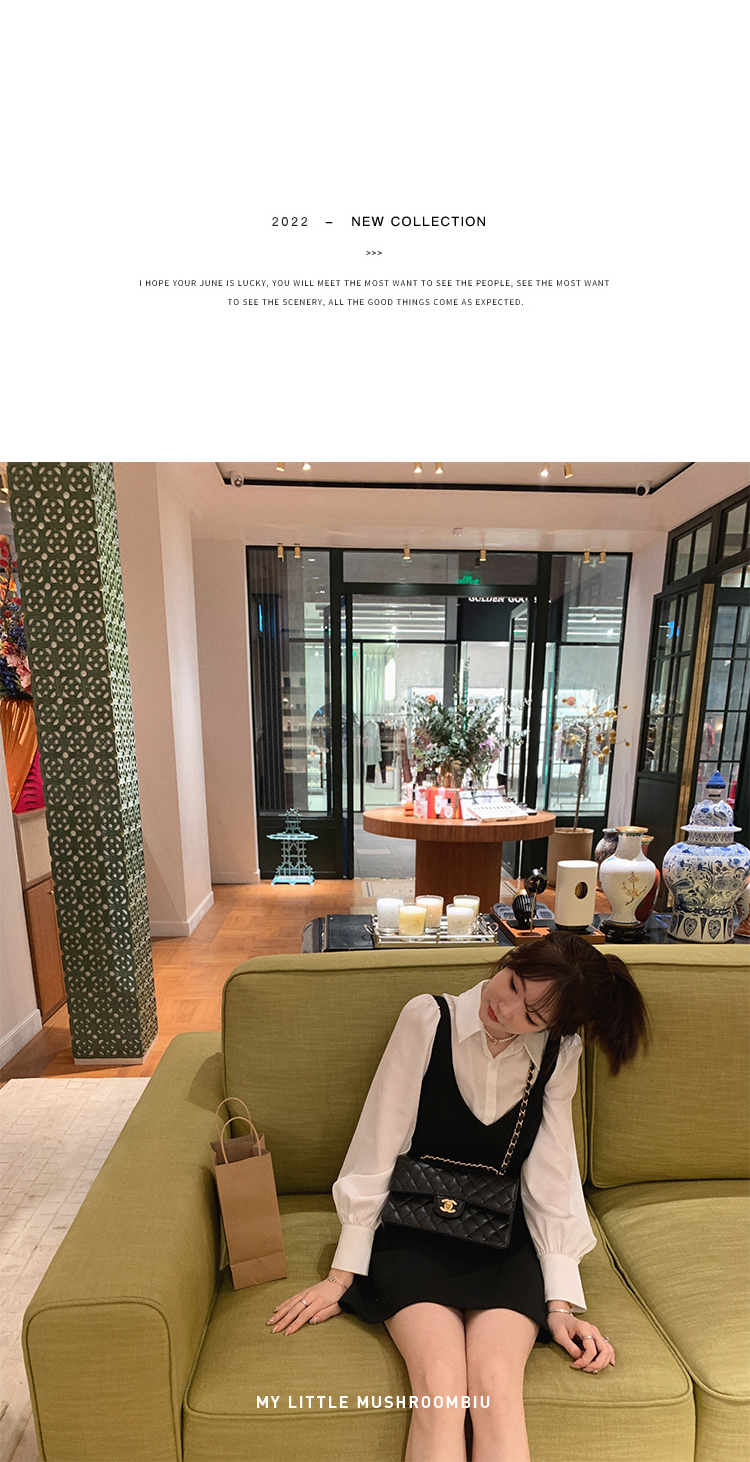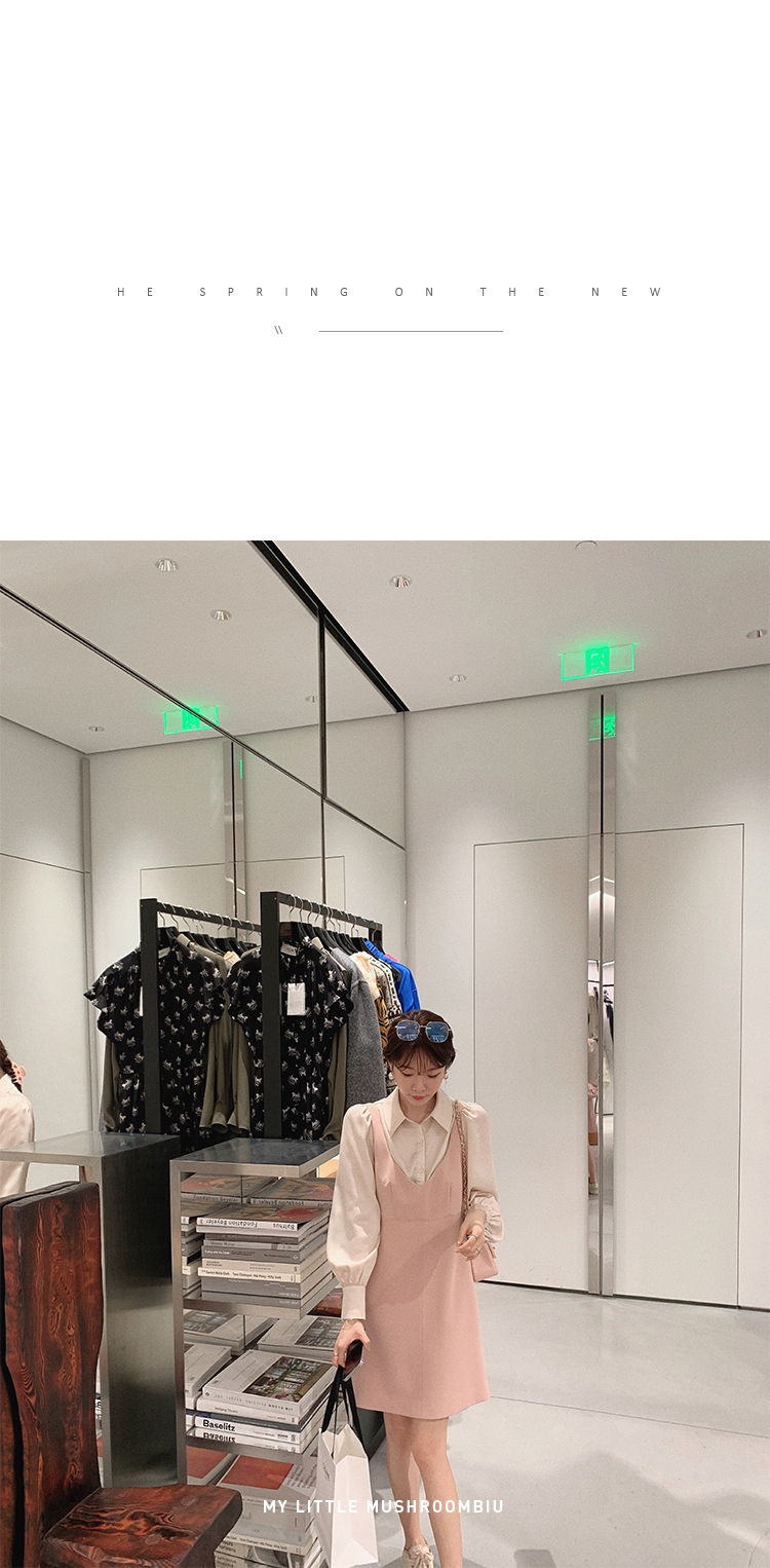 XS 码 高級黑白 /香槟裸粉 金蘑菇菇【甜甜圈 乖甜密码】轻薄凉快假两件衬衫连衣裙气质裙子