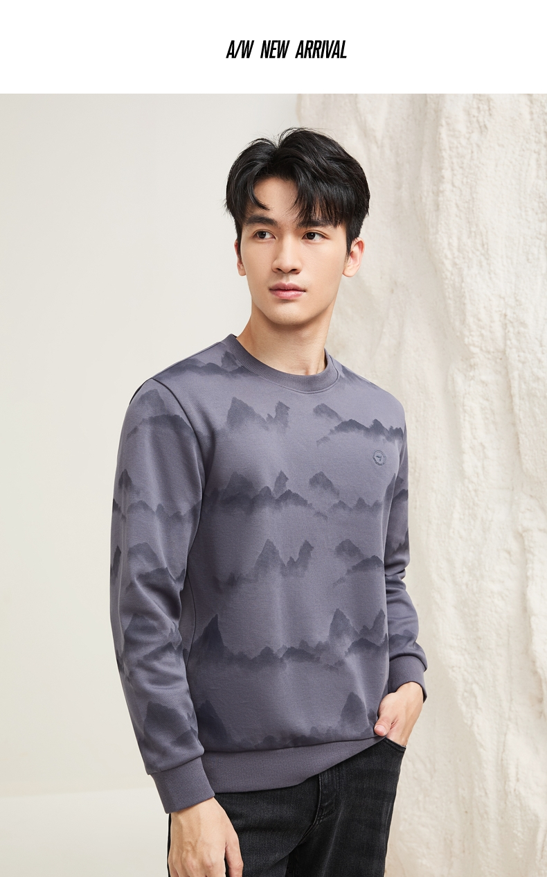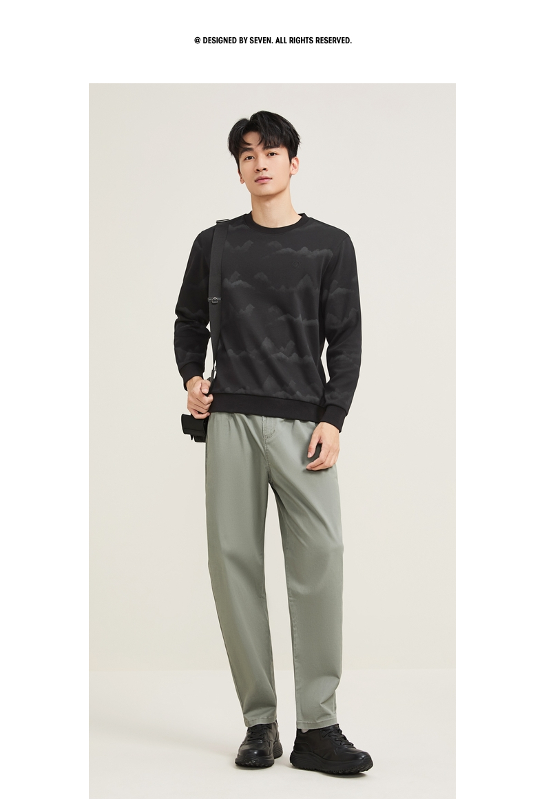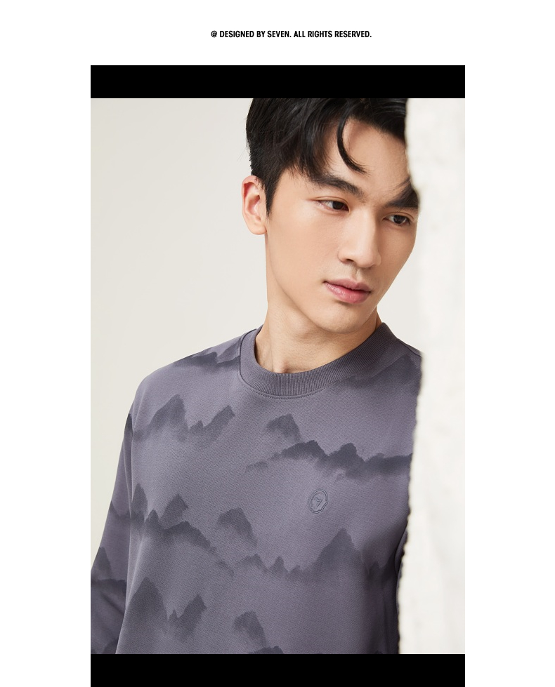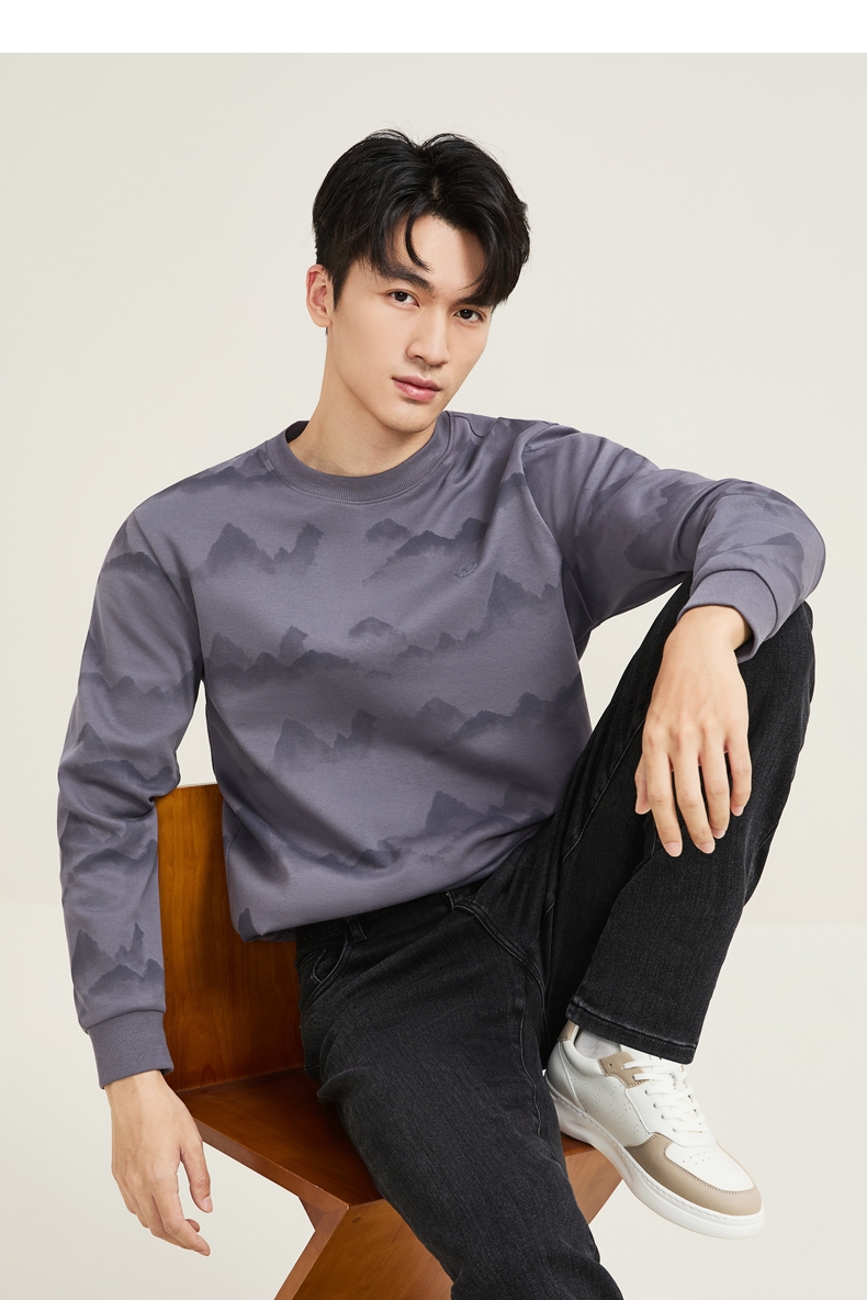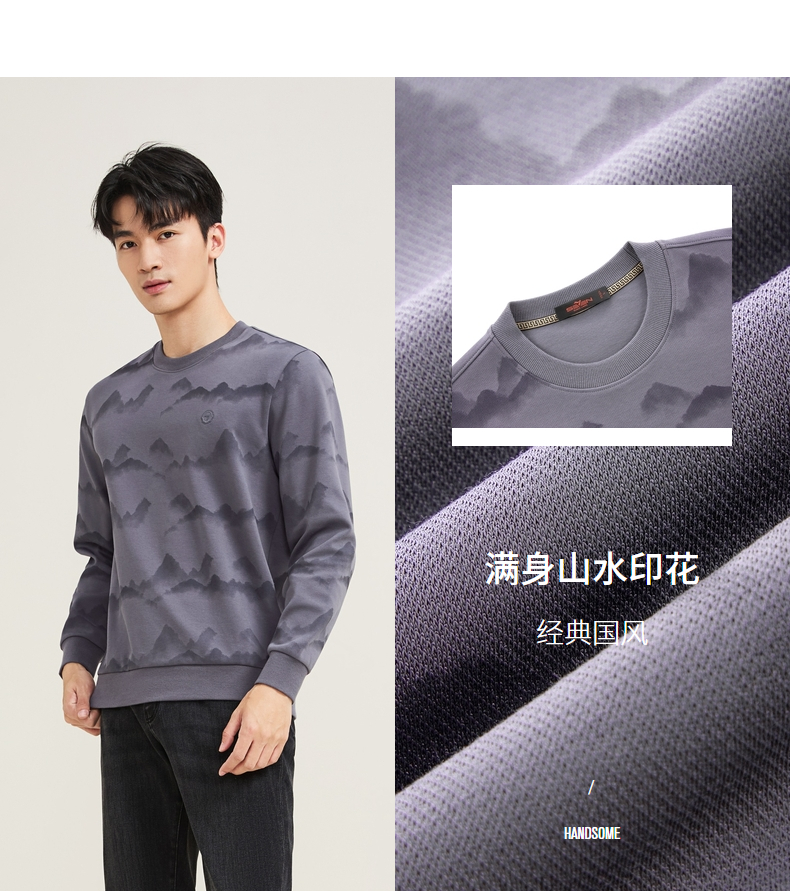 【新疆棉/国风图案】柒牌卫衣男秋季休闲印花中青年长袖圆领上衣129W70230