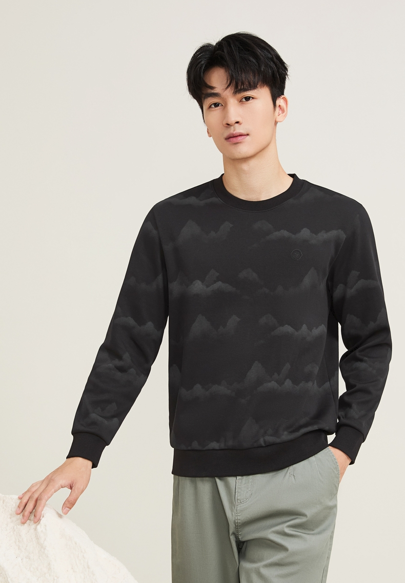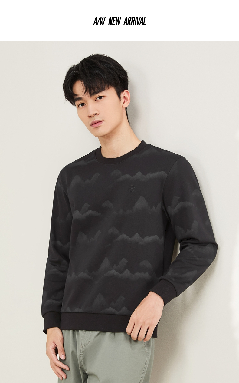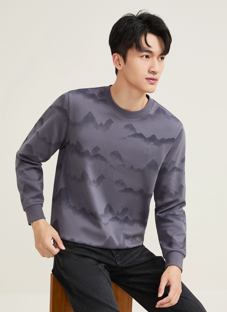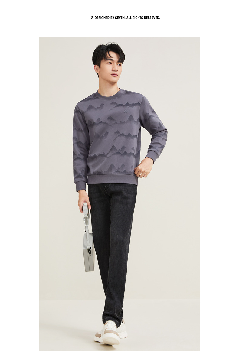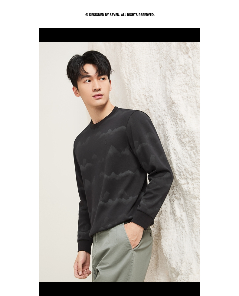 【新疆棉/国风图案】柒牌卫衣男秋季休闲印花中青年长袖圆领上衣129W70230