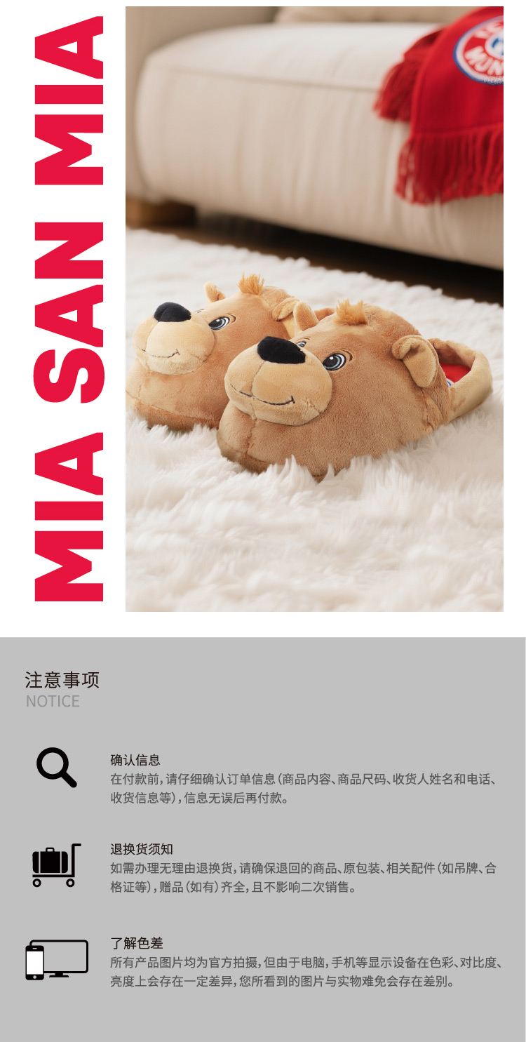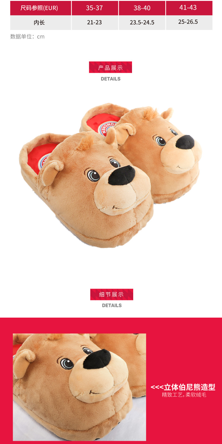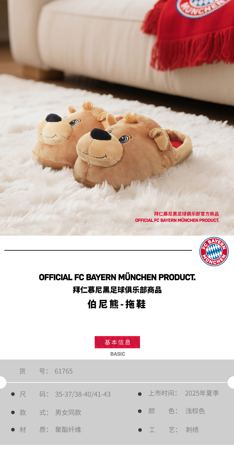 【官网同款】拜仁足球俱乐部丨伯尼熊拖鞋软萌吉祥物棉拖柔软舒适
