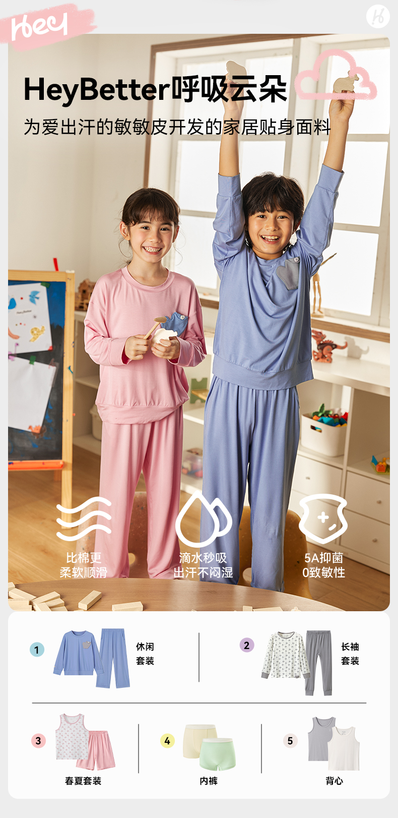 【代发】【预售3天左右发货】Heybetter呼吸云朵儿童休闲家居服套装
