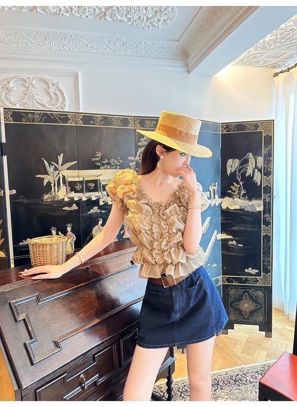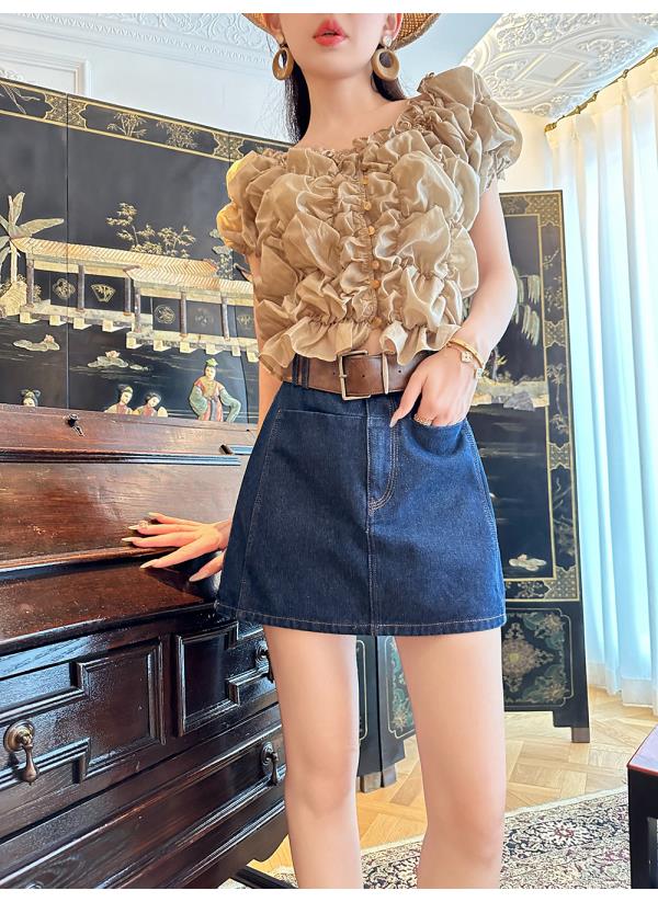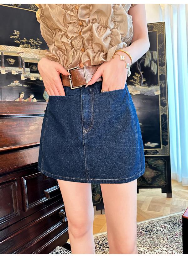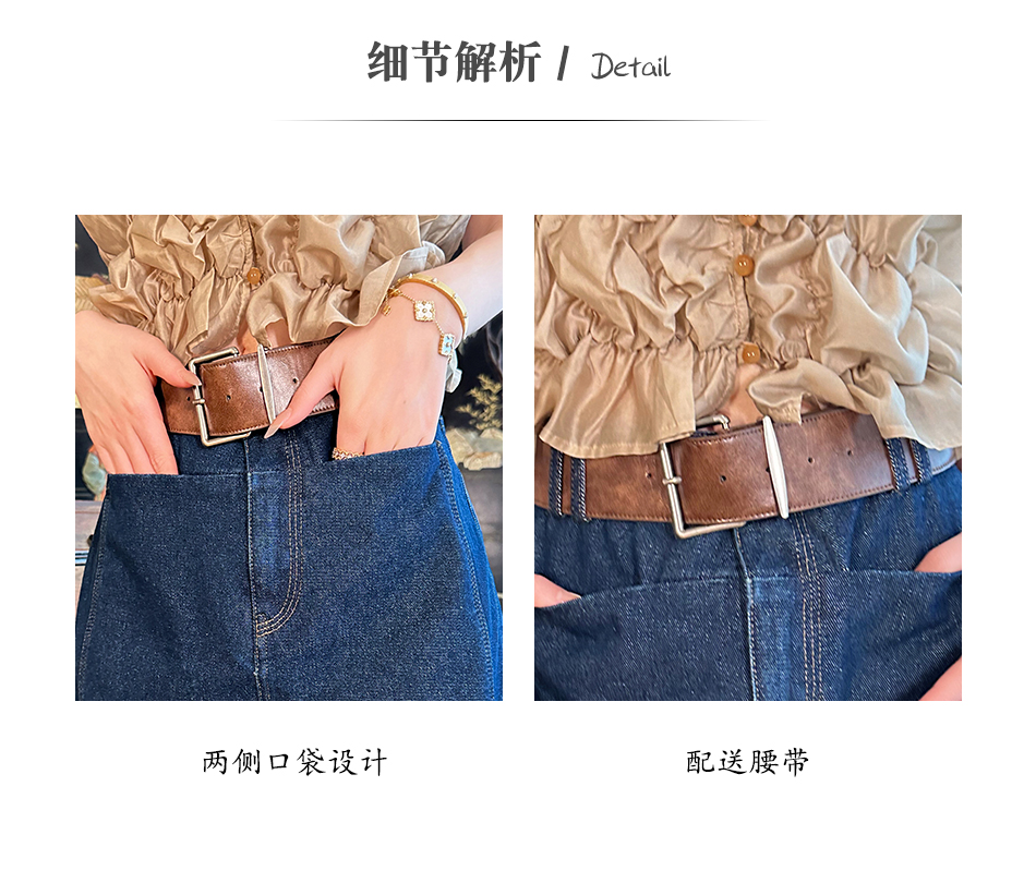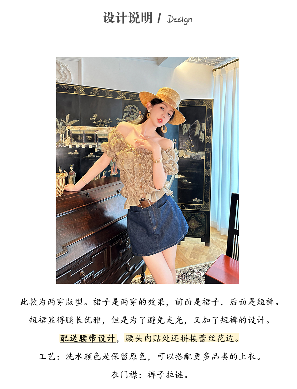 【孤品样衣,不退不换】【深海牛仔】实用大口袋拼接蕾丝花边洗水牛仔裤裙