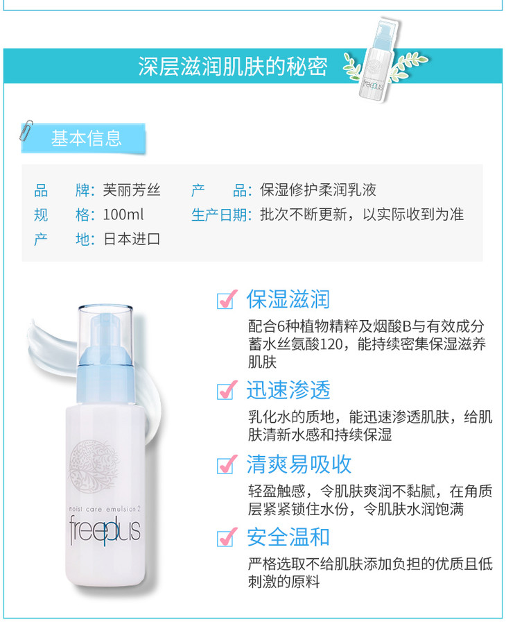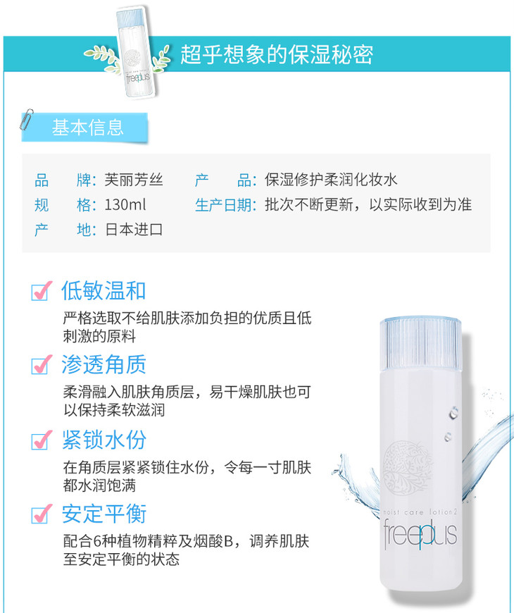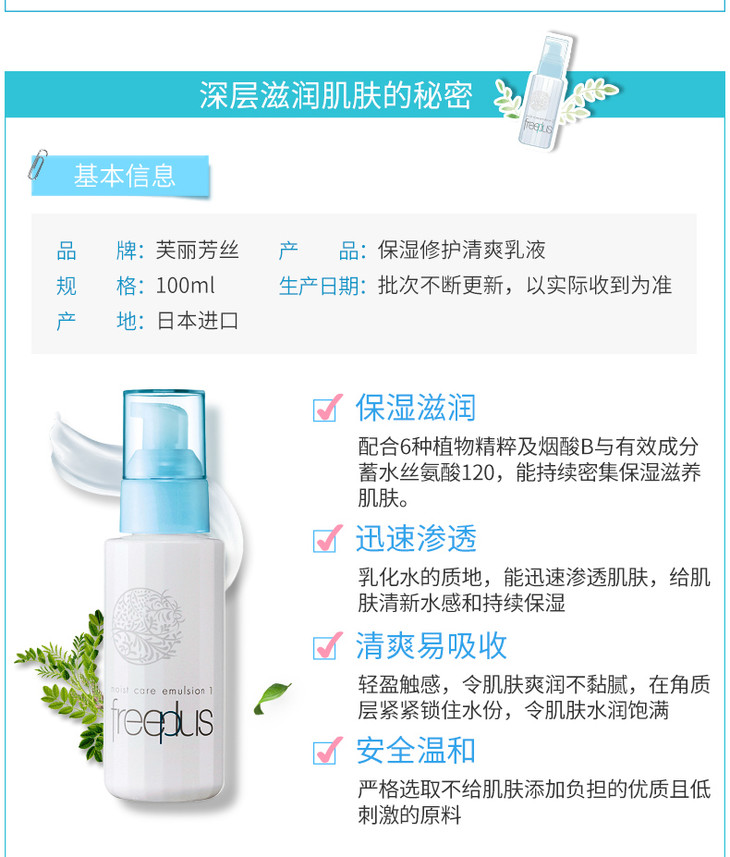【香港直邮】日本freeplus芙丽芳丝水乳套装乳液清爽/滋润补水控油孕妇敏感肌可用
