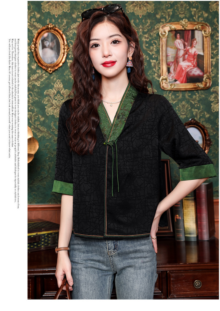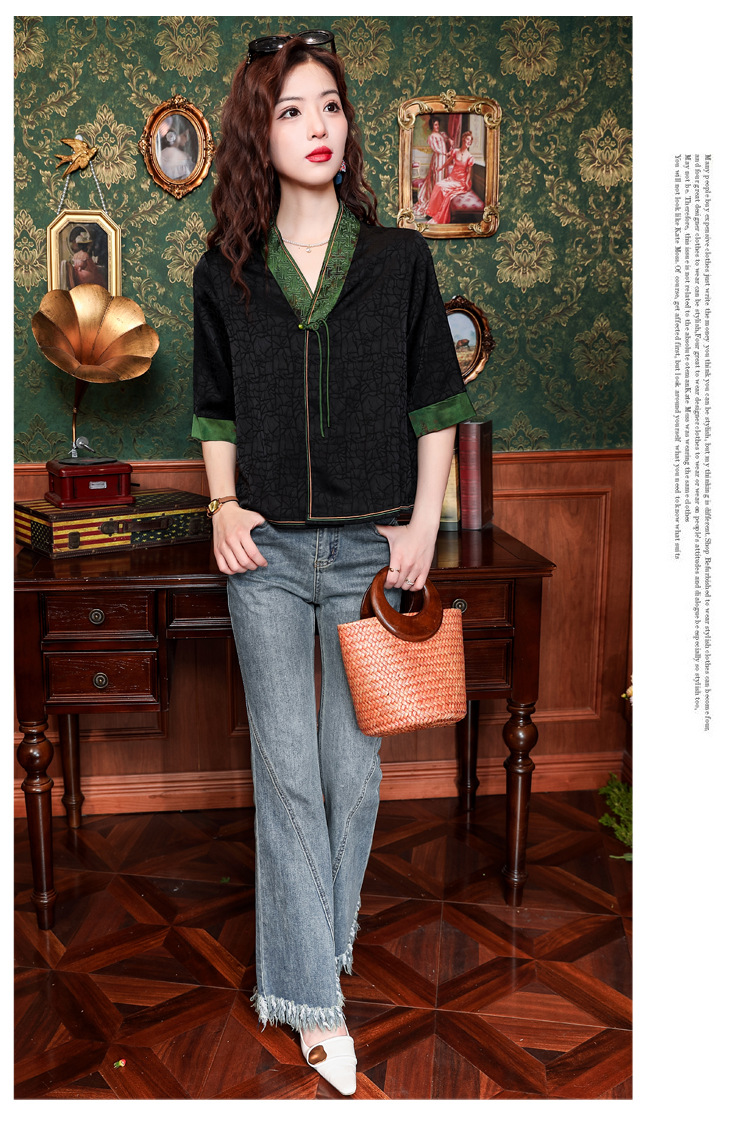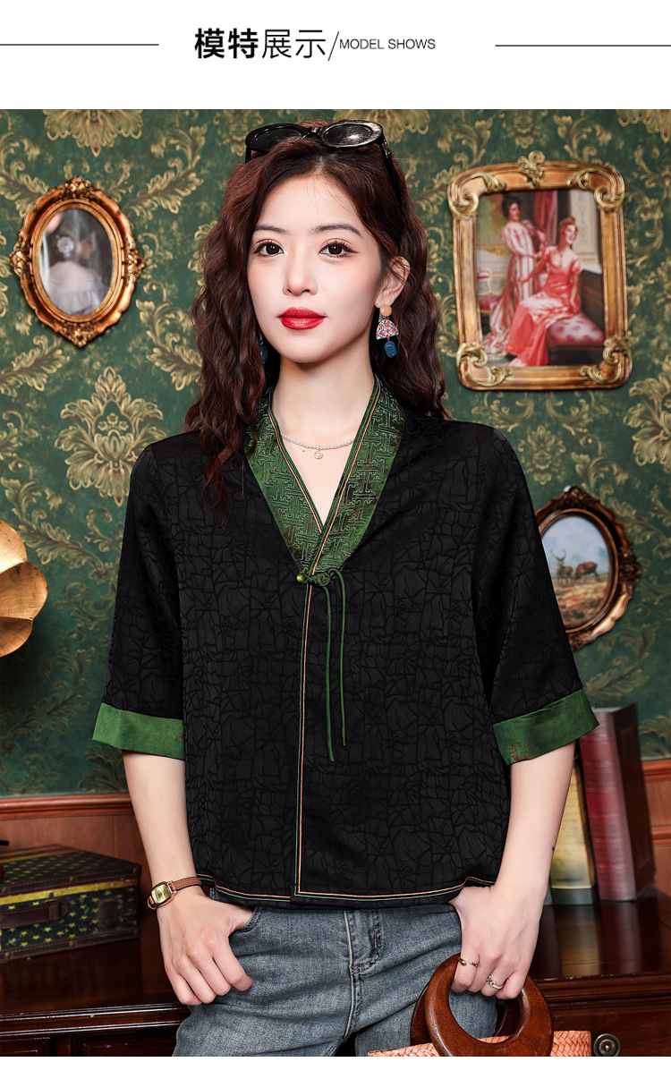 贵夫人香云纱新中式,唐装衬衫大码国风妈妈衬衣KQL-422H8572