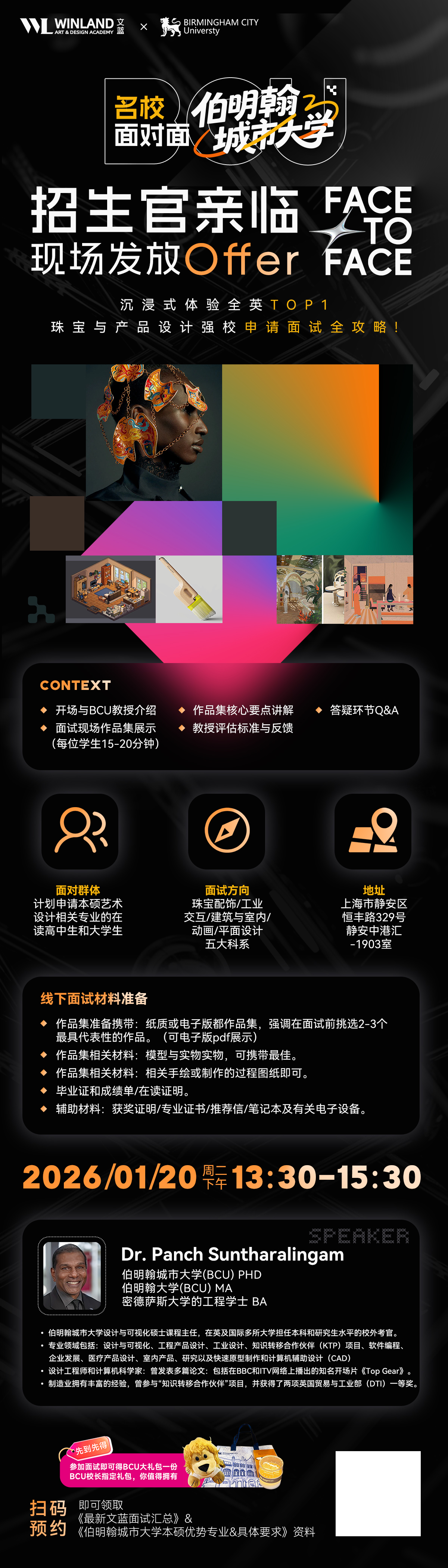 【名校面对面】BCU伯明翰城市大学来啦!1月20日招生官亲临上海,现场面试直发offer!