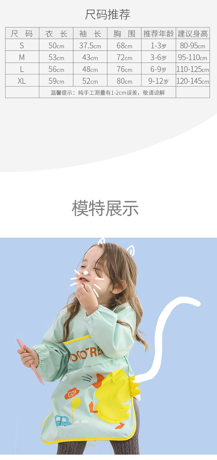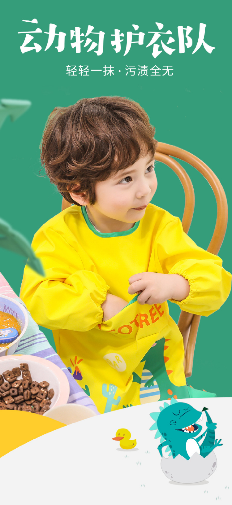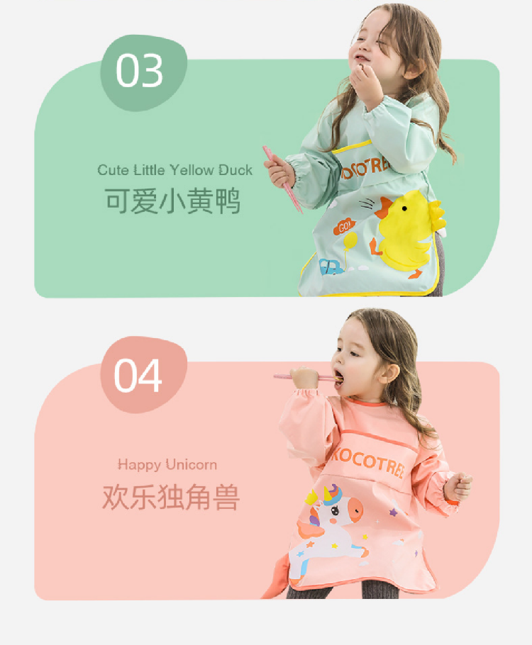 【宝宝防污渍罩衣】儿童围裙宝宝防水反穿防脏饭兜 吃饭免洗围裙画画围兜外穿罩衣