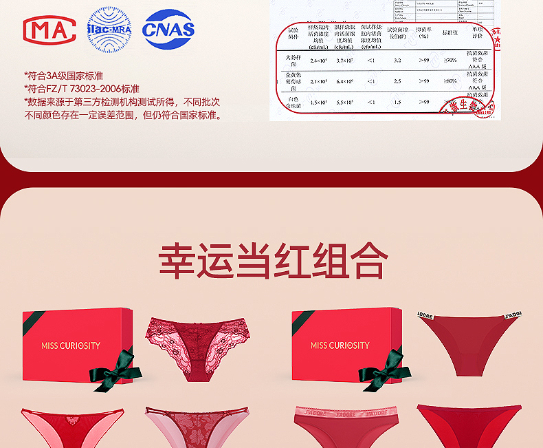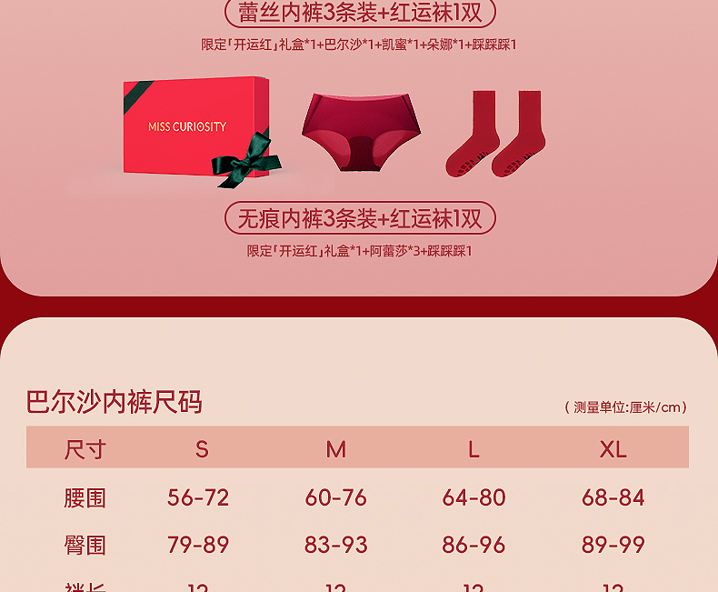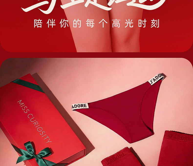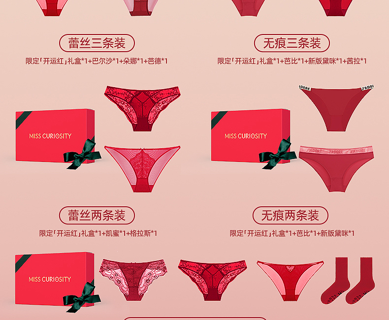 好奇蜜斯红色内裤女3A抗菌棉裆舒适透气三角裤本命年结婚低腰性感-红色内裤组合礼盒