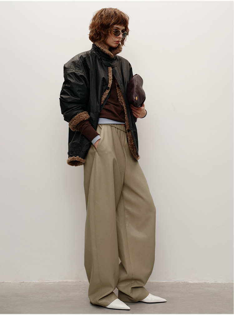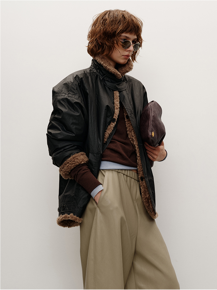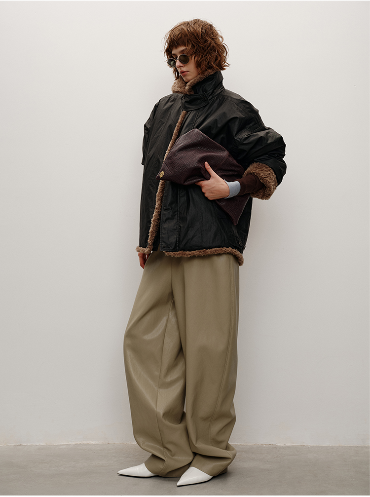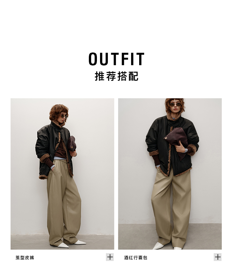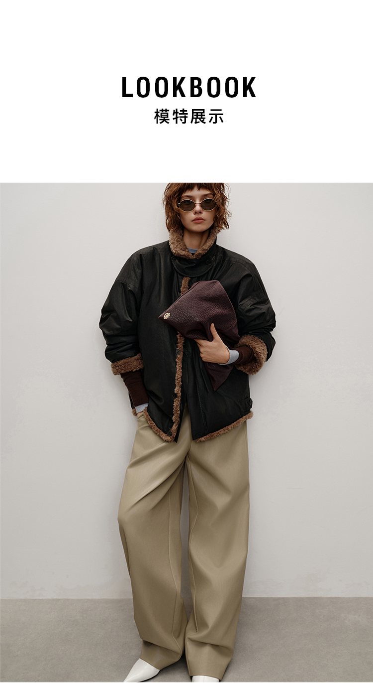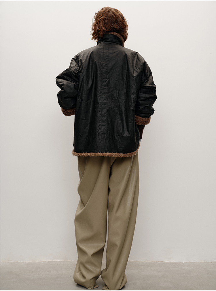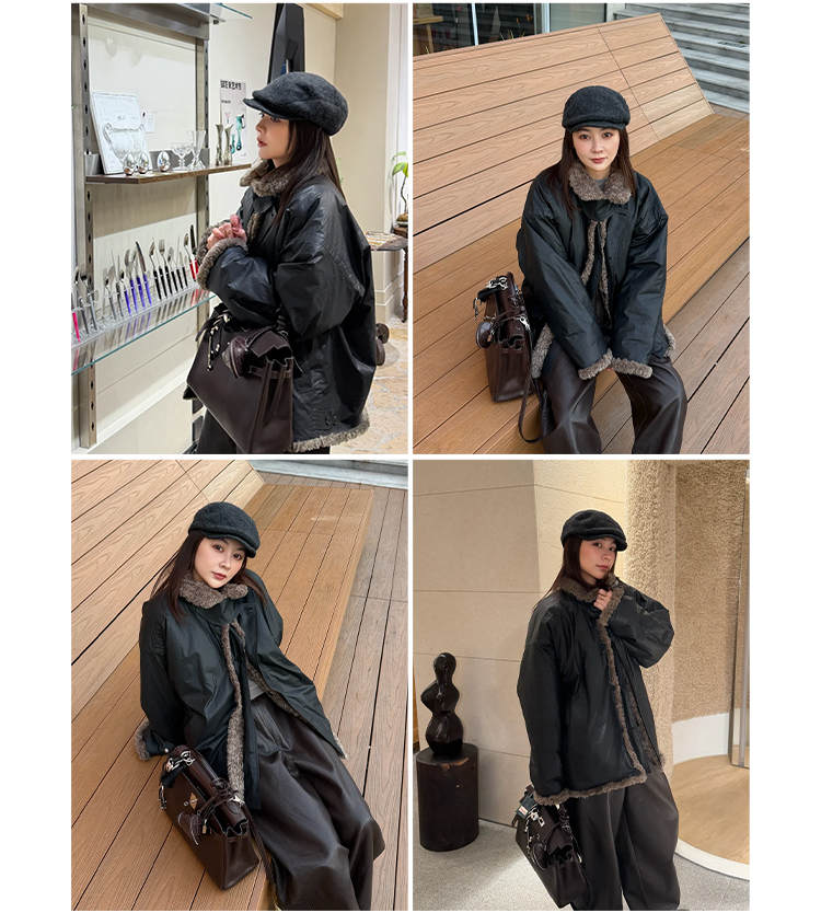 HIDEMI 双面两穿立领圈圈绒拼接复古做旧感加厚毛毛大衣外套 炭灰咖色