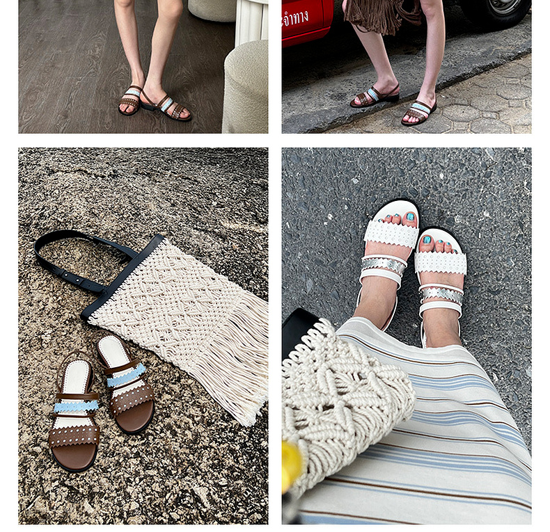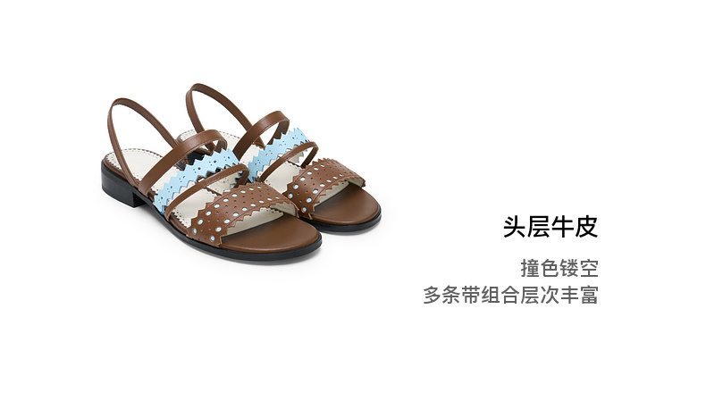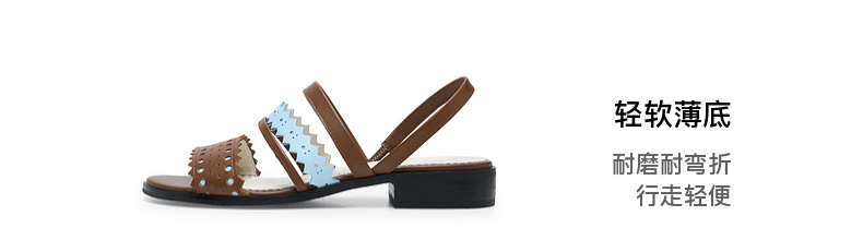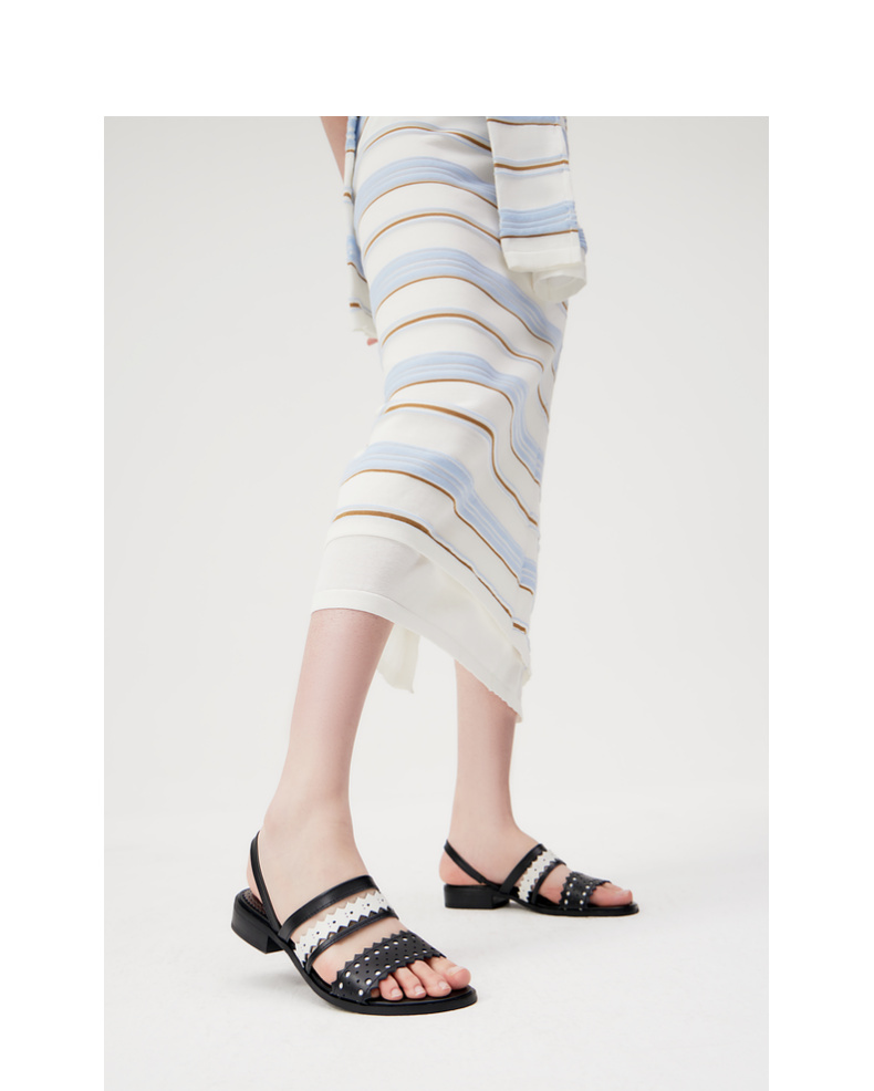 lost in echo2025春夏新款时尚布洛克撞色镂空多条带轻便平底凉鞋
