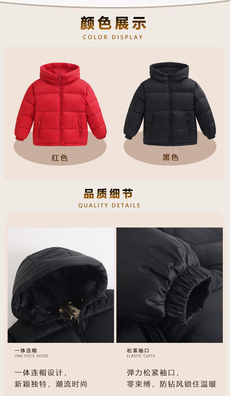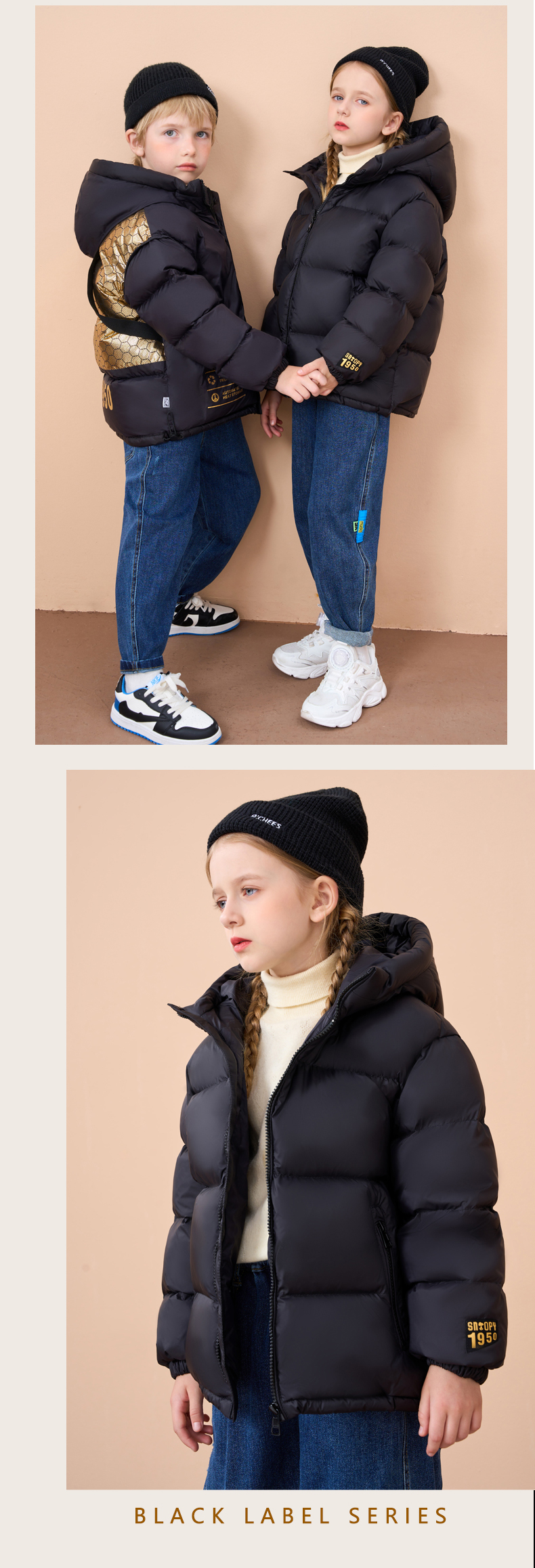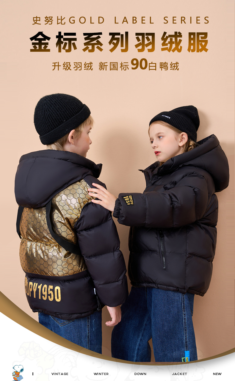 史努比黑色金标款儿童连帽羽绒服FJ5023