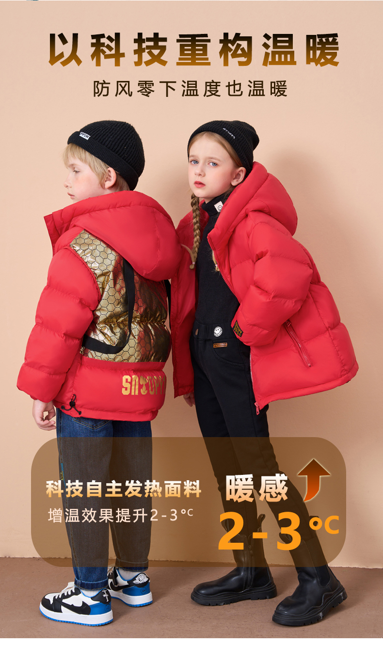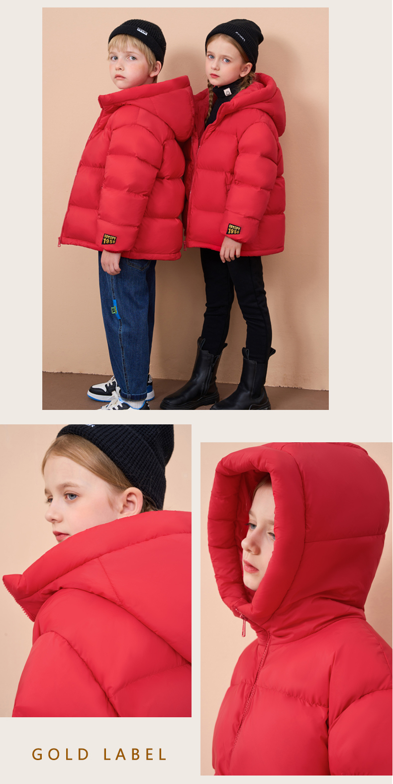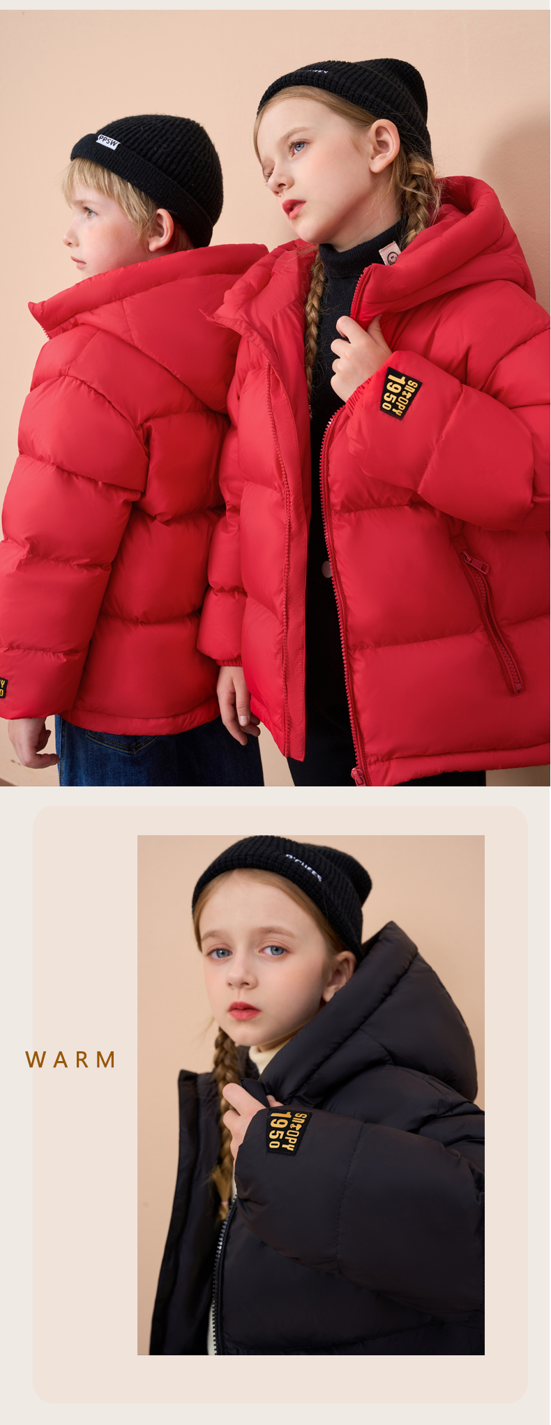 史努比黑色金标款儿童连帽羽绒服FJ5023