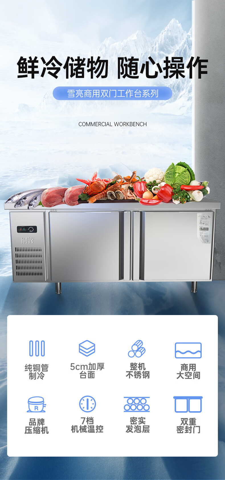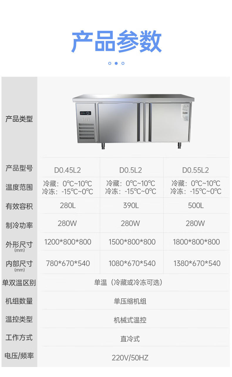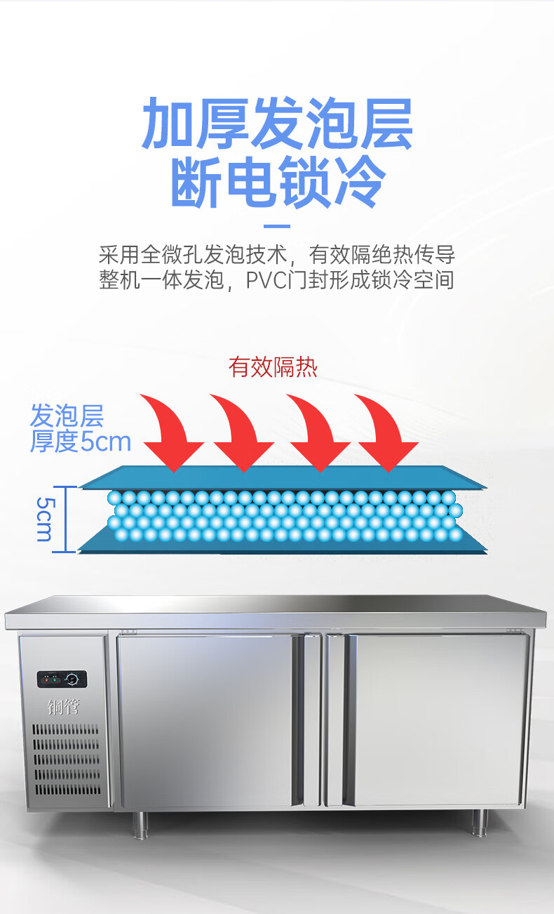 享美商用冷藏保鲜工作台厨房操作台酒店饭店奶茶店专用 1.2米*0.8米*0.8米(全铜管)