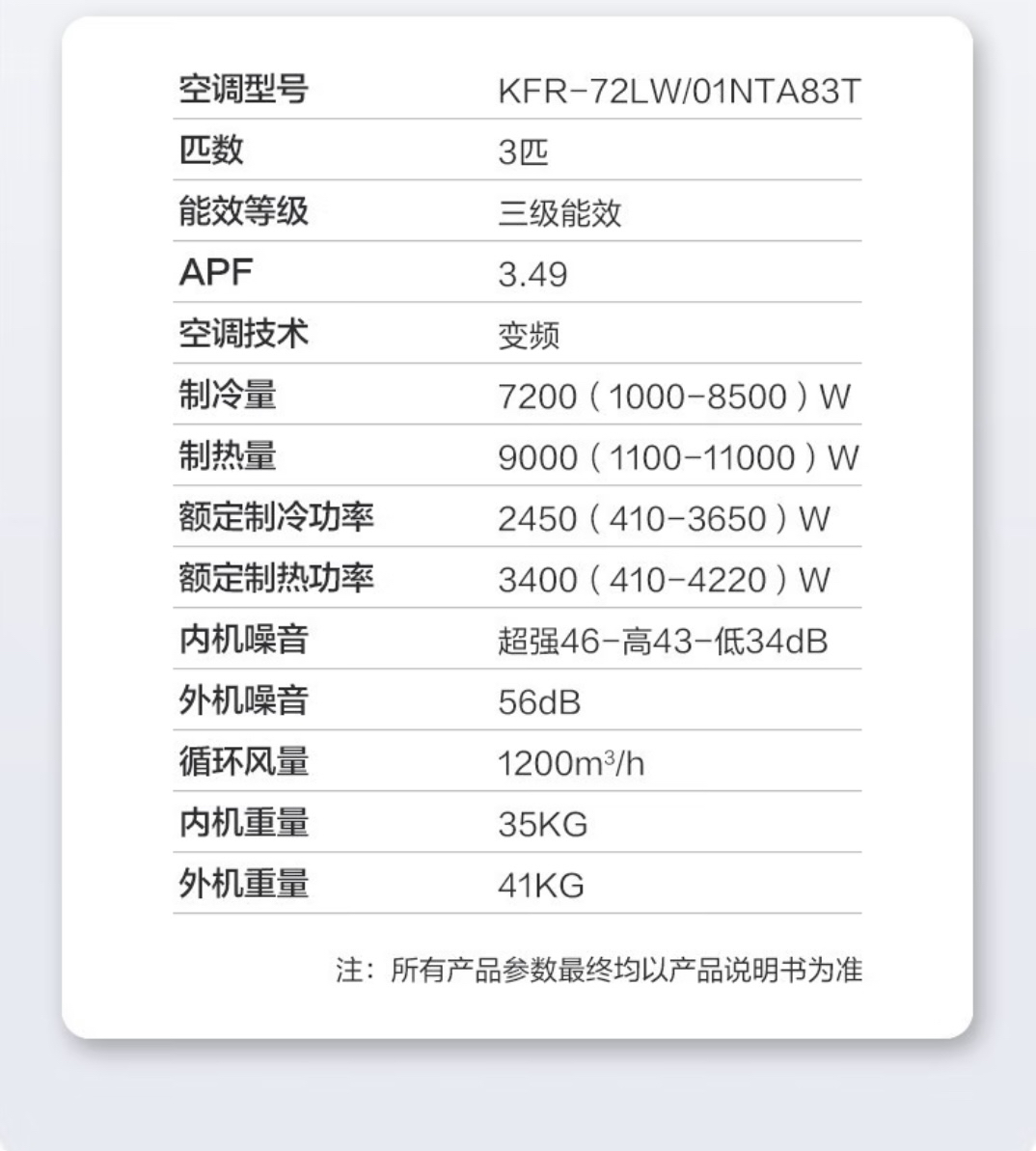 统帅(Leader)空调KFR-72LW/01NTA83T(海尔出品)