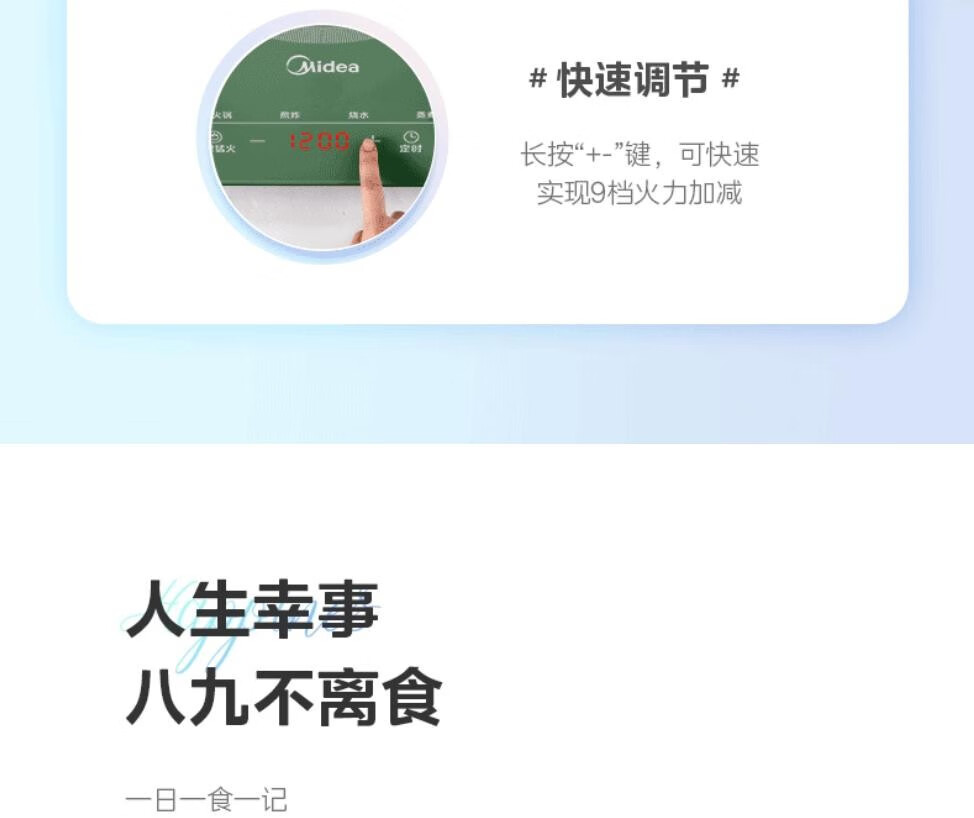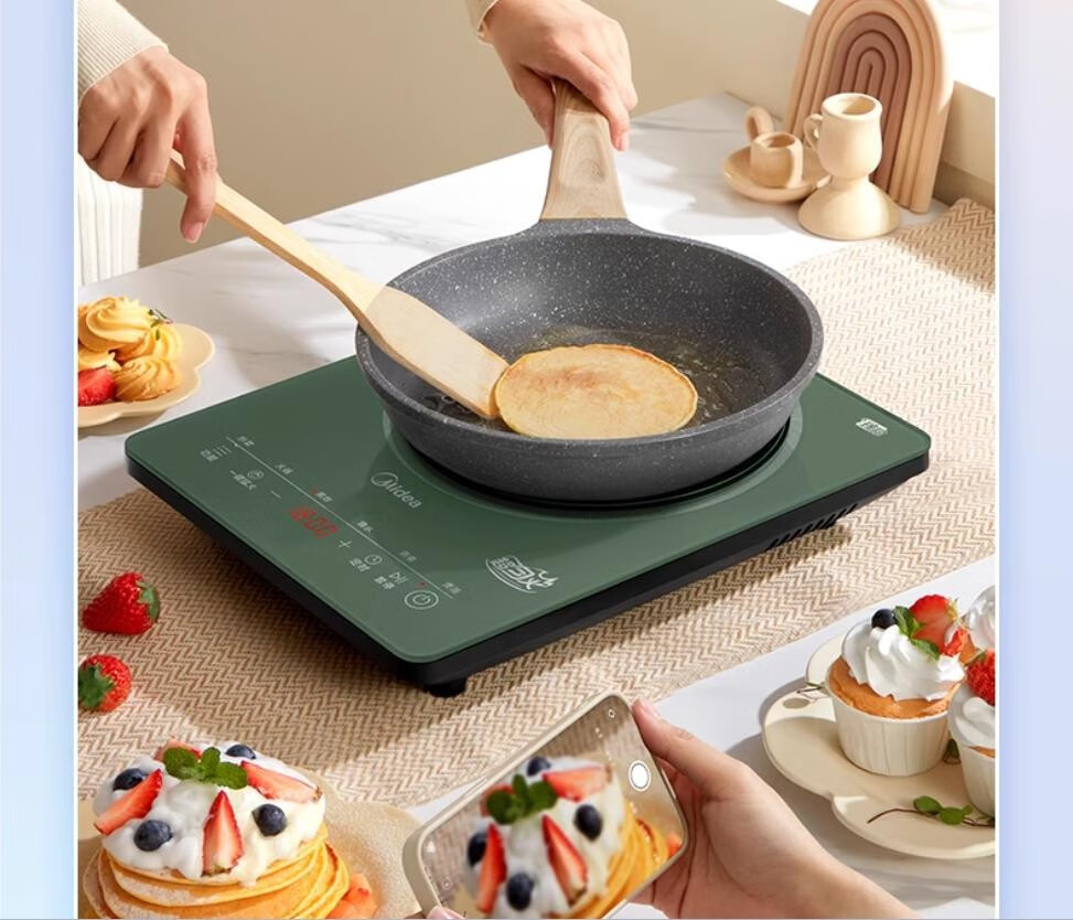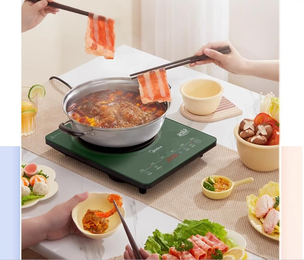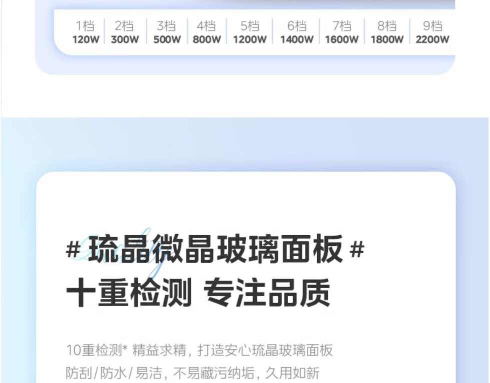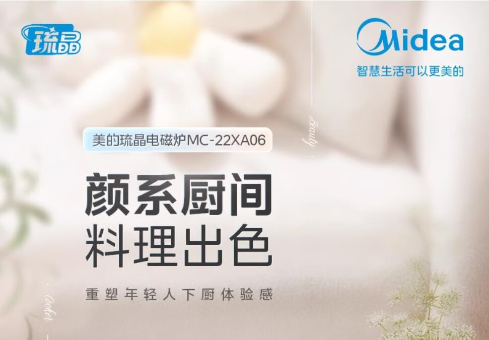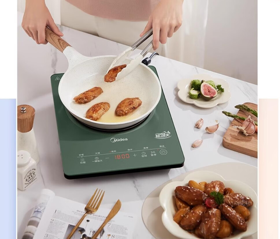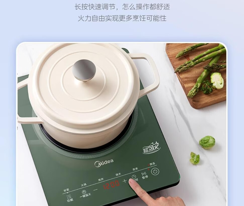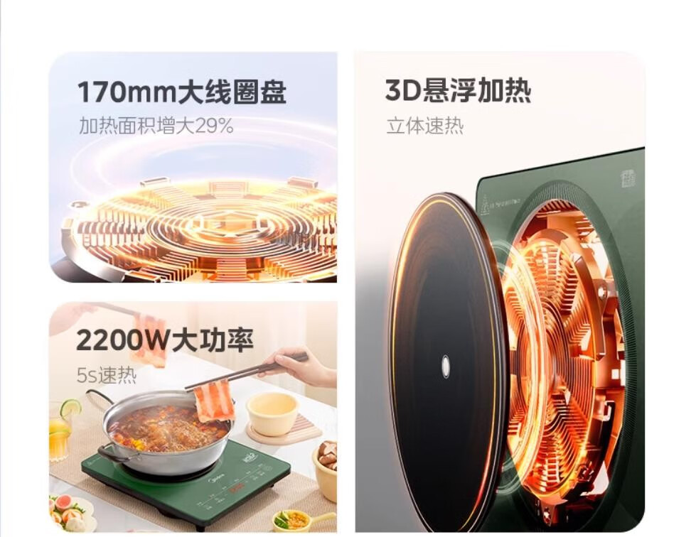 美的 家电磁炉 家用多功能炒菜 2200w大功率 5秒速热 6大功能 九档火力 3D悬浮加热 微晶玻璃面板 MC-22XA06