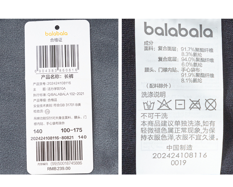 巴拉巴拉童装男童长裤加绒中大童裤子秋冬款束口裤时尚保暖舒适潮
