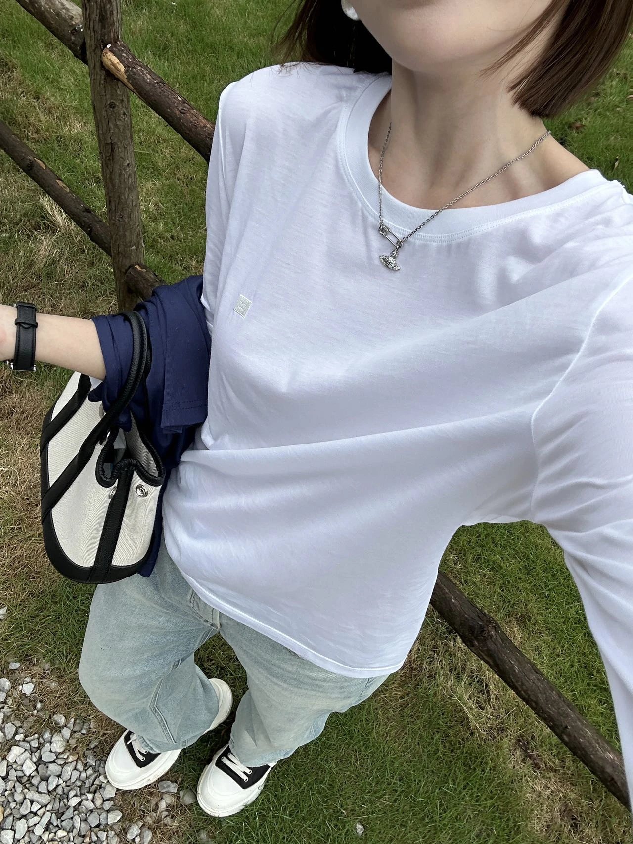 重磅渠道 miu奶油t 短款合身版型 100支长绒棉短袖T恤