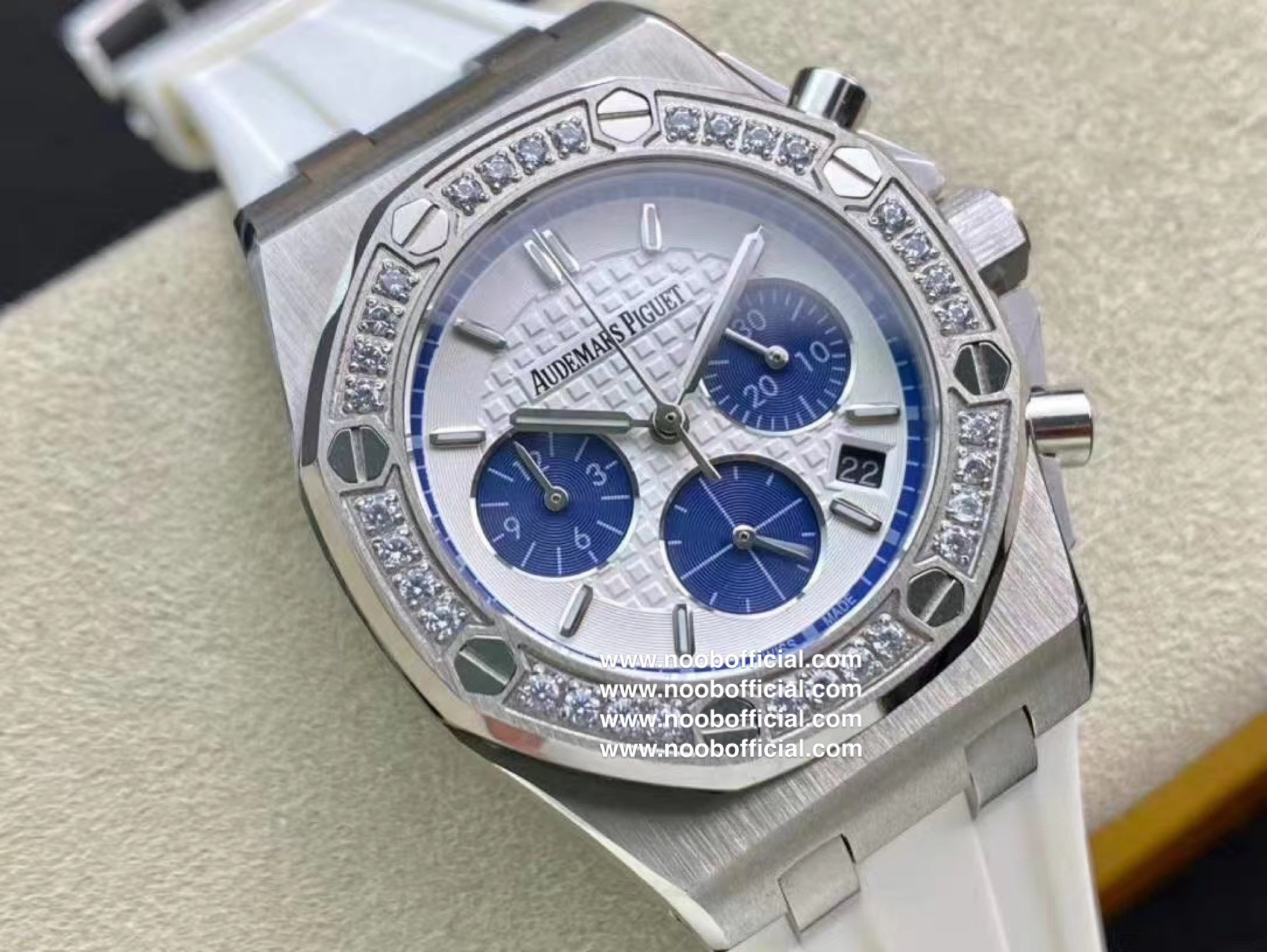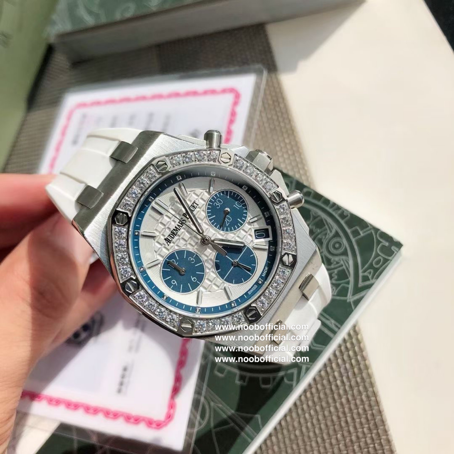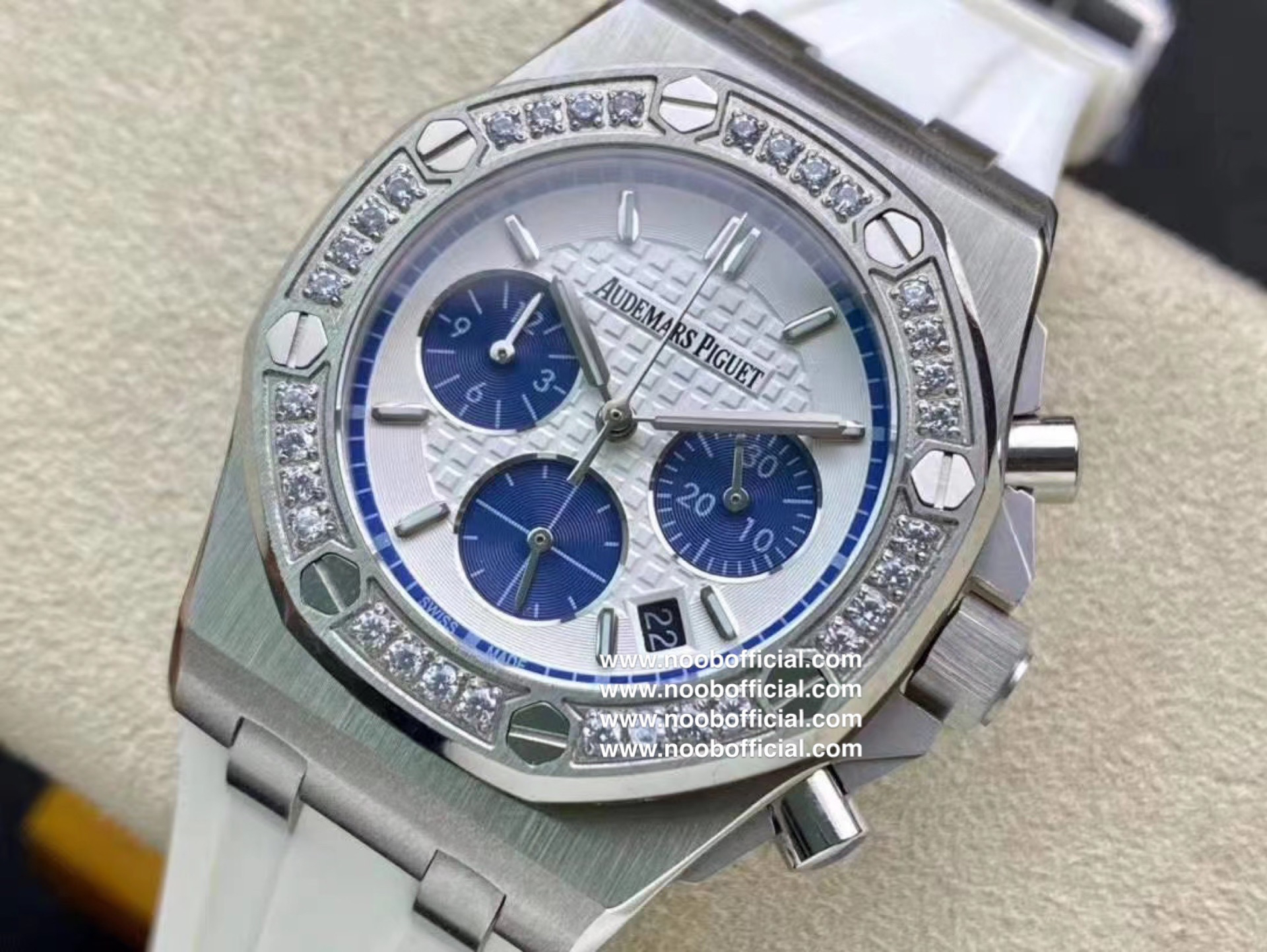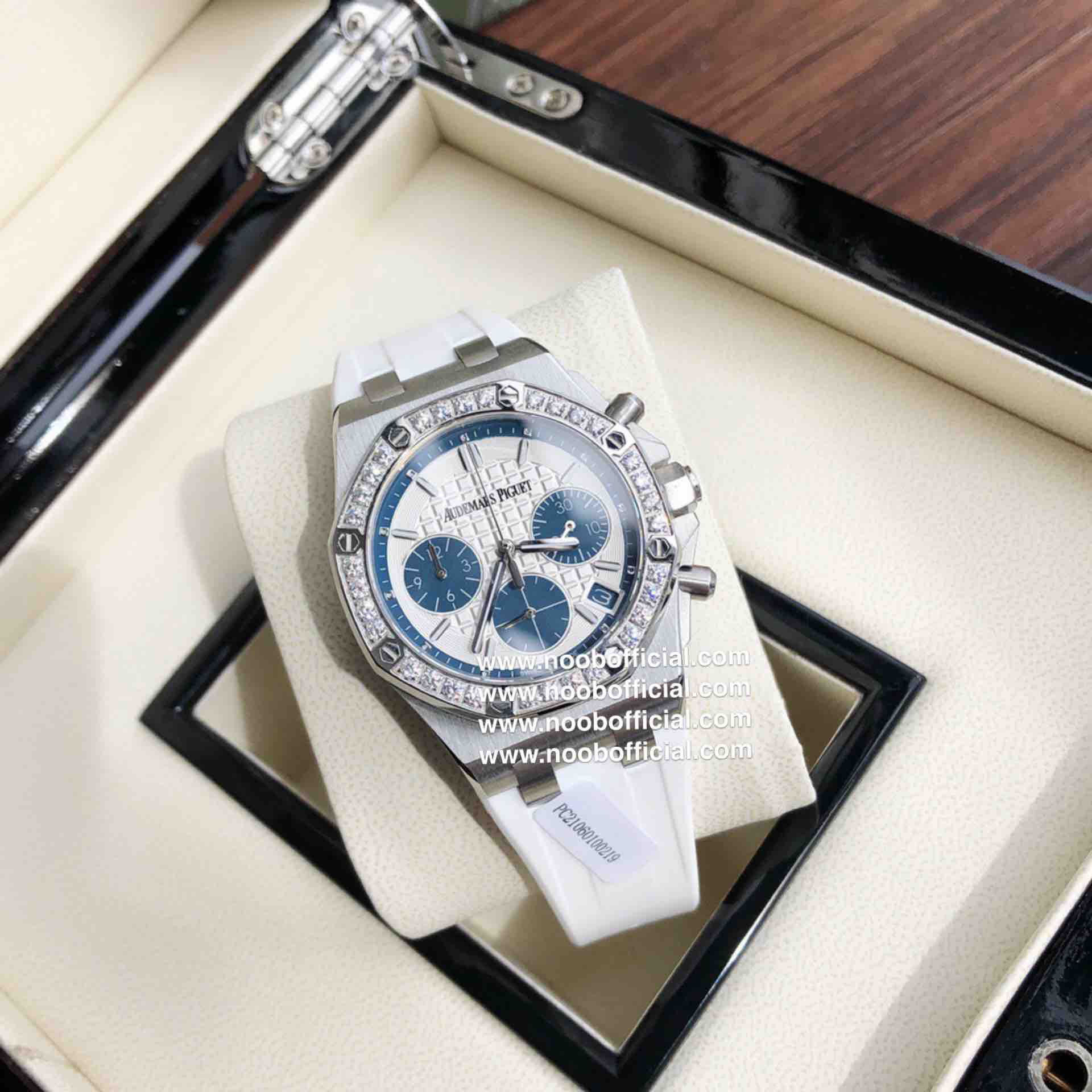 新皇家橡树离岸系列计时石英腕表,当下热门的爱彼女式腕表之一!A.P-爱彼皇家橡树离岸型系列,表盘饰以Lady Tapisserie格纹装饰,呈现出更强的视觉冲击效果新皇家橡树离岸系列计时石英腕表,当下最热门的爱彼女式腕表之一!A.P-爱彼皇家橡树离岸型系列,表盘饰以Lady Tapisserie格纹装饰,呈现出更强的视觉冲击效果。表壳904精钢镶钻32颗2.0明亮式vvs级别切割美钻(约1.02克拉)带来非凡触感与视觉享受,据爱彼柜台sale介绍他们的钻石只用D色镶嵌,呈现璀璨光泽,这才是珠宝手表才有的态度 。腕表尺寸37毫米,迎合了现代对于大表径女表潮流的追求,打造出女性更为英气的一面,熠熠生辉 质感十足,表带采用白色液态硅胶经欧盟认证环保材质制成脏了可用清水冲洗干净或湿纸巾擦净即可。六针计时进口石英机芯 走时精准零误差。蓝宝石防刮玻璃读时更加清晰明了。八角形表壳设计风格彰显独特,活力十足。女款中的最佳经典!