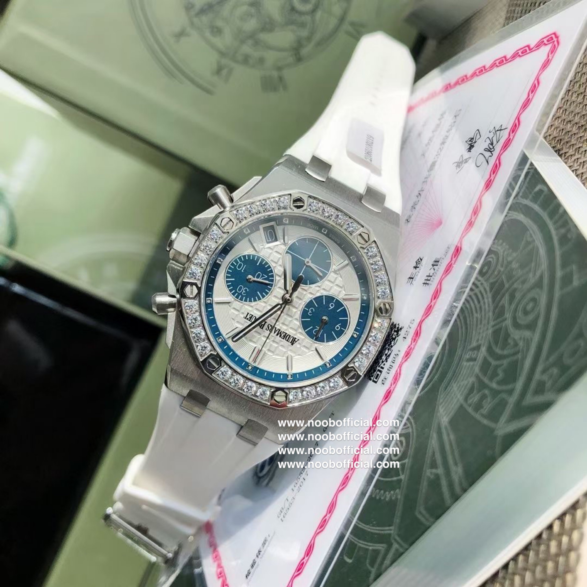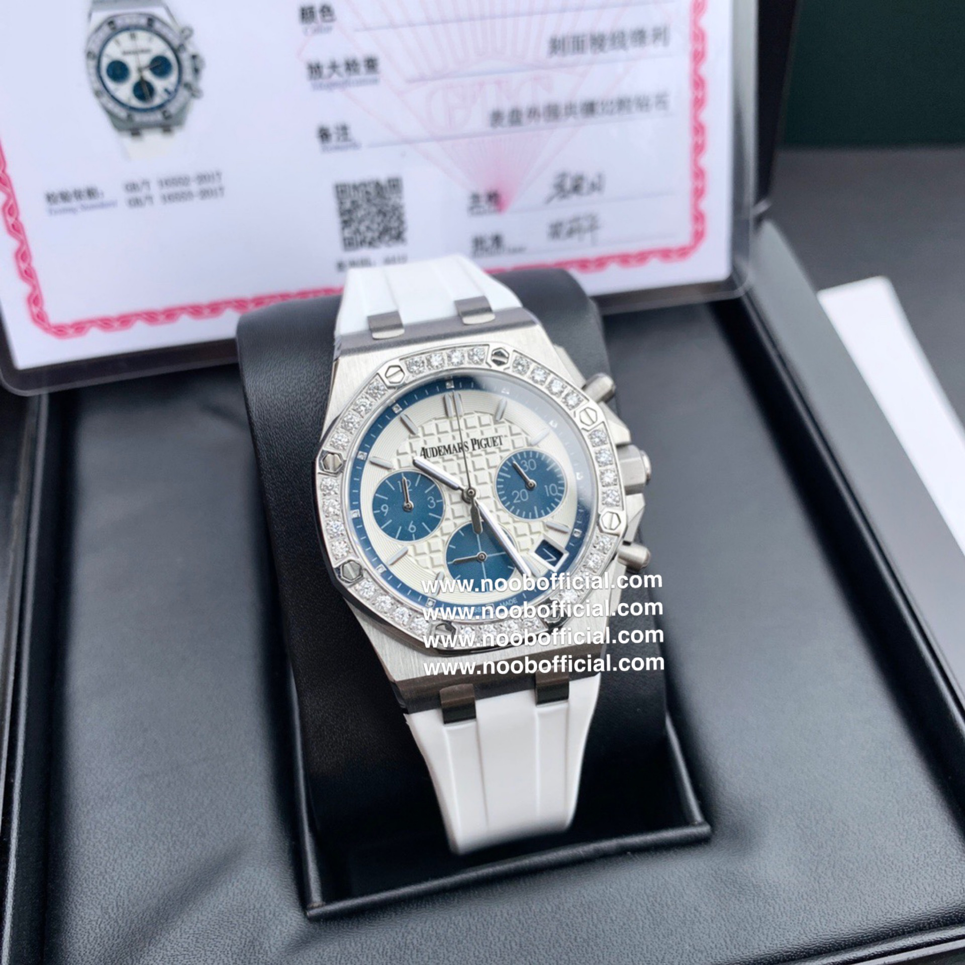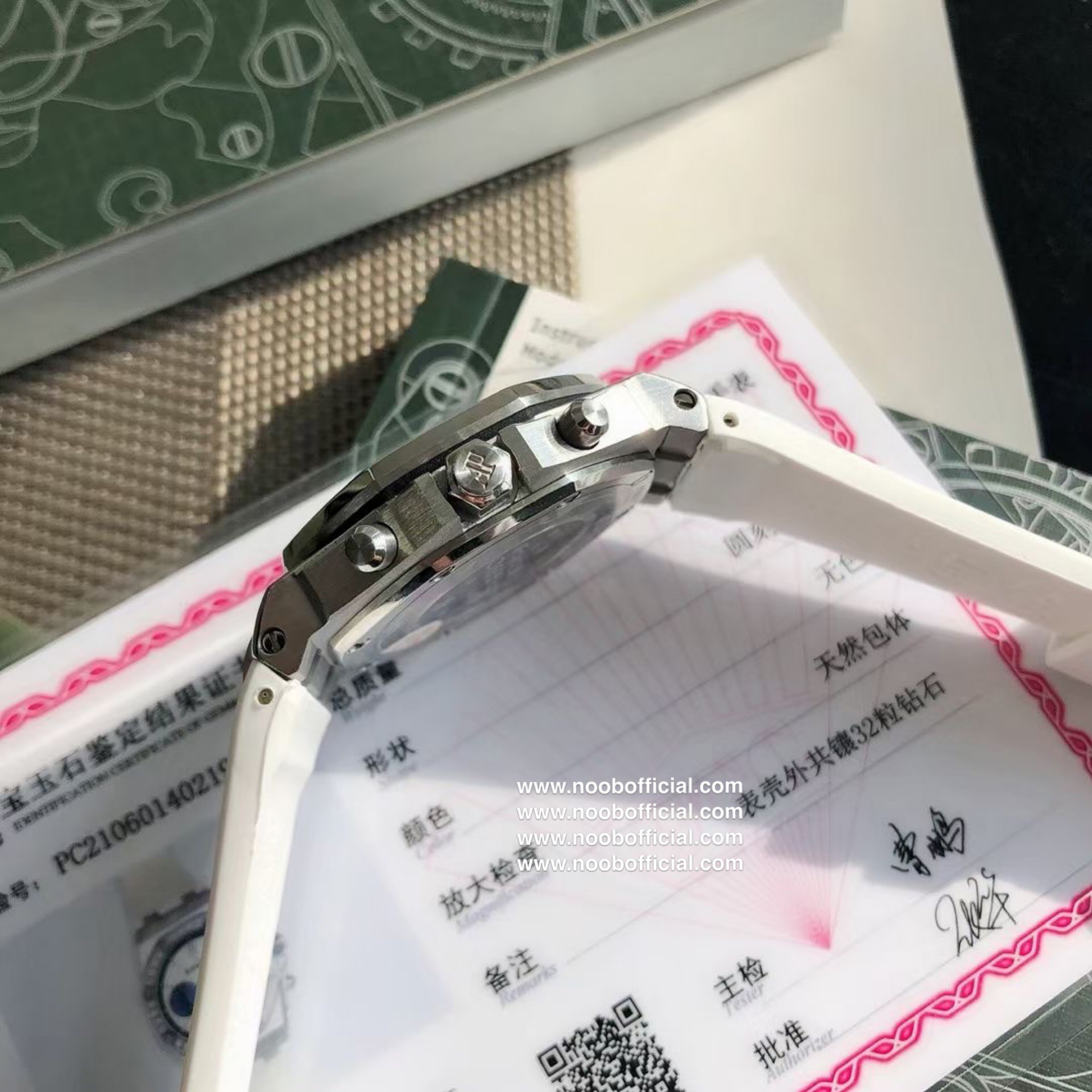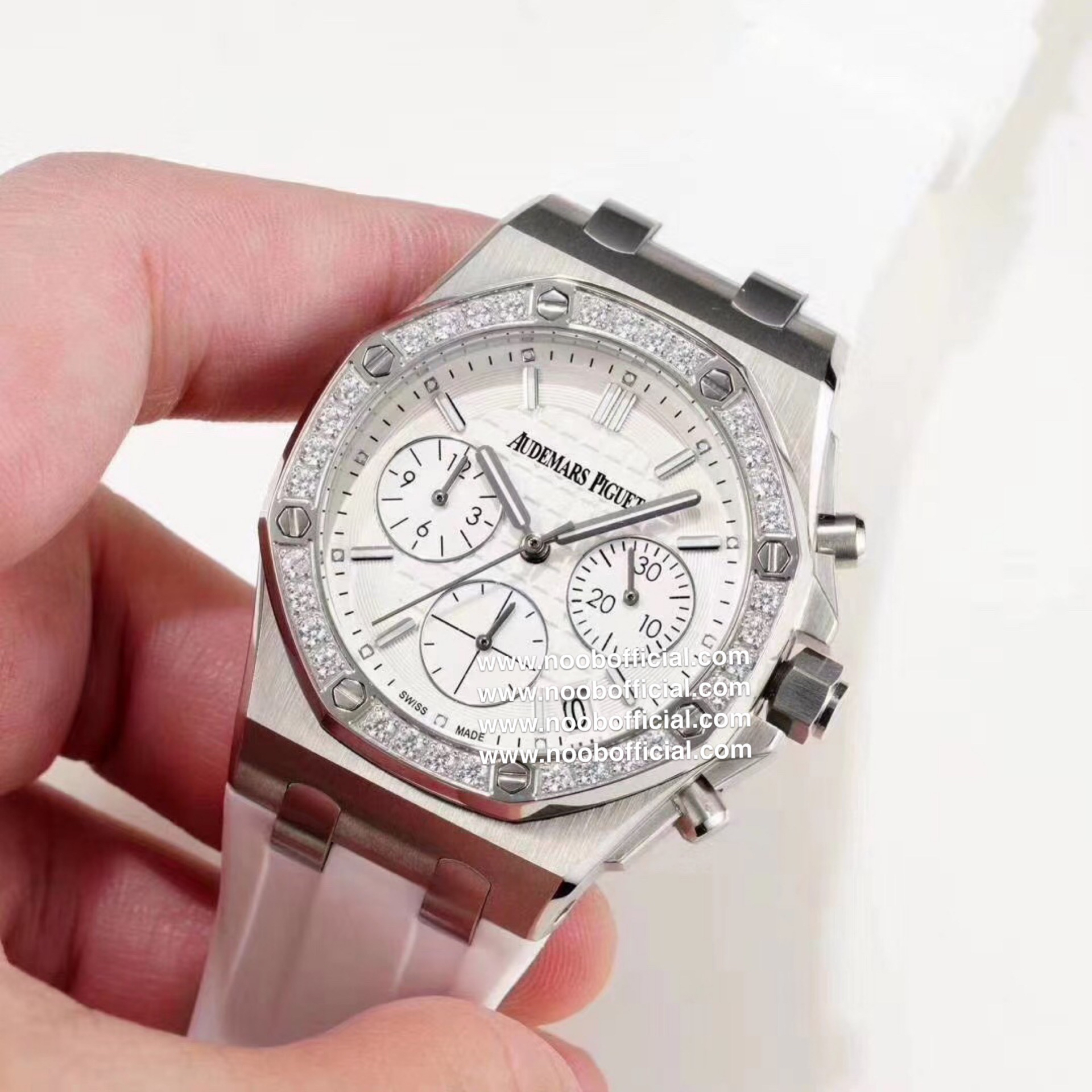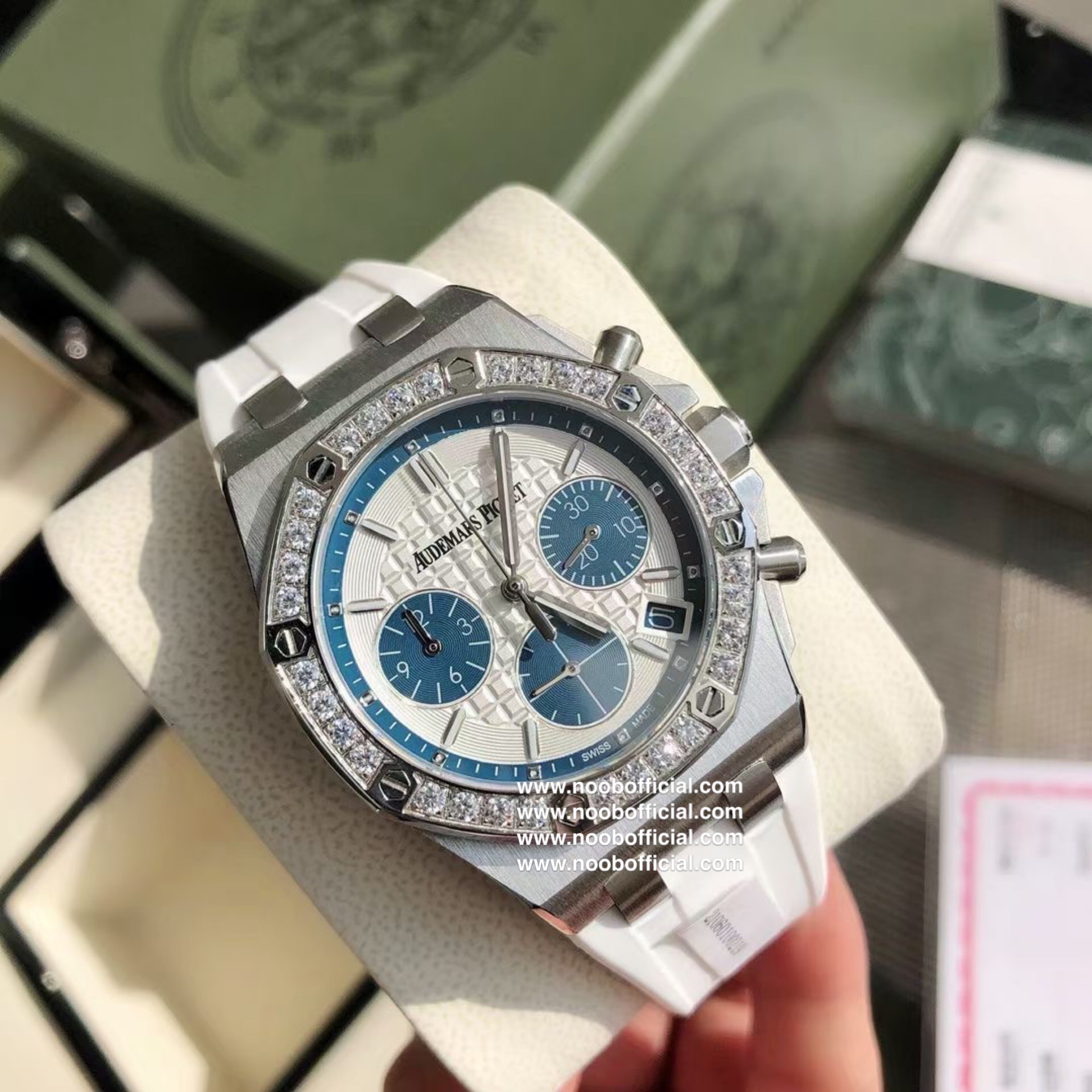 新皇家橡树离岸系列计时石英腕表,当下热门的爱彼女式腕表之一!A.P-爱彼皇家橡树离岸型系列,表盘饰以Lady Tapisserie格纹装饰,呈现出更强的视觉冲击效果新皇家橡树离岸系列计时石英腕表,当下最热门的爱彼女式腕表之一!A.P-爱彼皇家橡树离岸型系列,表盘饰以Lady Tapisserie格纹装饰,呈现出更强的视觉冲击效果。表壳904精钢镶钻32颗2.0明亮式vvs级别切割美钻(约1.02克拉)带来非凡触感与视觉享受,据爱彼柜台sale介绍他们的钻石只用D色镶嵌,呈现璀璨光泽,这才是珠宝手表才有的态度 。腕表尺寸37毫米,迎合了现代对于大表径女表潮流的追求,打造出女性更为英气的一面,熠熠生辉 质感十足,表带采用白色液态硅胶经欧盟认证环保材质制成脏了可用清水冲洗干净或湿纸巾擦净即可。六针计时进口石英机芯 走时精准零误差。蓝宝石防刮玻璃读时更加清晰明了。八角形表壳设计风格彰显独特,活力十足。女款中的最佳经典!